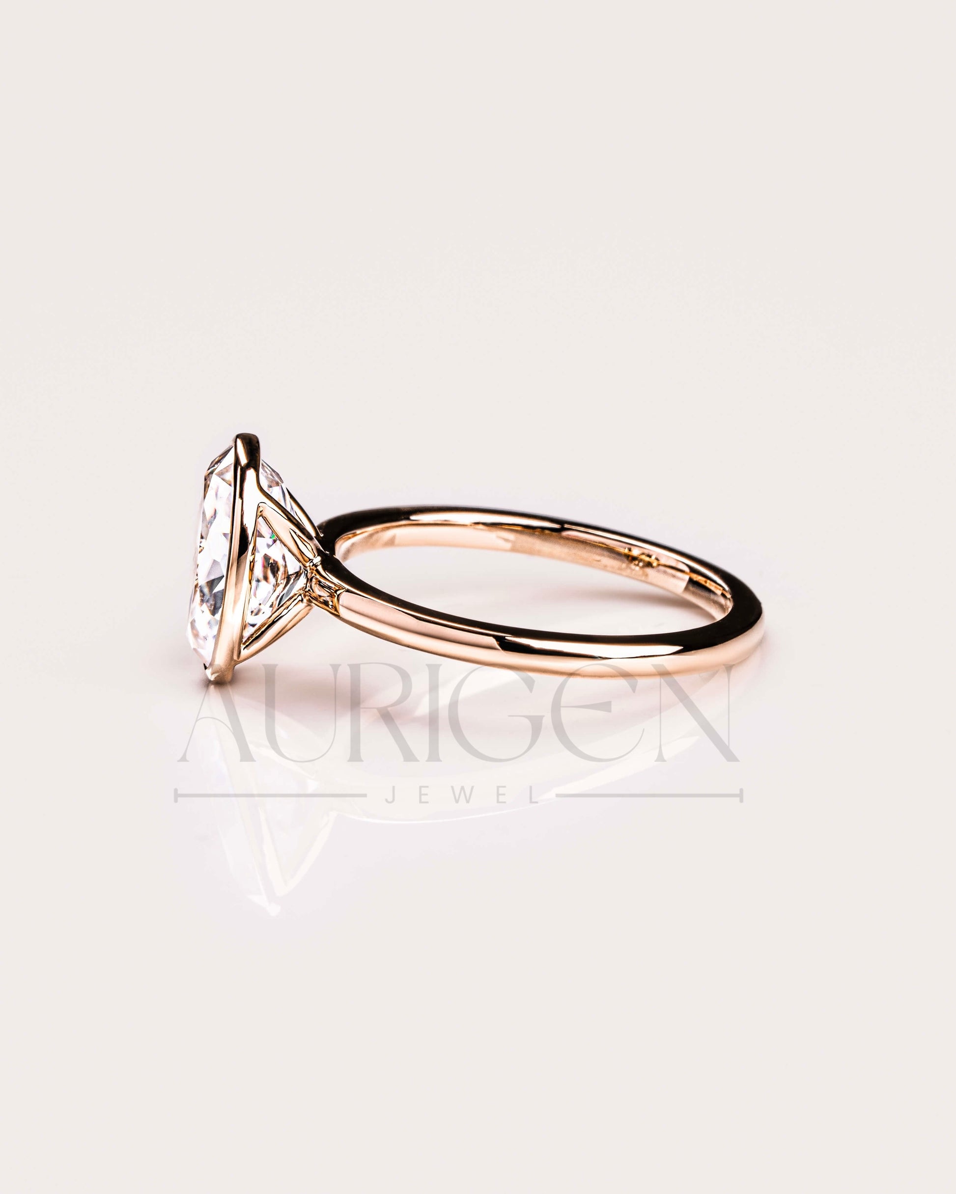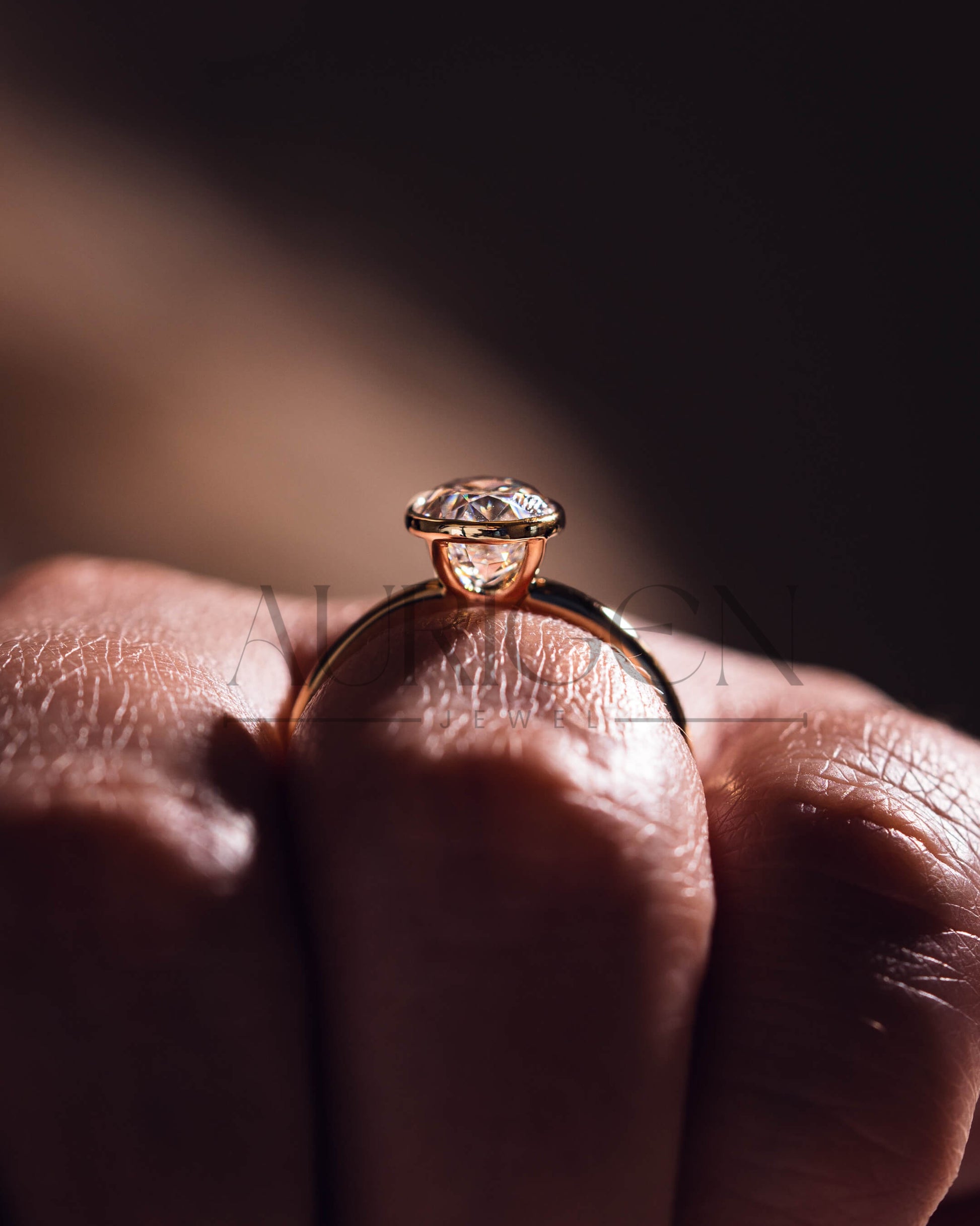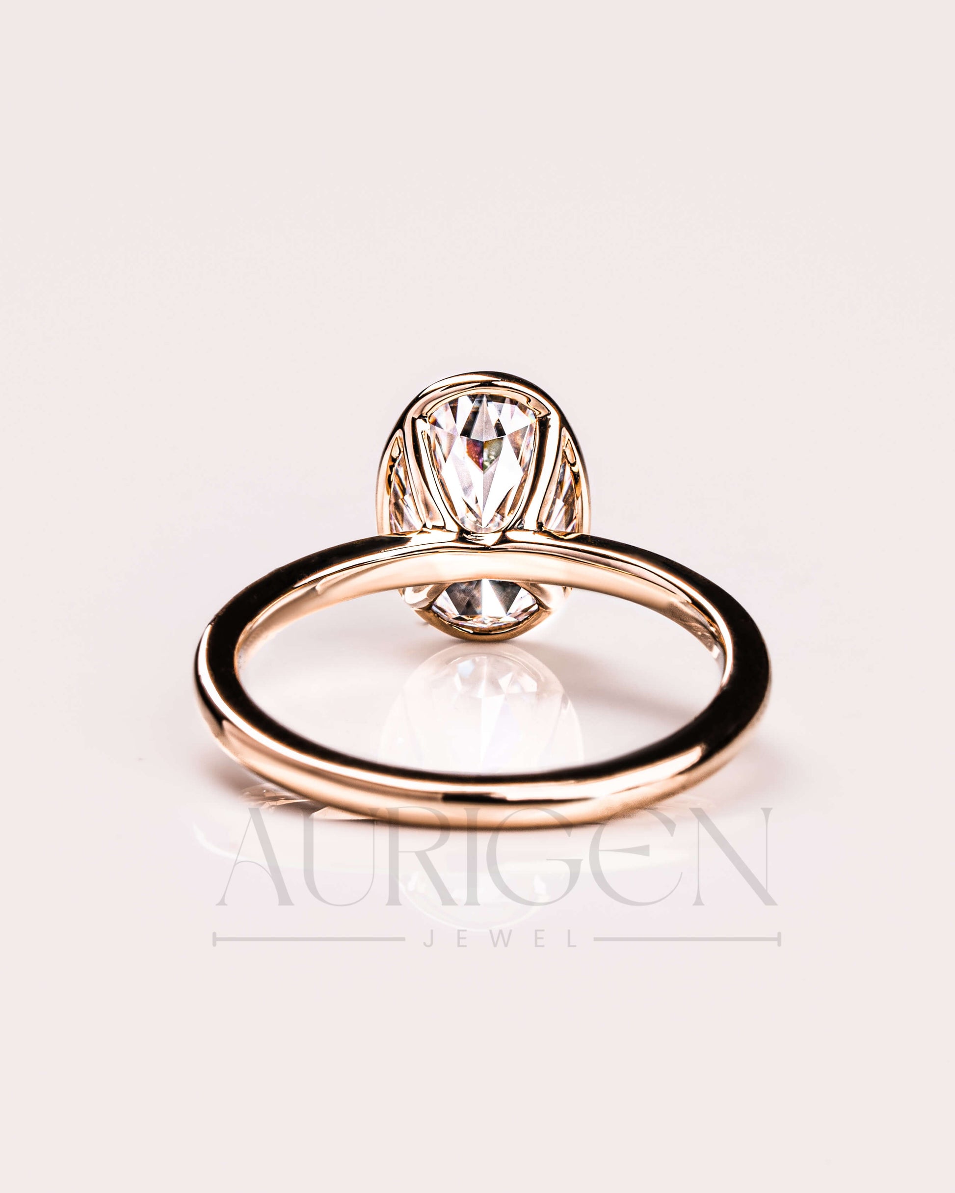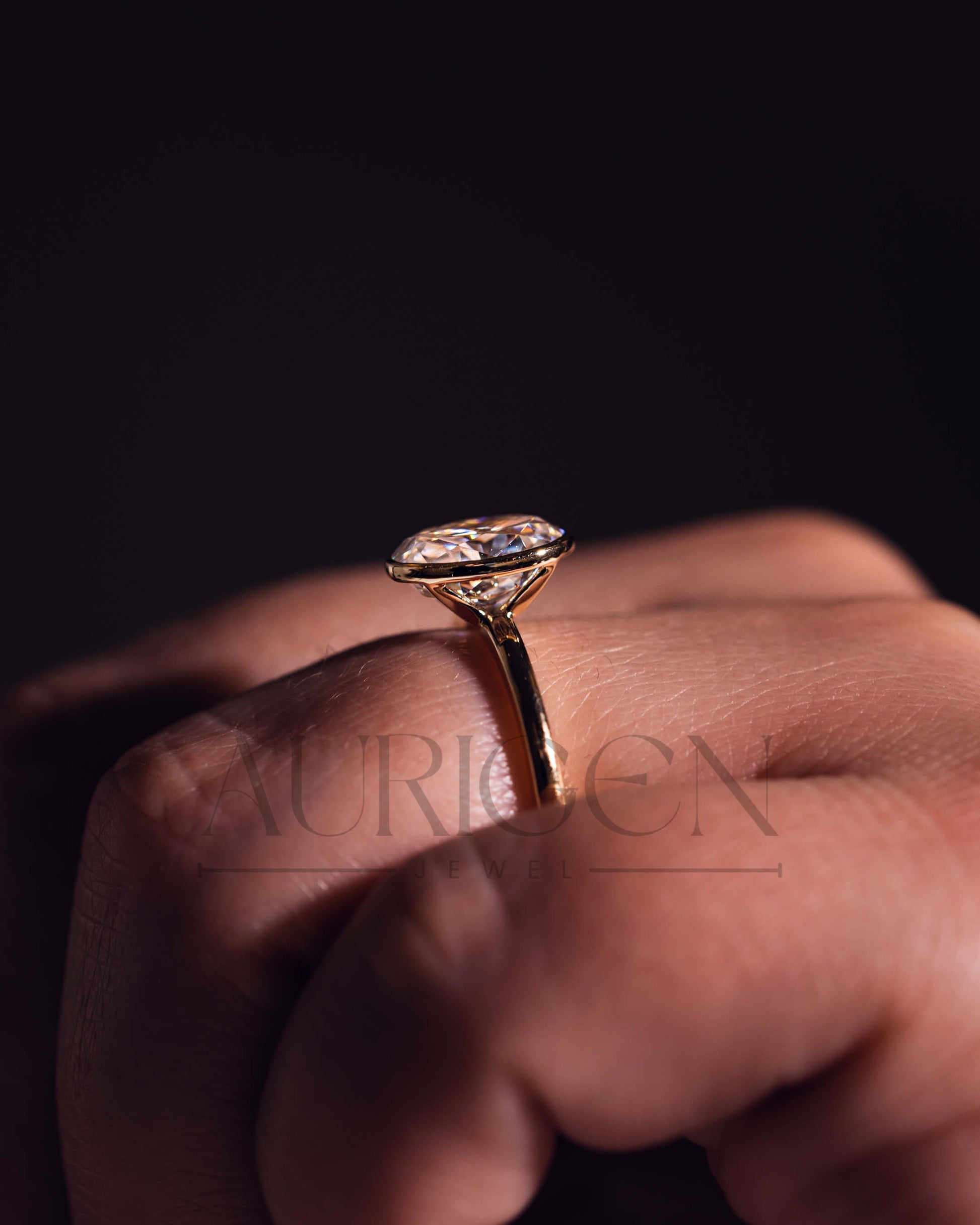 14k Solid Gold Oval Moissanite and Leb Grown Bezel Set Engagement Ring