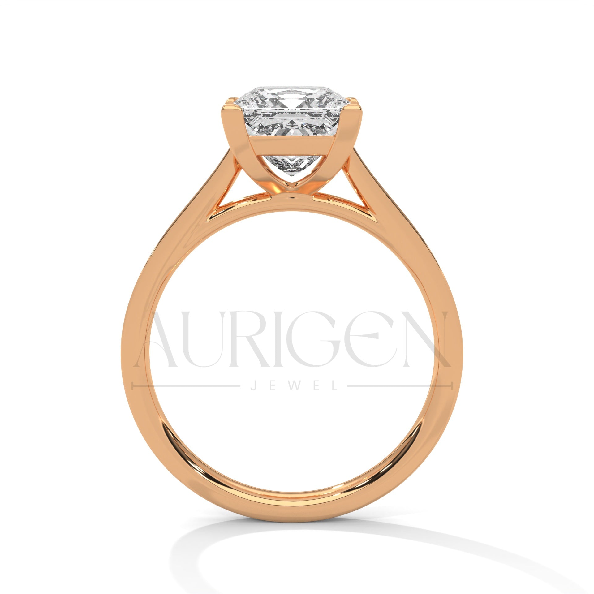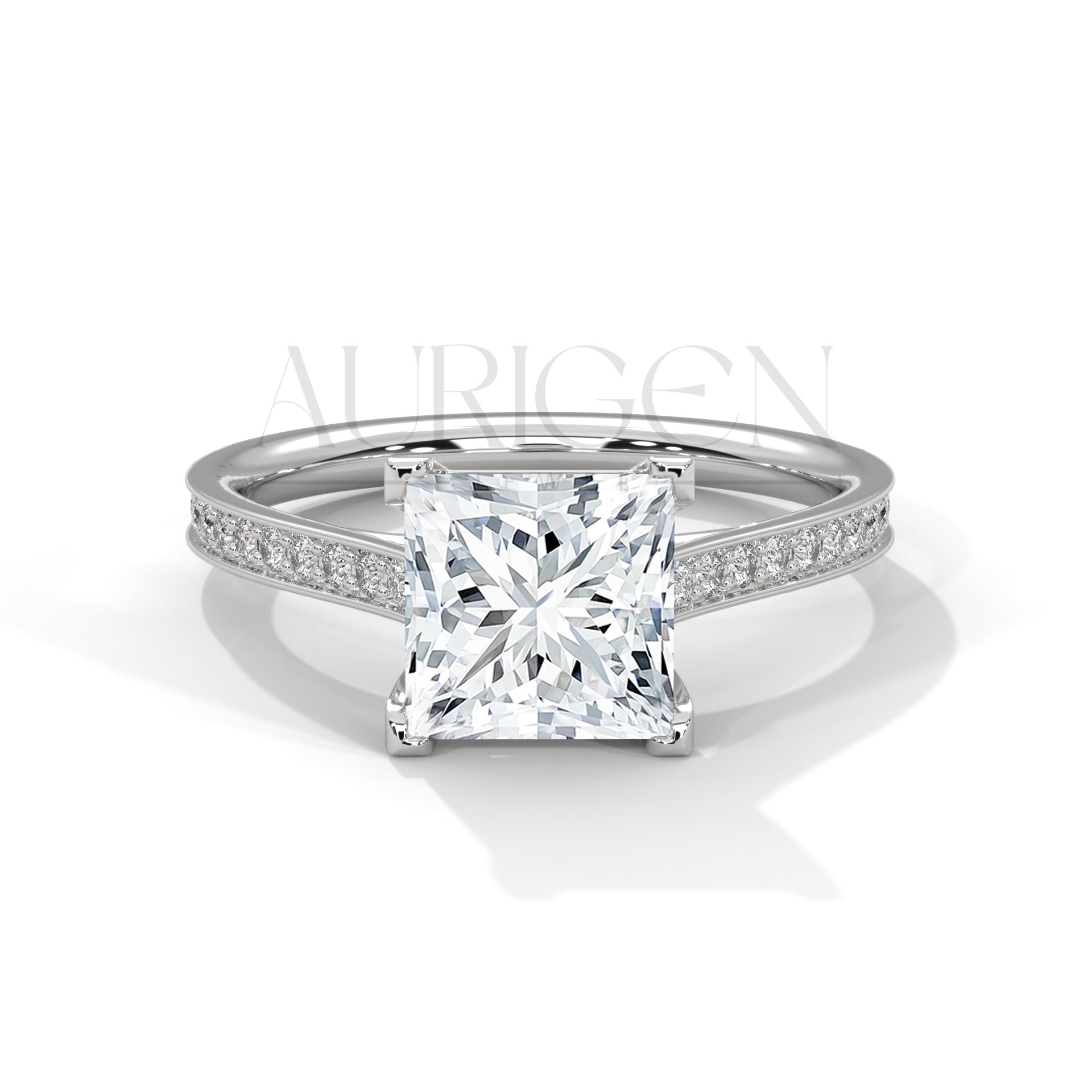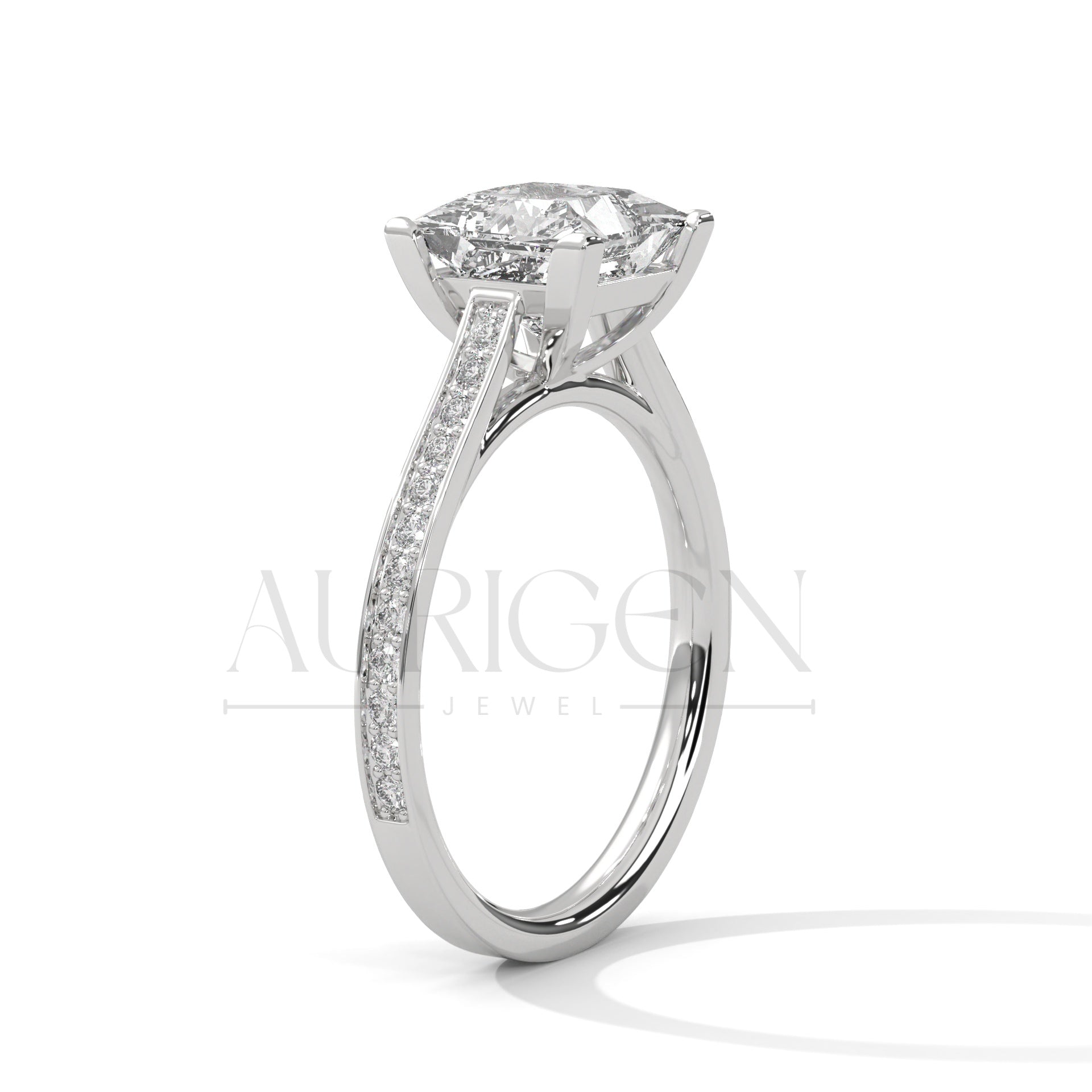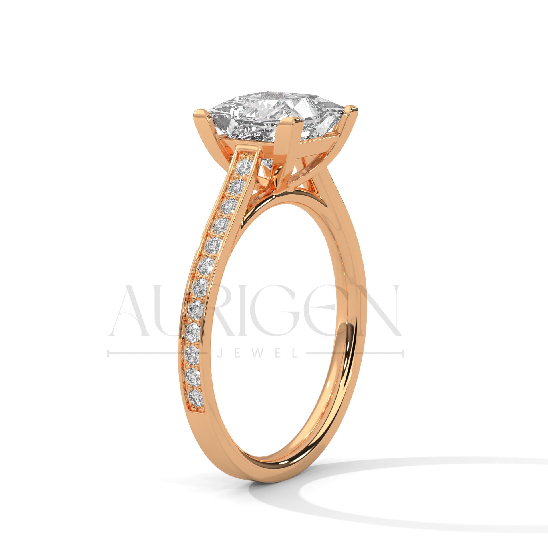 14K Solid Gold Princess Cut Diamond Engagement Ring with Pave Band