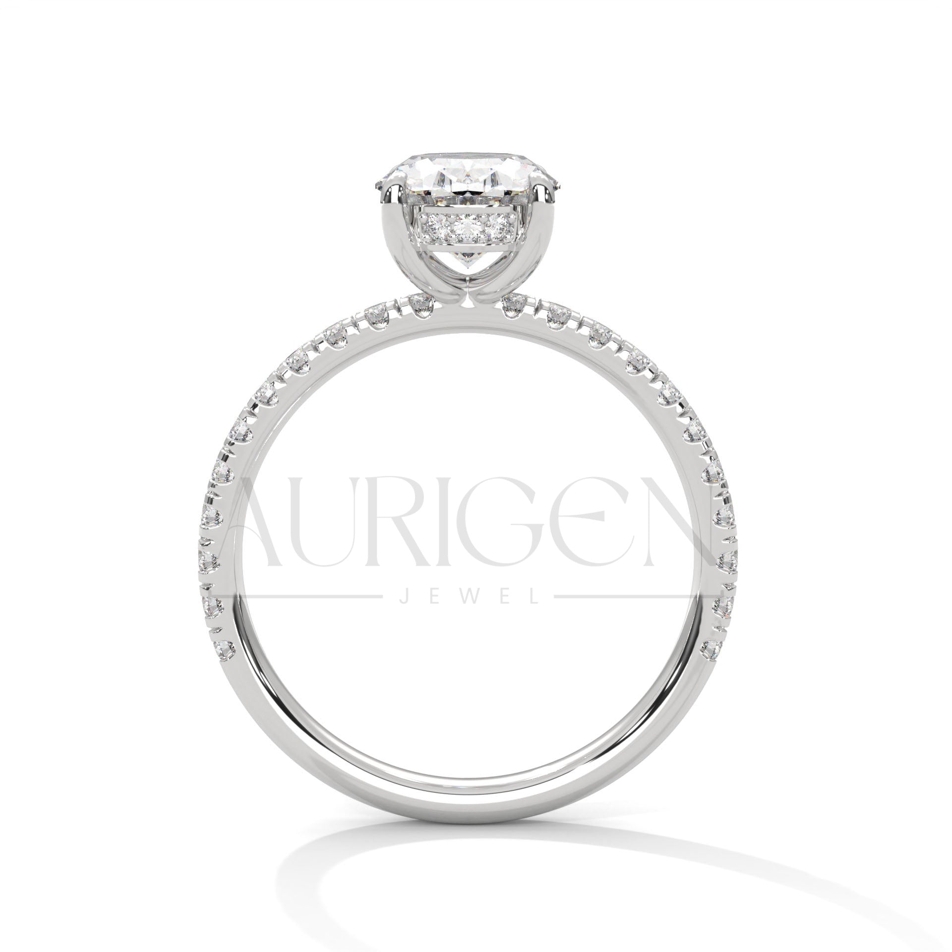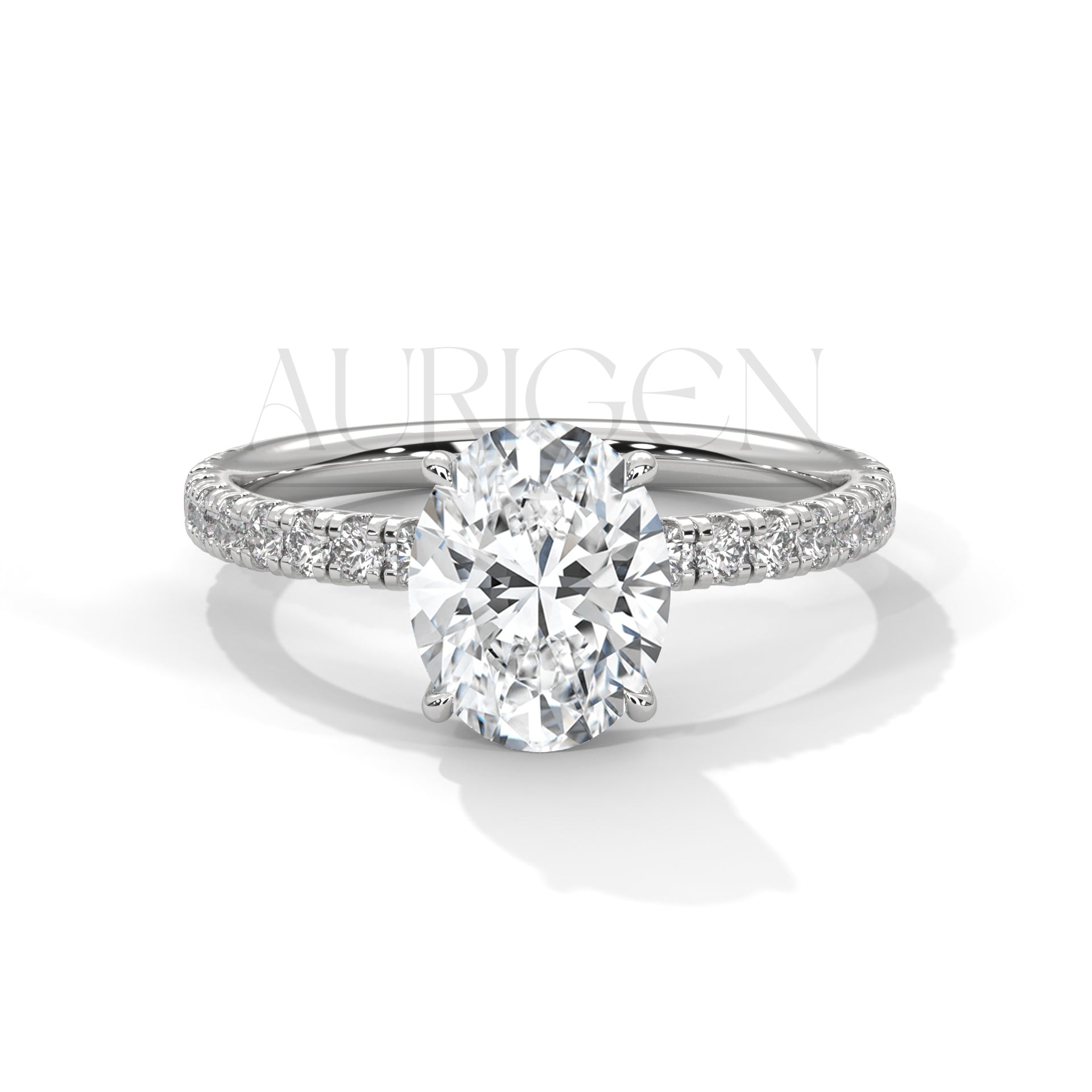 2.0 CT Oval Cut Diamond Pave Set Engagement Ring in 14K Solid Gold