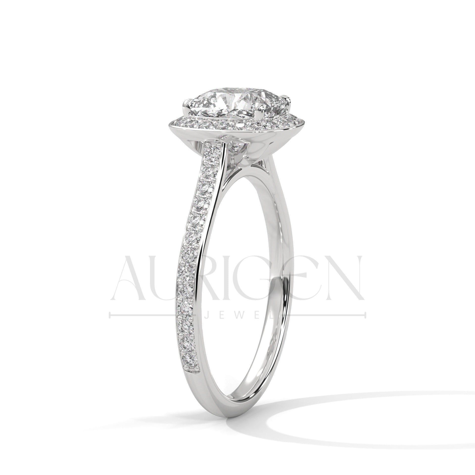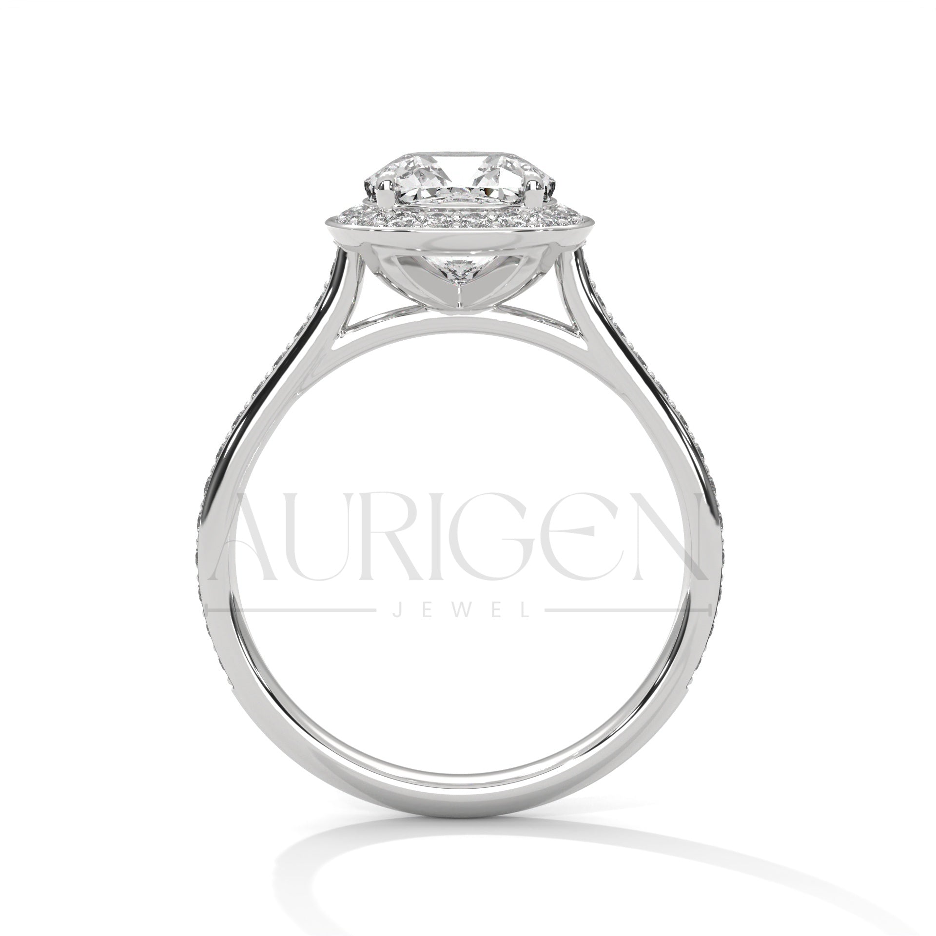 2 Ct Cushion Halo Diamond Engagement Ring with Pave Band in White Gold