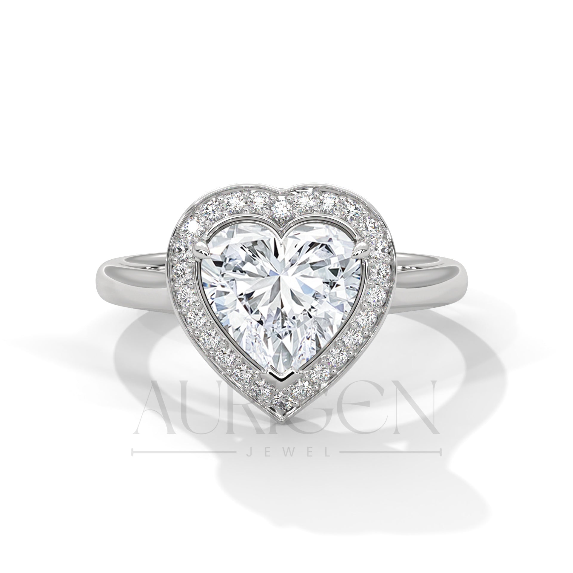 2 Ct Heart Shaped Diamond Halo Engagement Ring in 14K Solid Gold