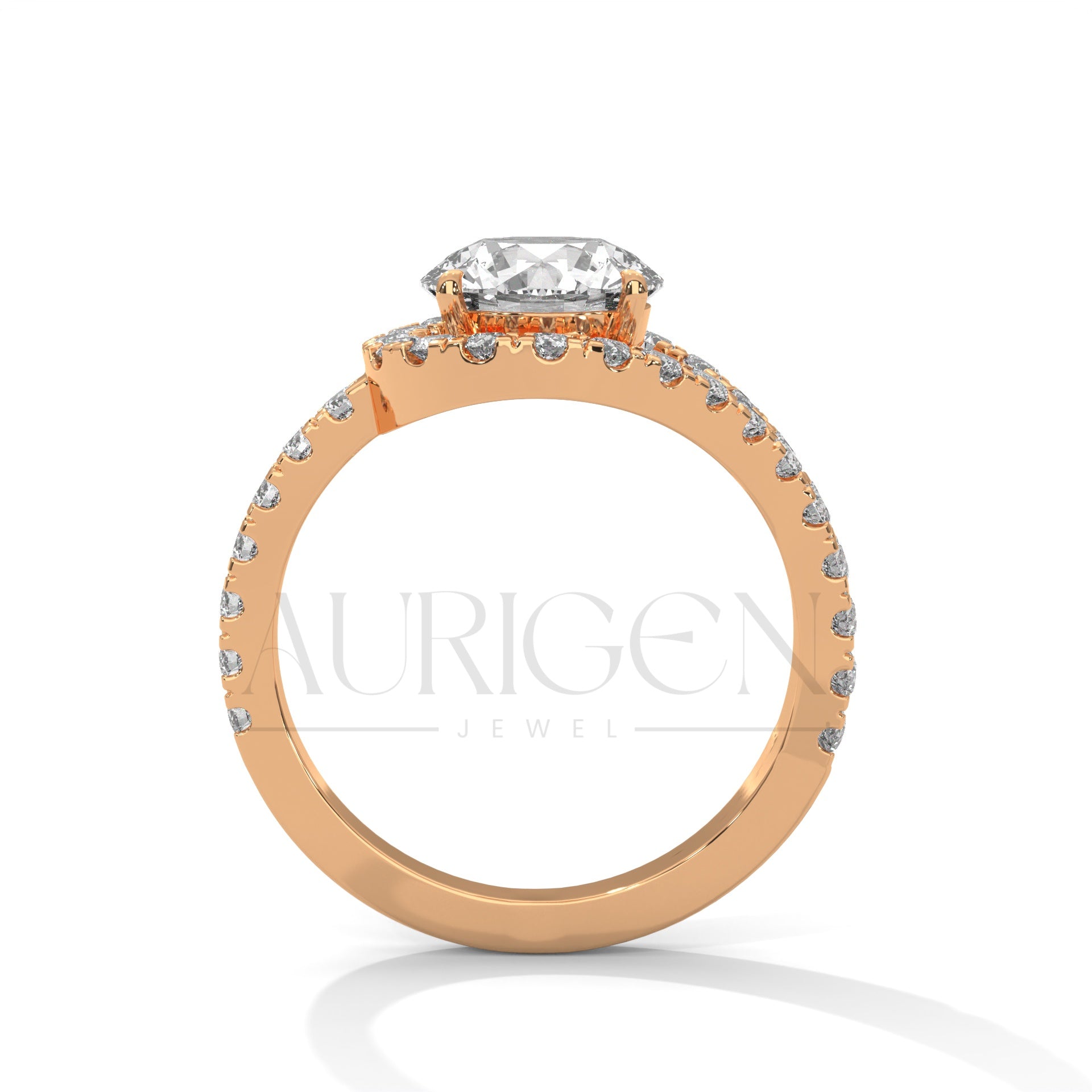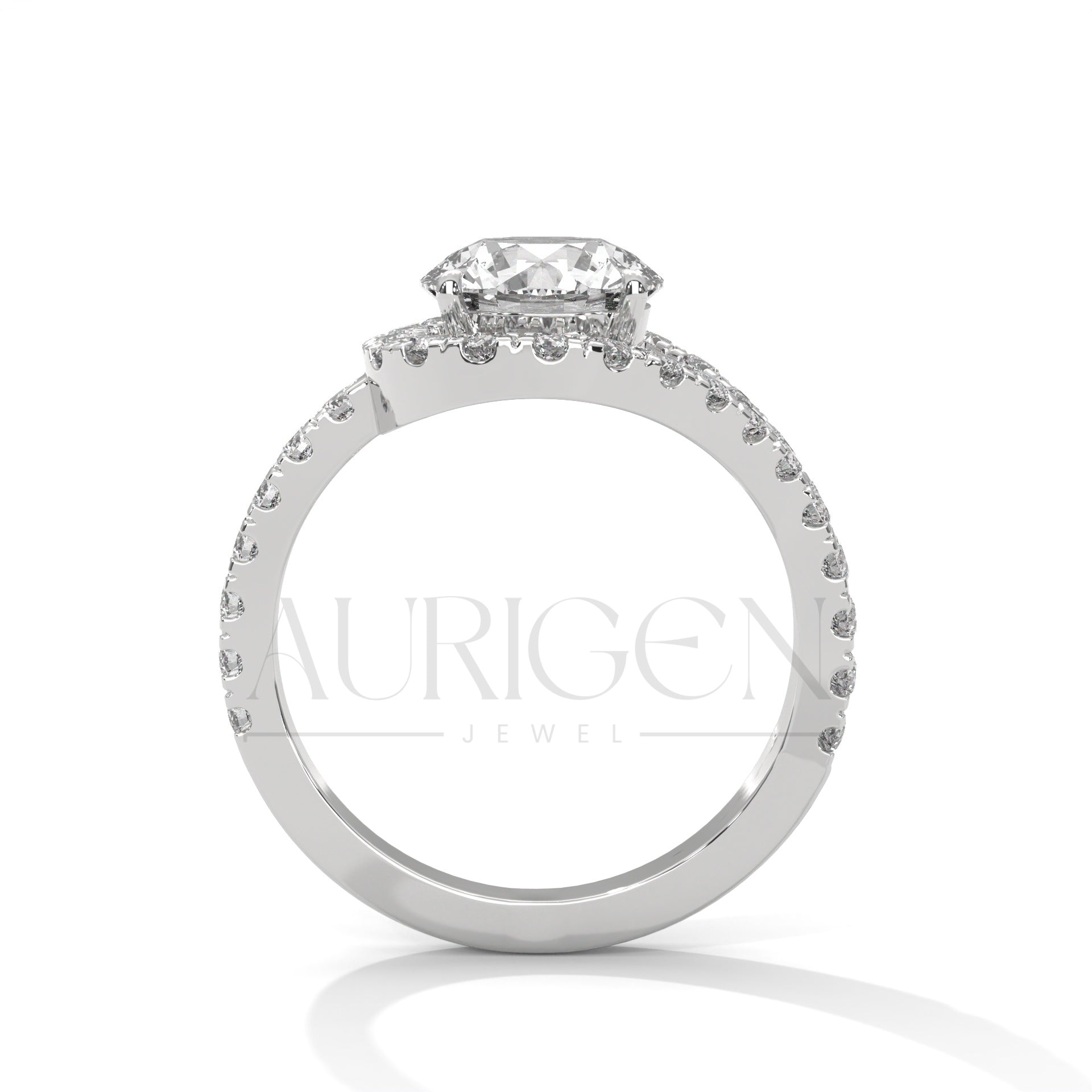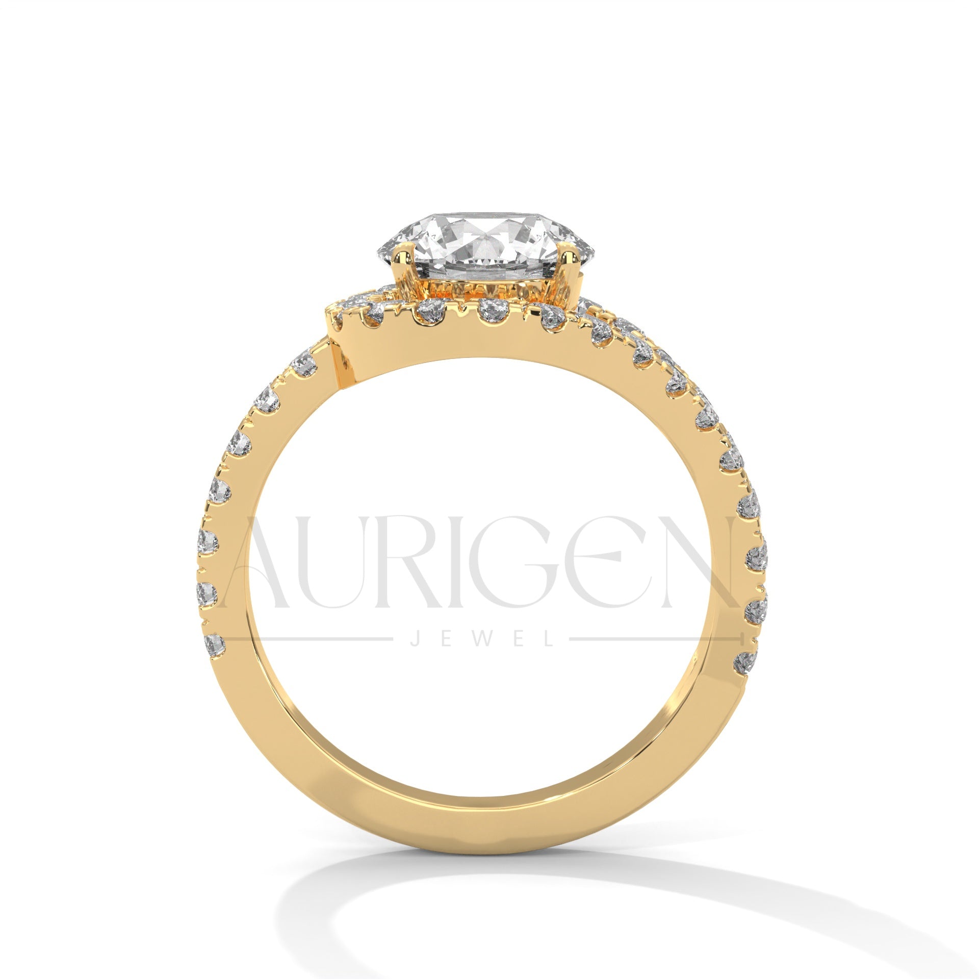 2 Ct Round Diamond Halo Ring with Split Shank in 14K Solid Gold
