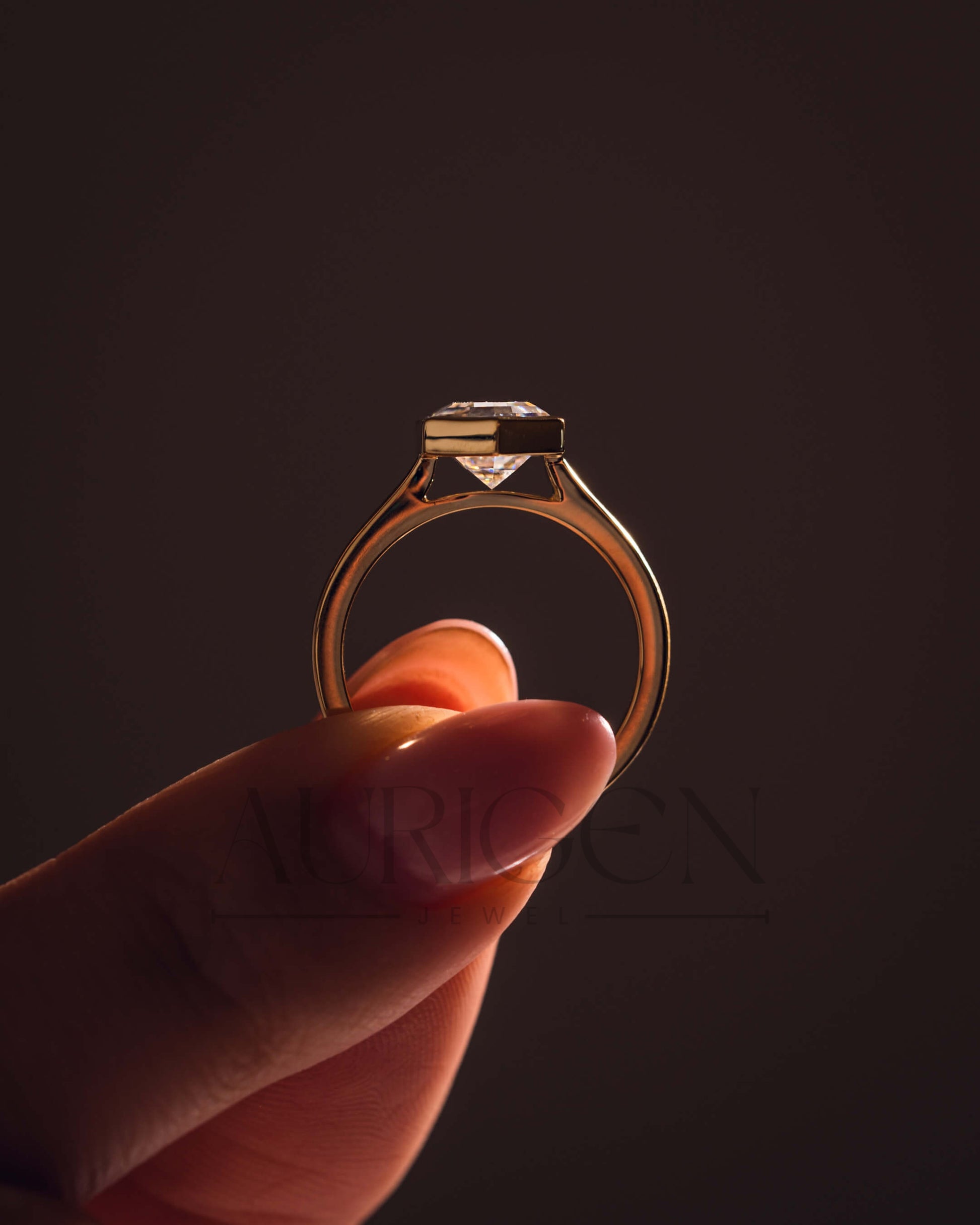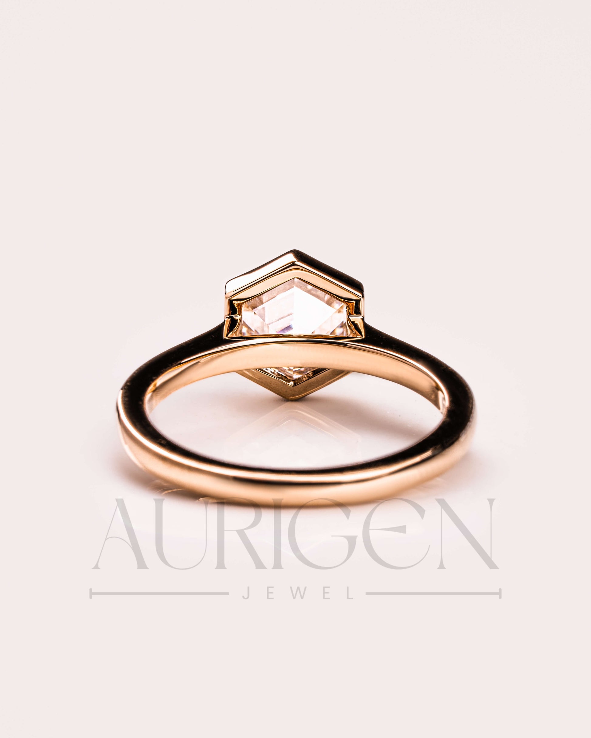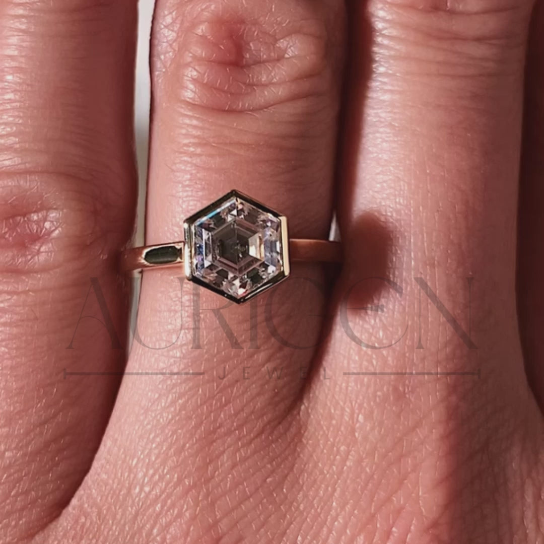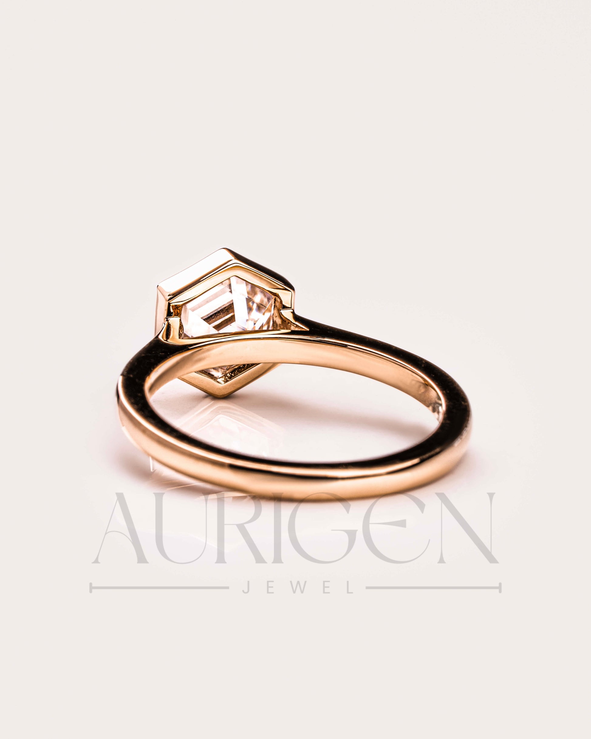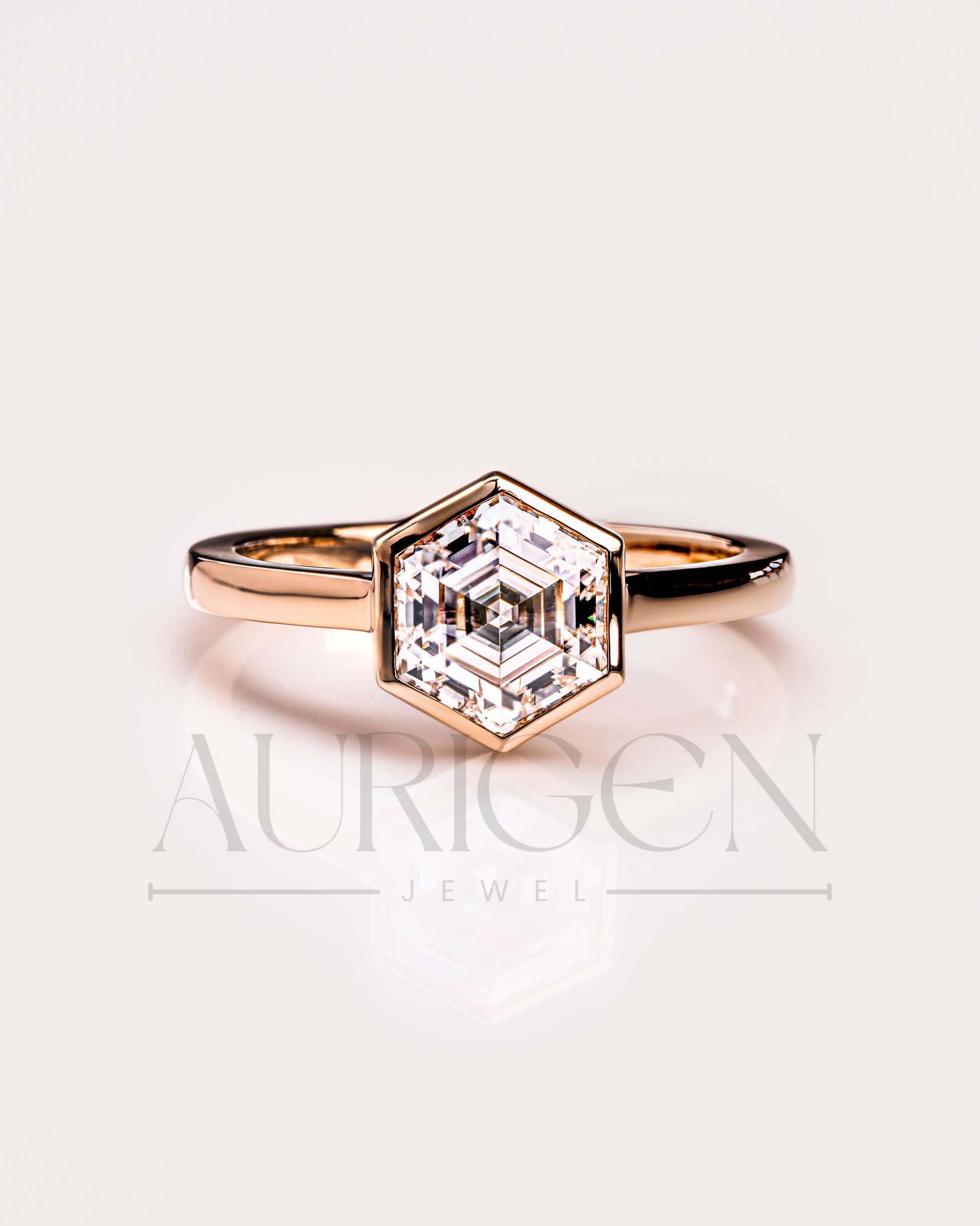 Bezel Setting Hexagon Cut Lab Grown and Moissanite Diamond Ring