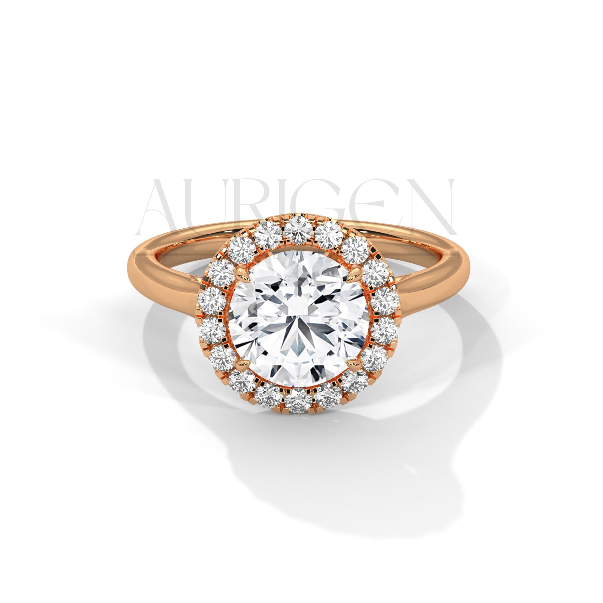 Brilliant Round Cut Solitaire Halo Diamond Engagement Ring 14K Solid Gold Ring
