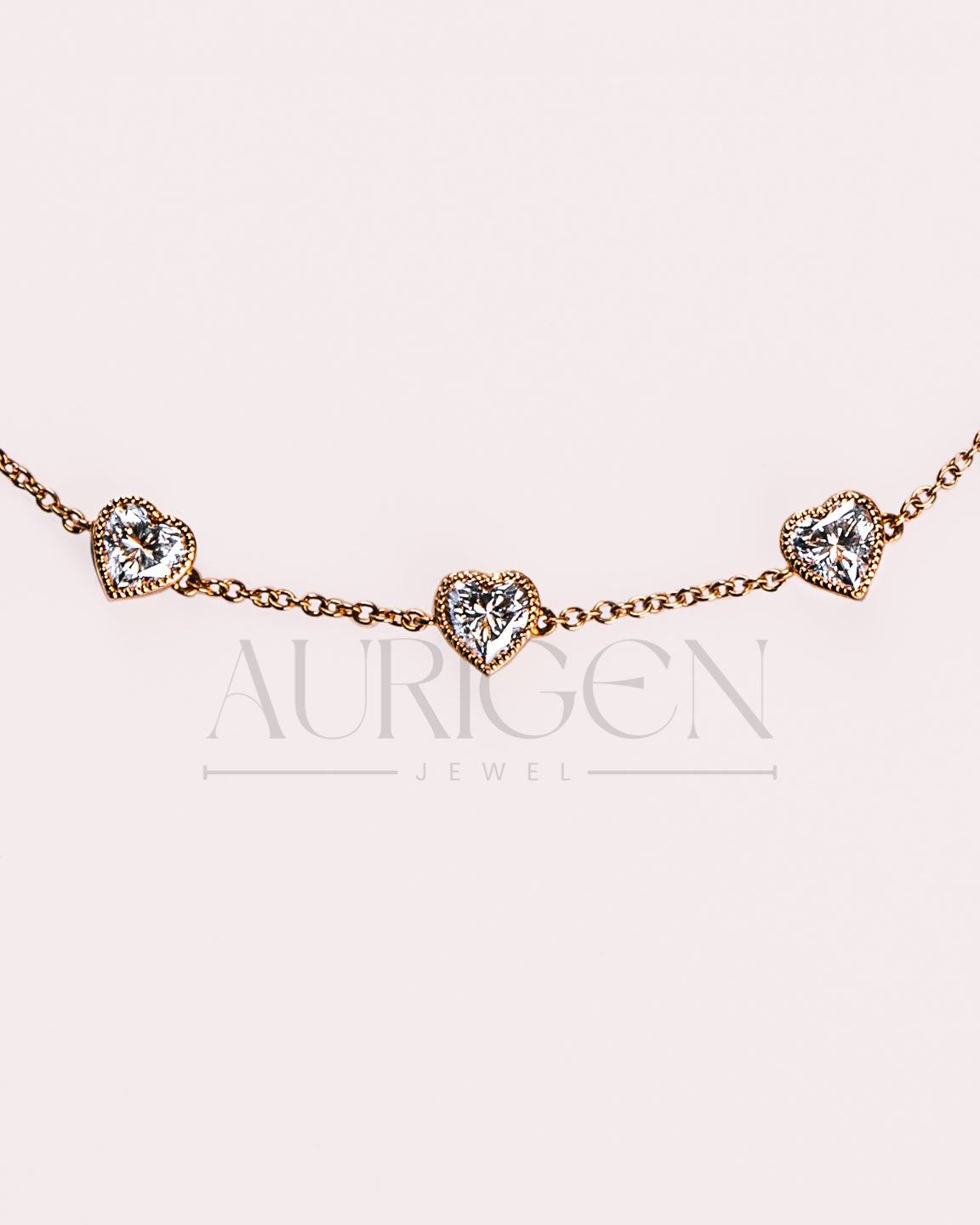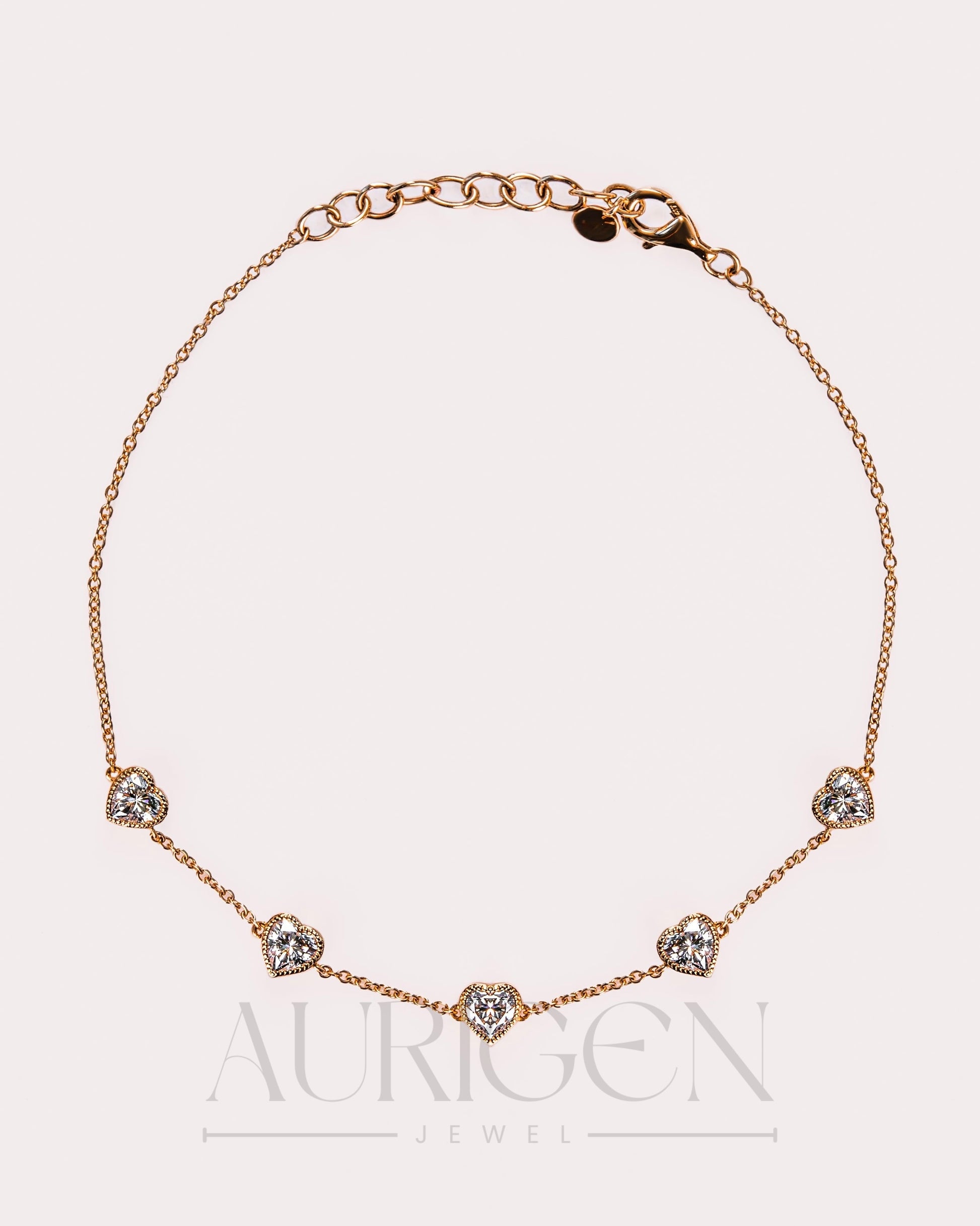 Classic Heart Cut Moissanite and Lab Grown Diamond Bracelet With Milgrain Bezel Setting