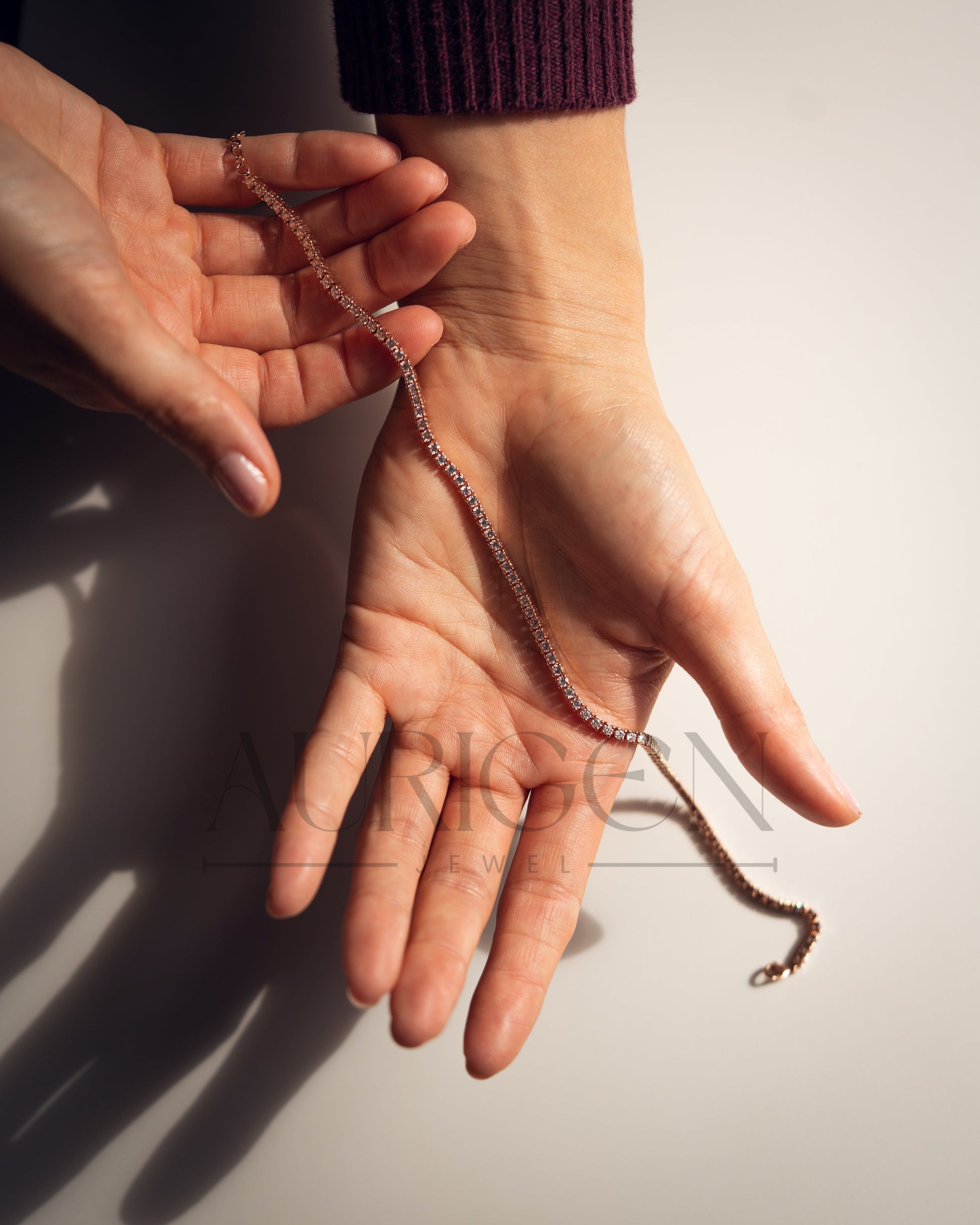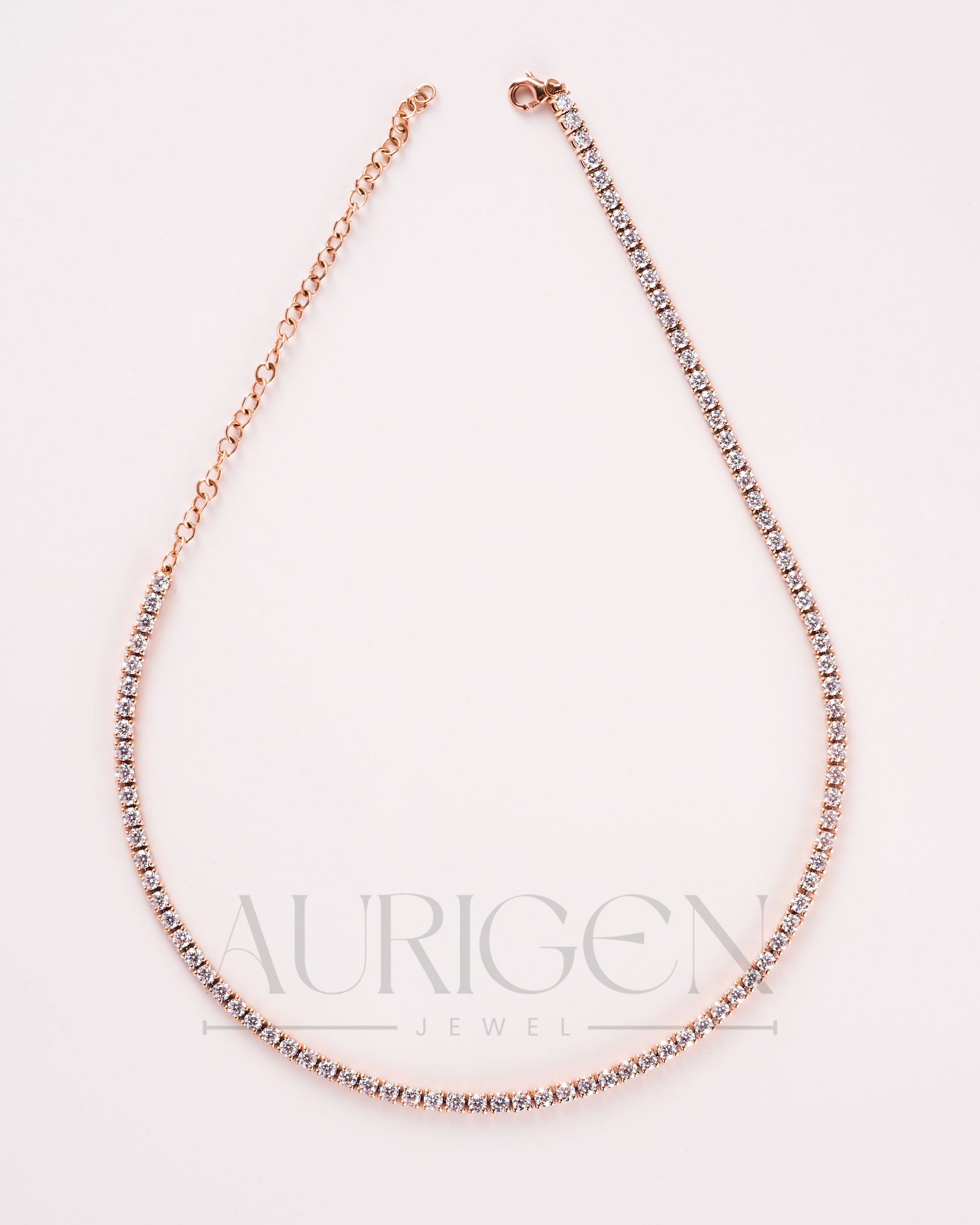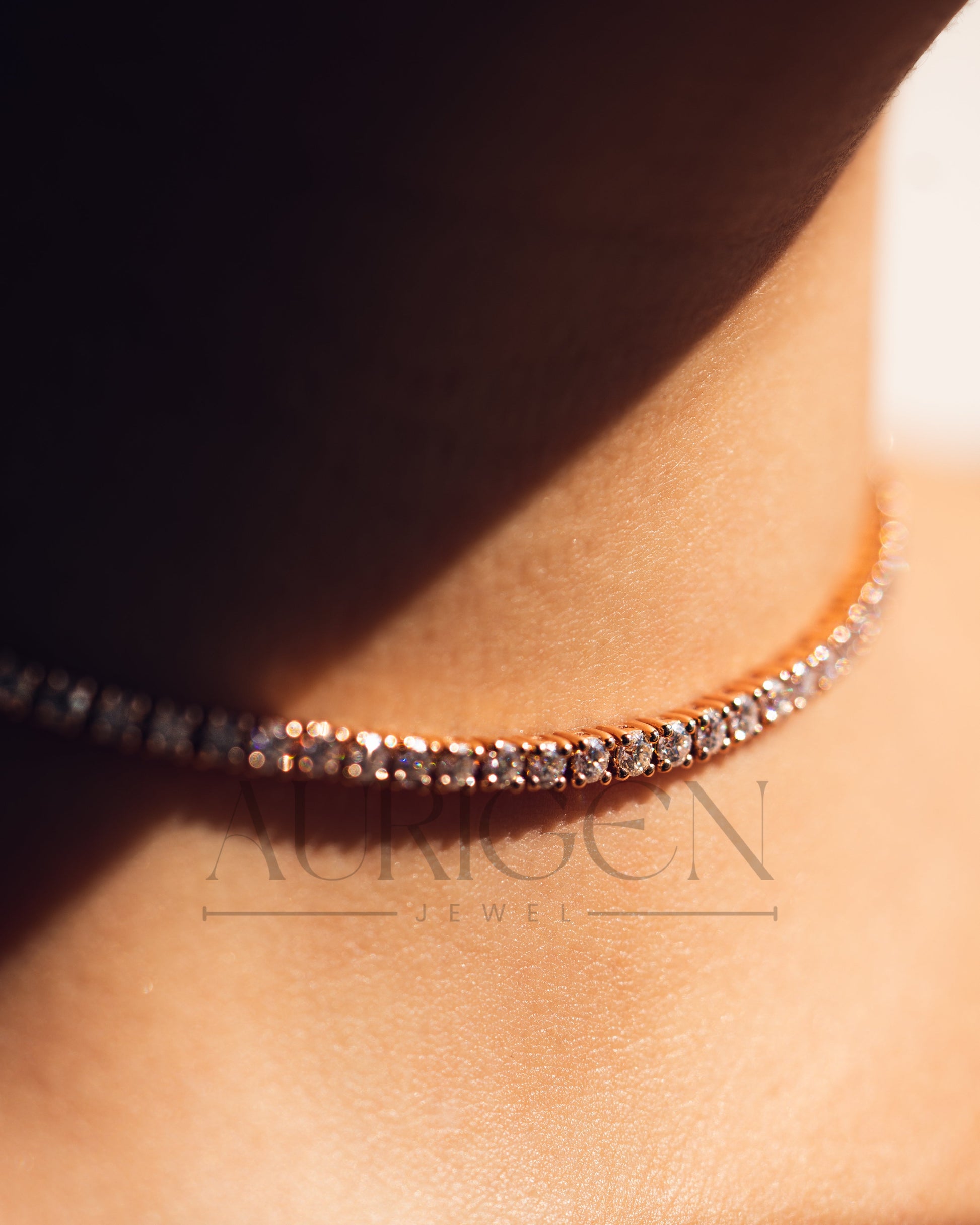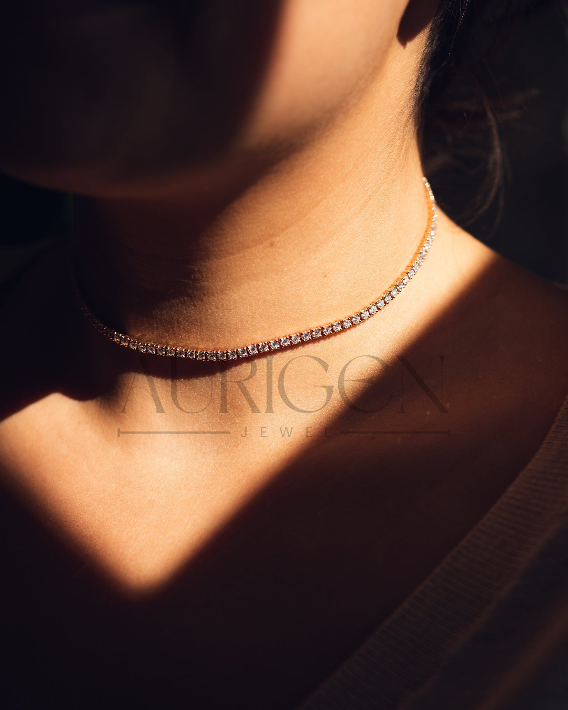 Dainty 14K Rose Gold Tennis Necklace - Round Cut Lab Grown and Moissanite Diamond