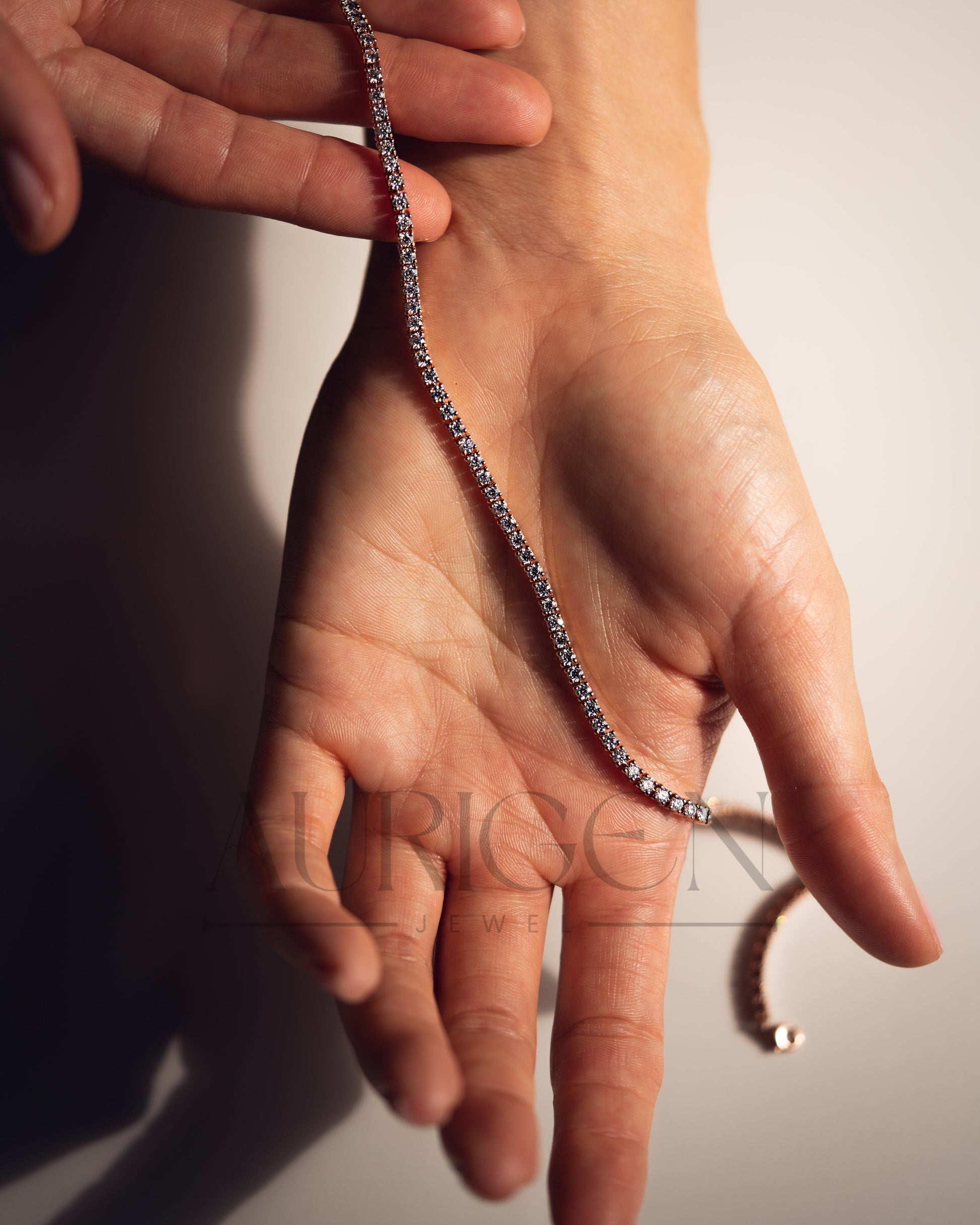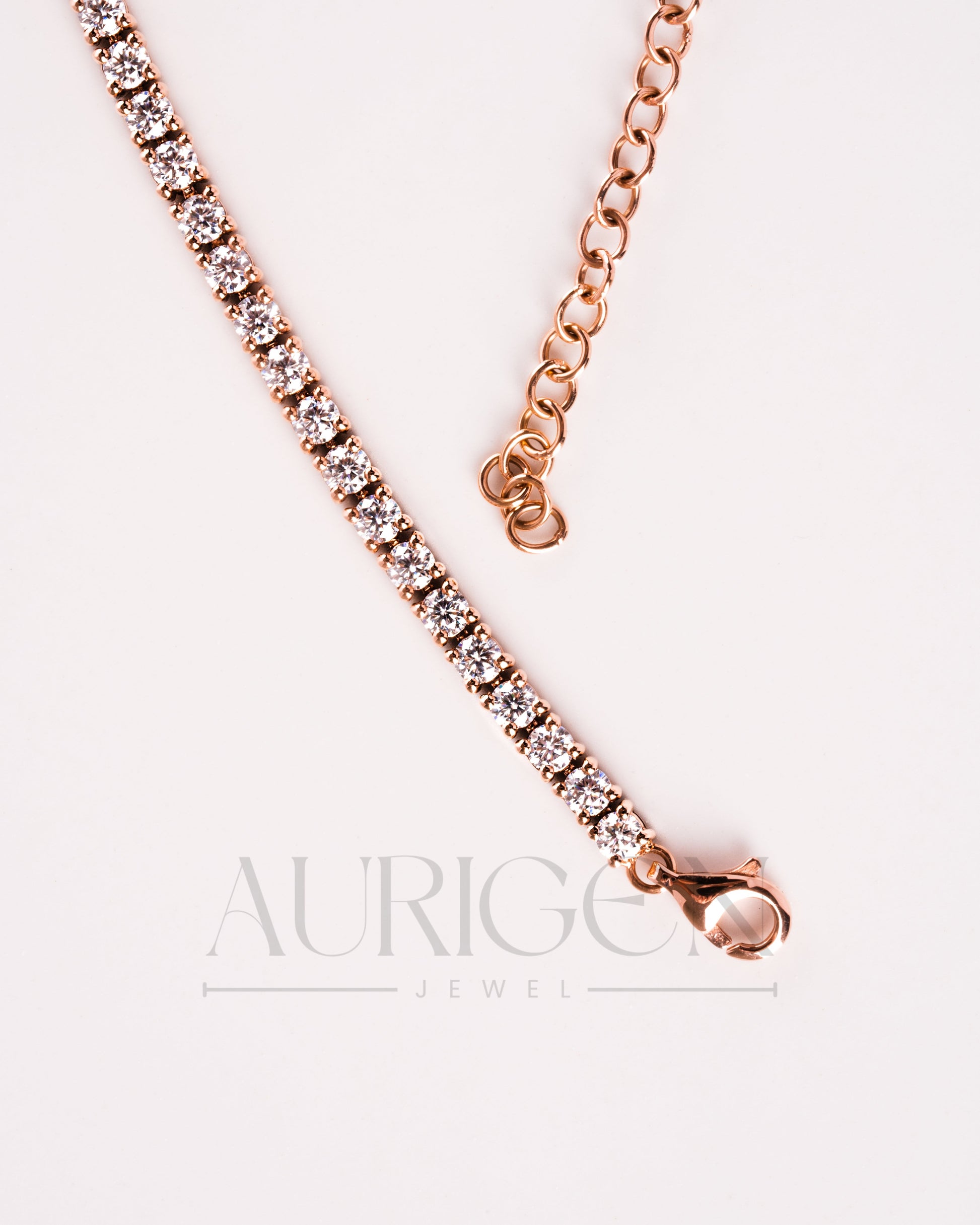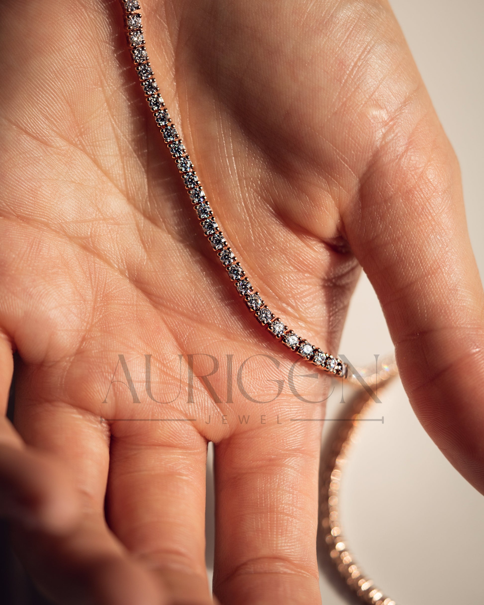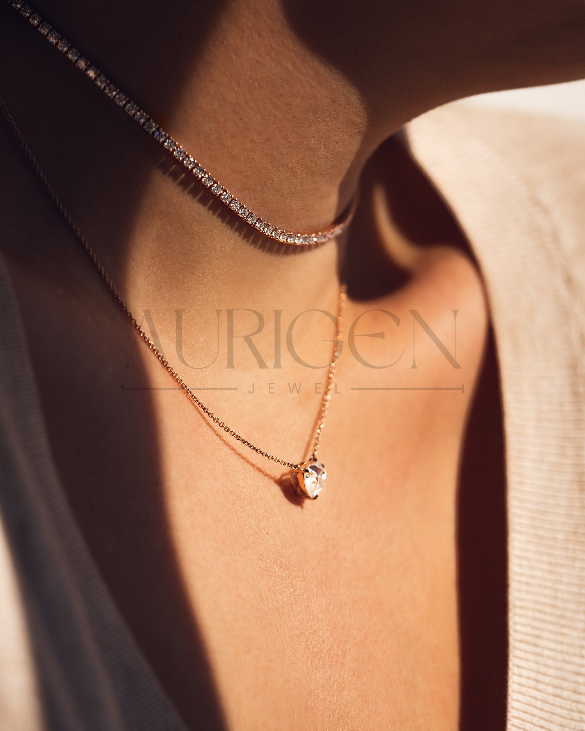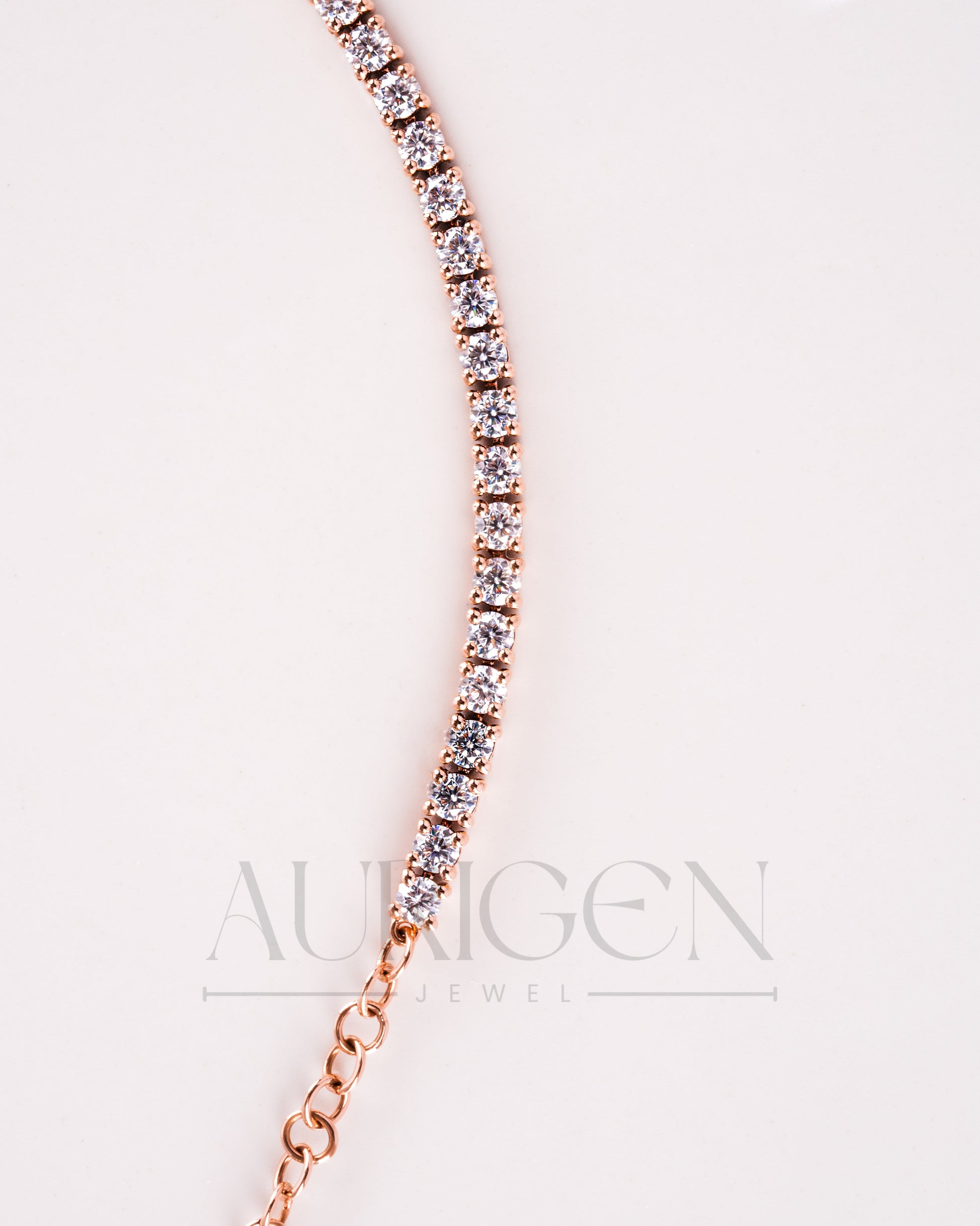 Dainty 14K Rose Gold Tennis Necklace - Round Cut Lab Grown and Moissanite Diamond