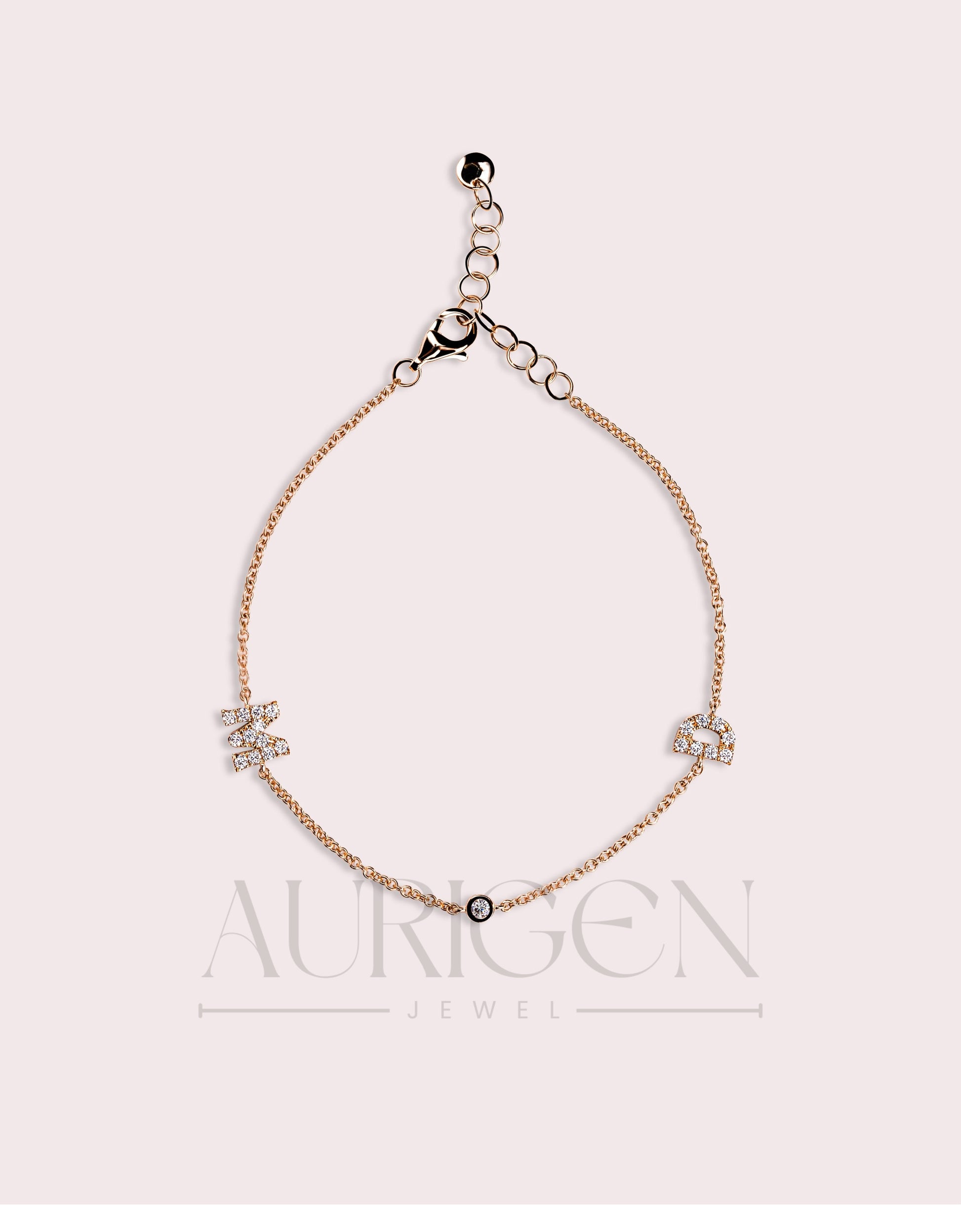 Personalized Initial Round Cut Latter Designed Bracelet-Lab Grown and Moissanite Diamond