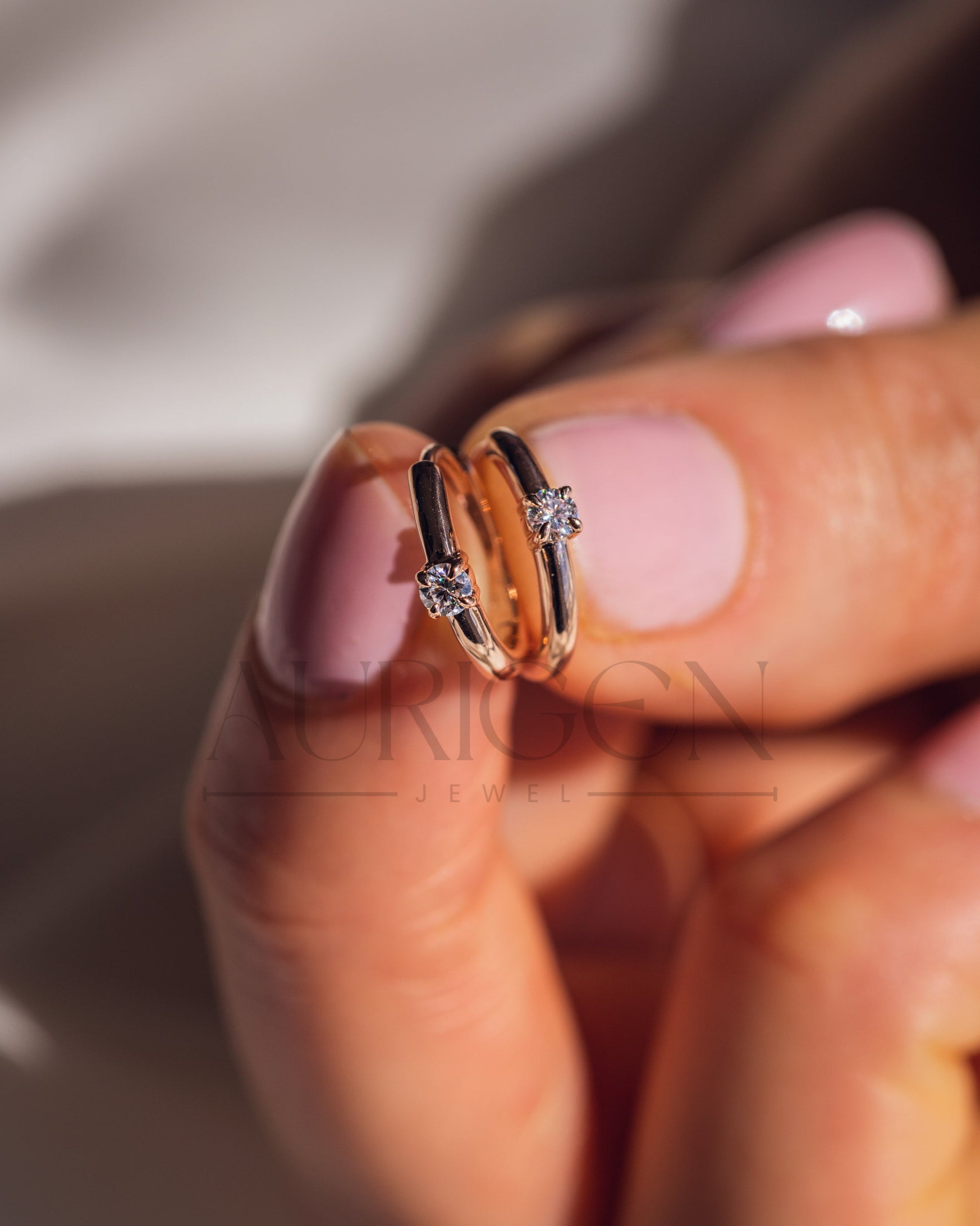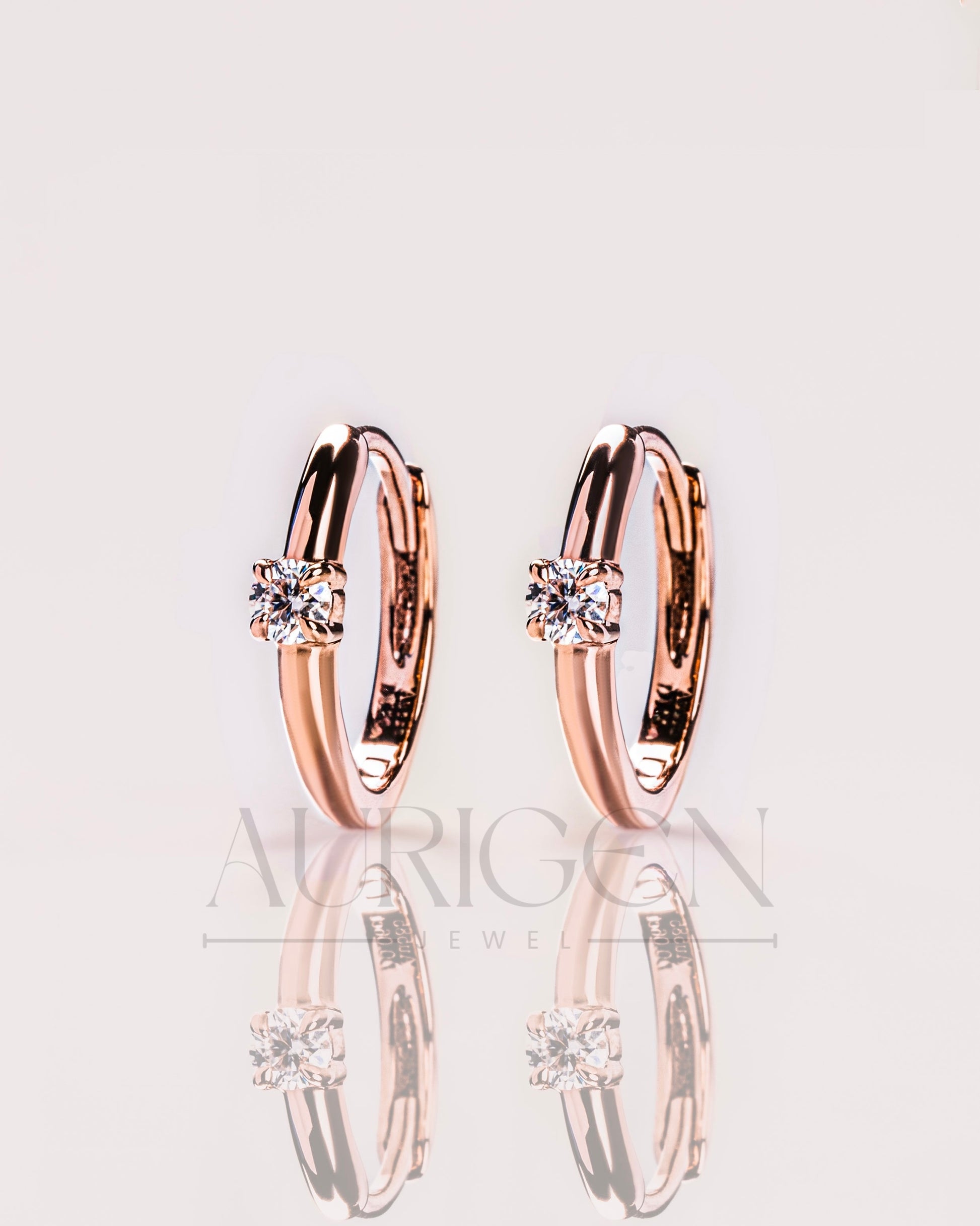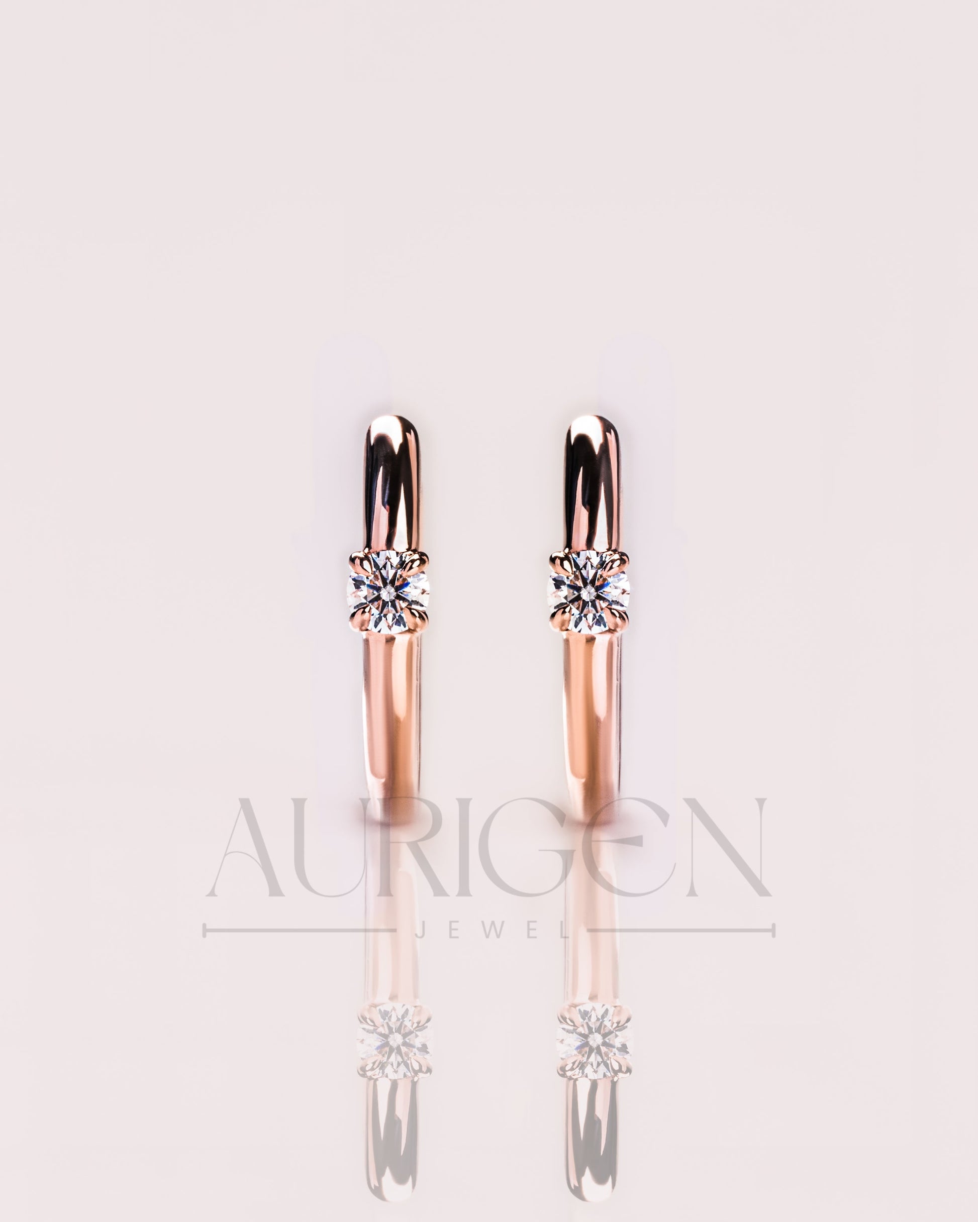 Round Cut Moissanite and Lab Grown Diamond 14k Rose Gold Huggie Hoop Earrings