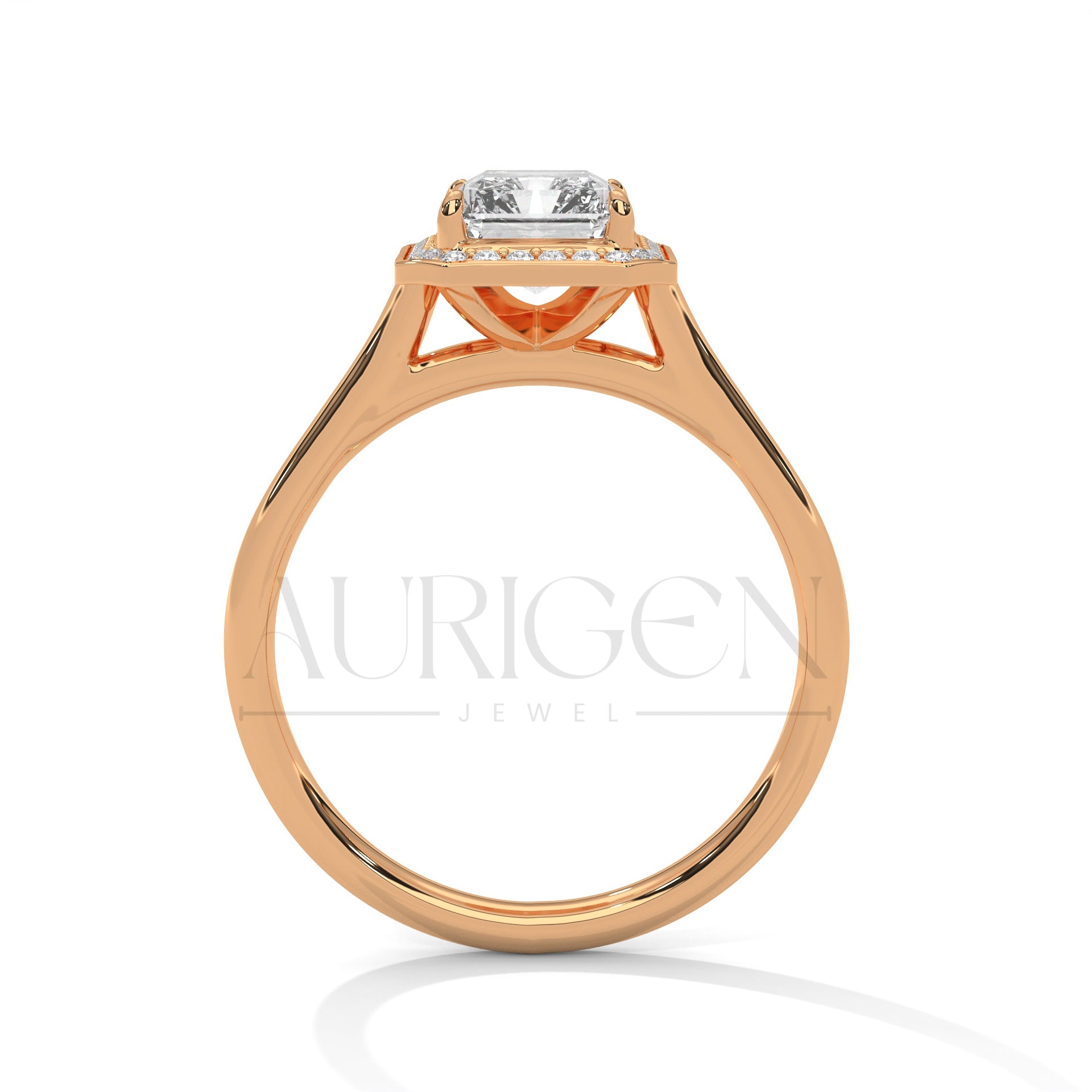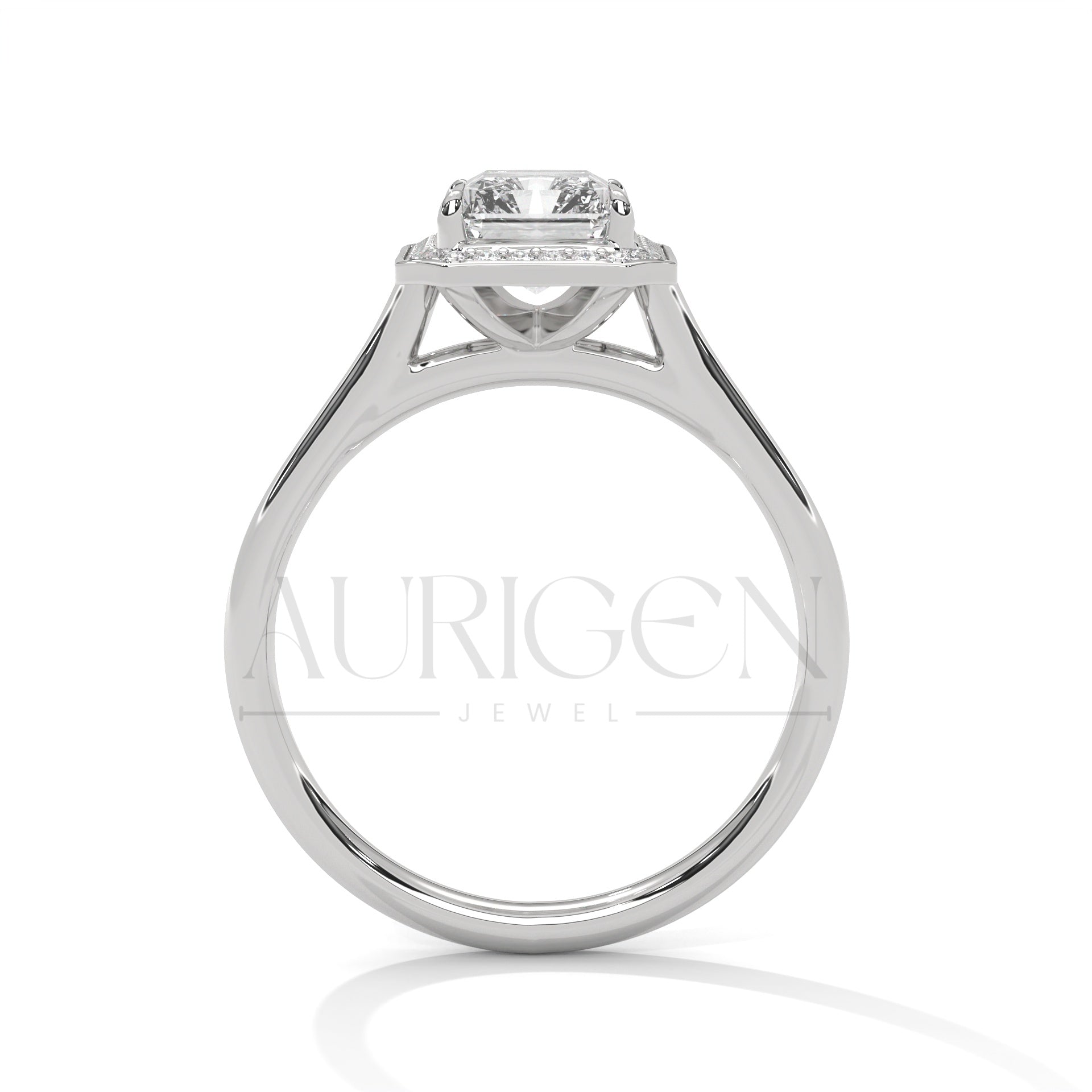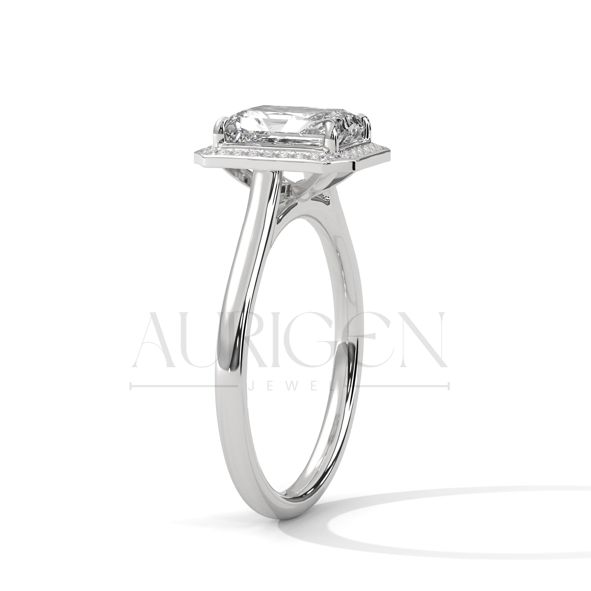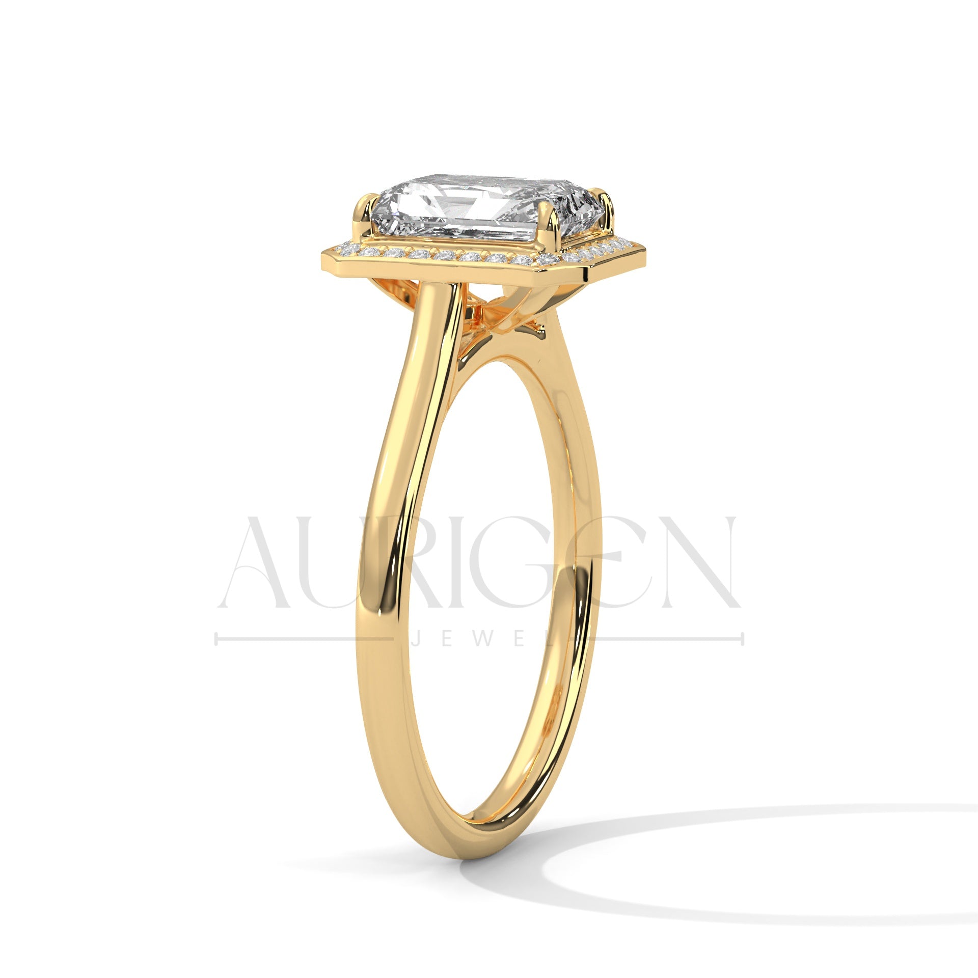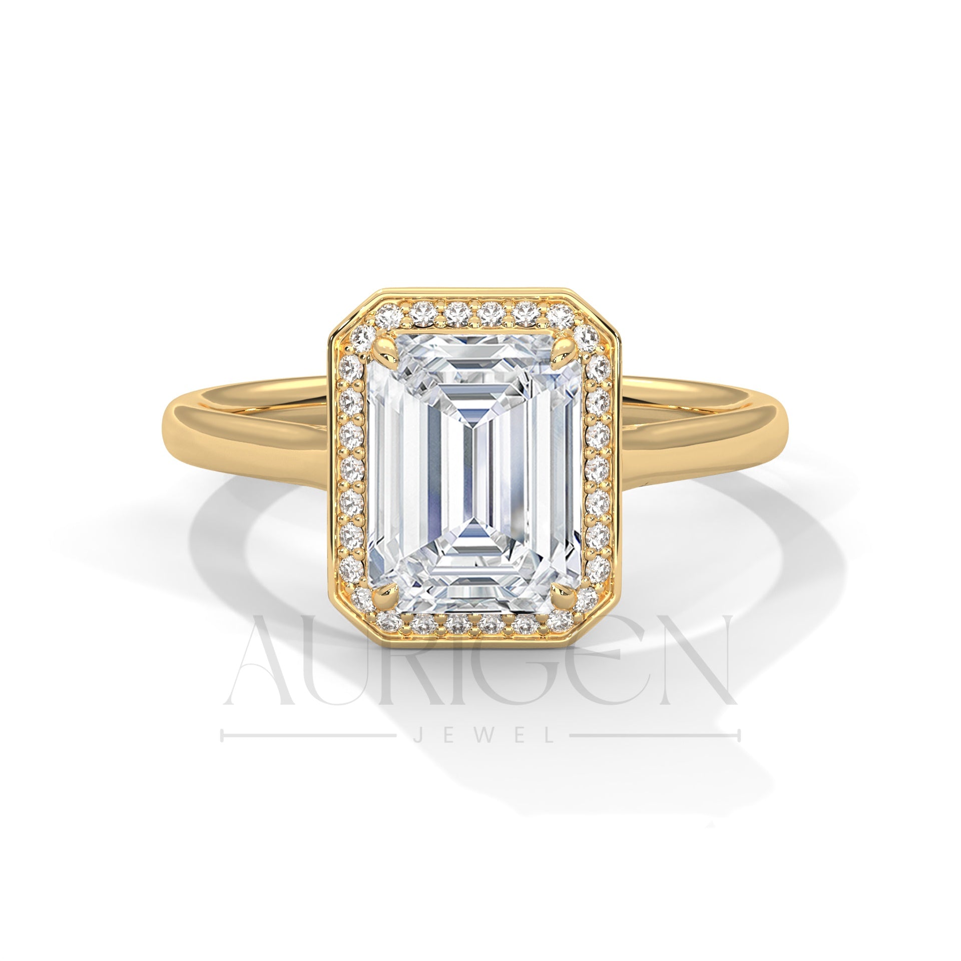The Regal Radiance – 2.00 CT Emerald Cut Moissanite Halo Diamond Ring in 14K Solid Gold