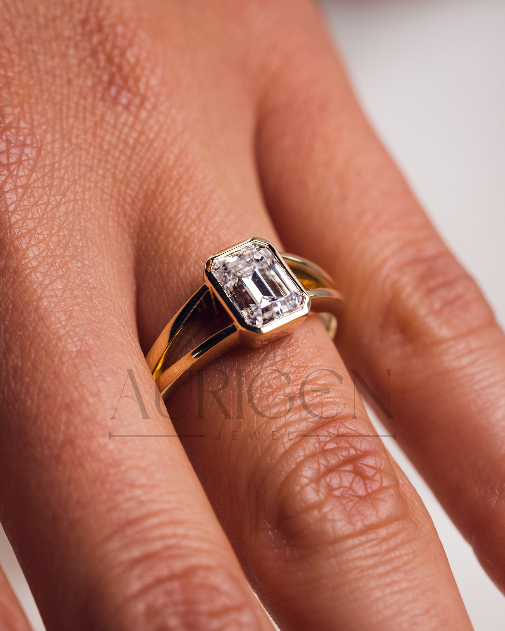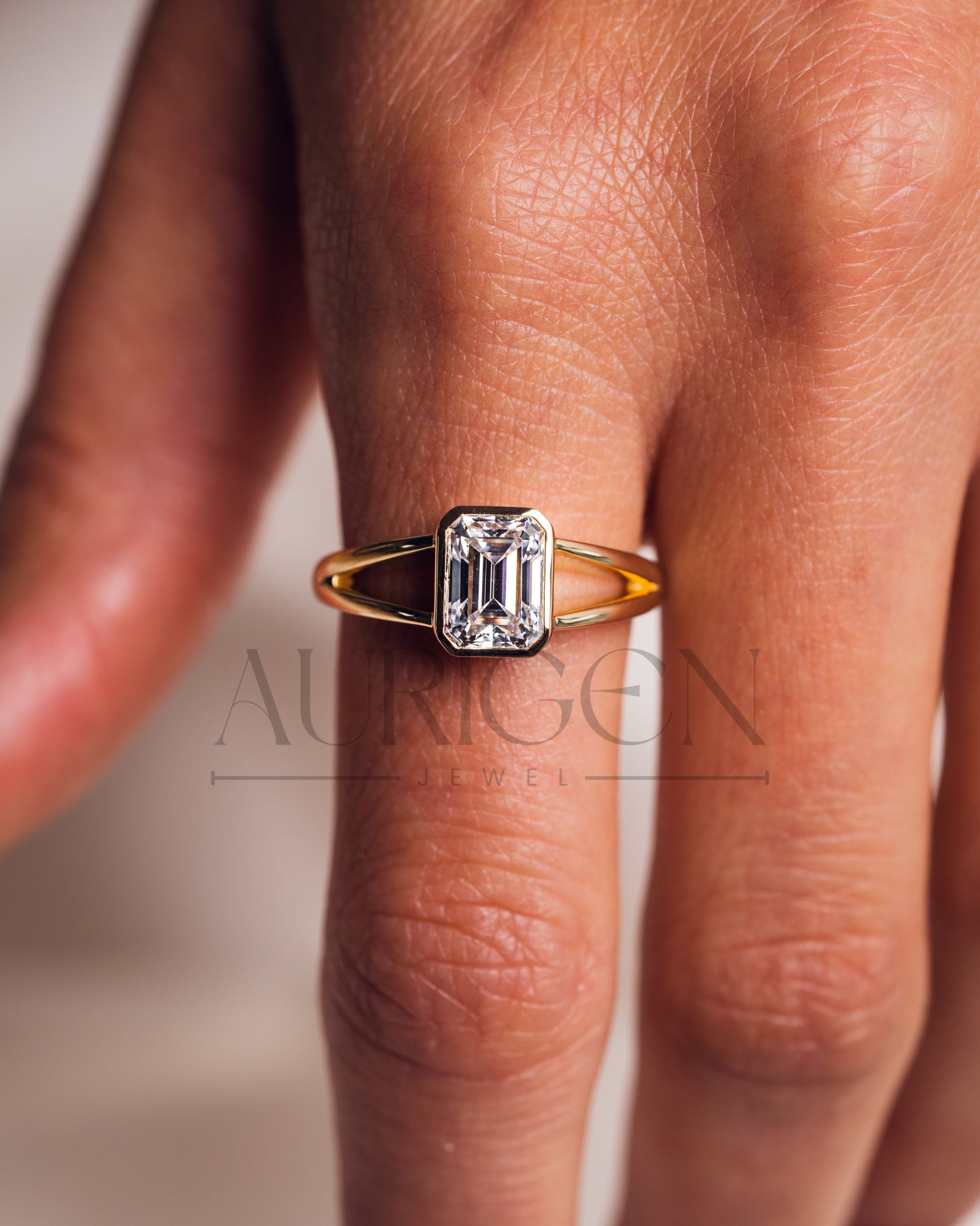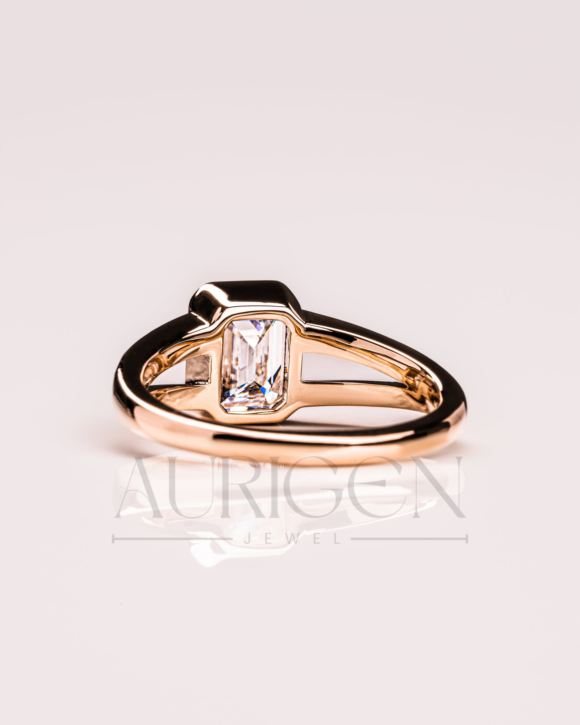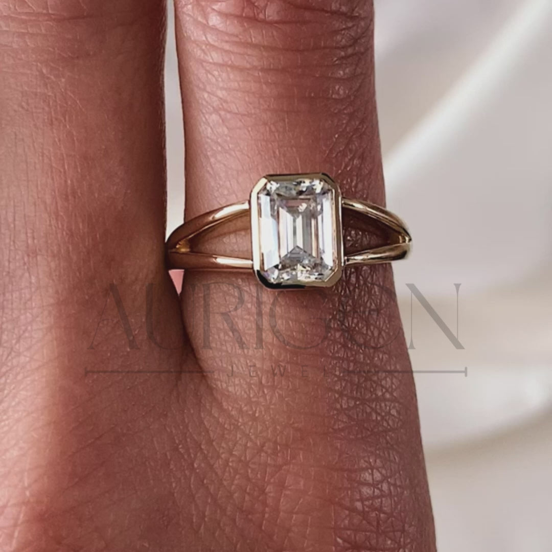 Timeless Emerald Cut Lab Grown and Moissanite Diamond Ring – Bezel Setting 14K Solid Gold