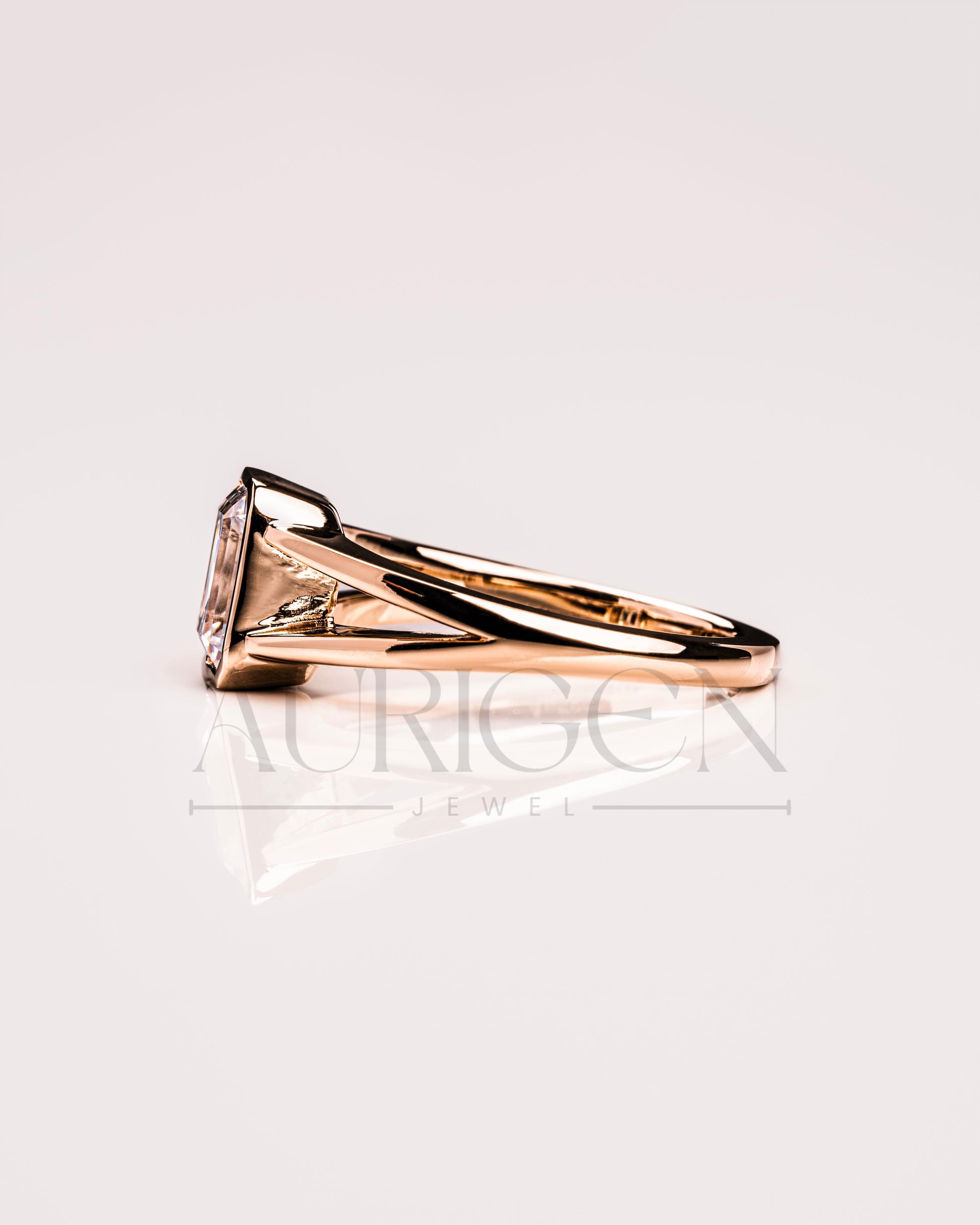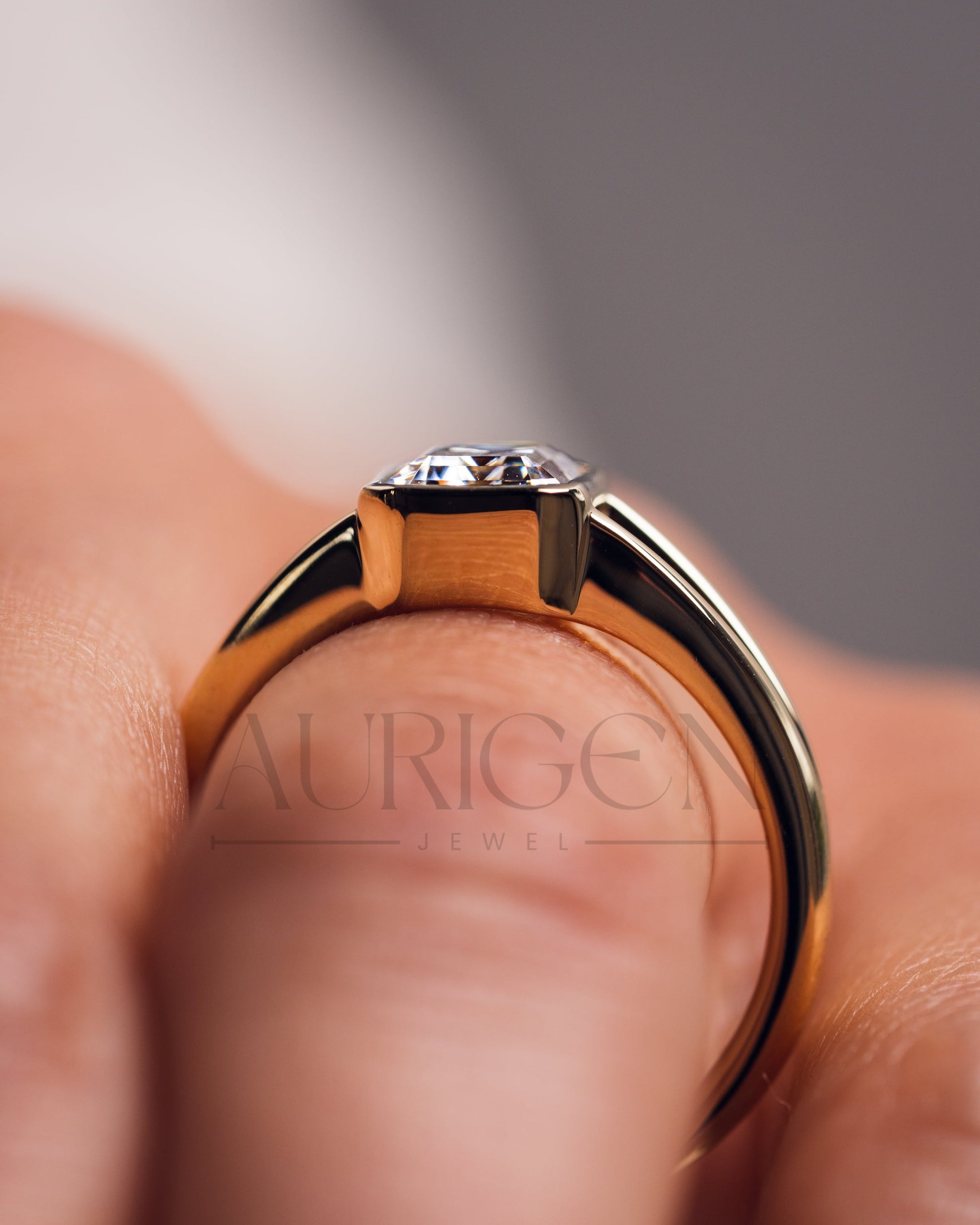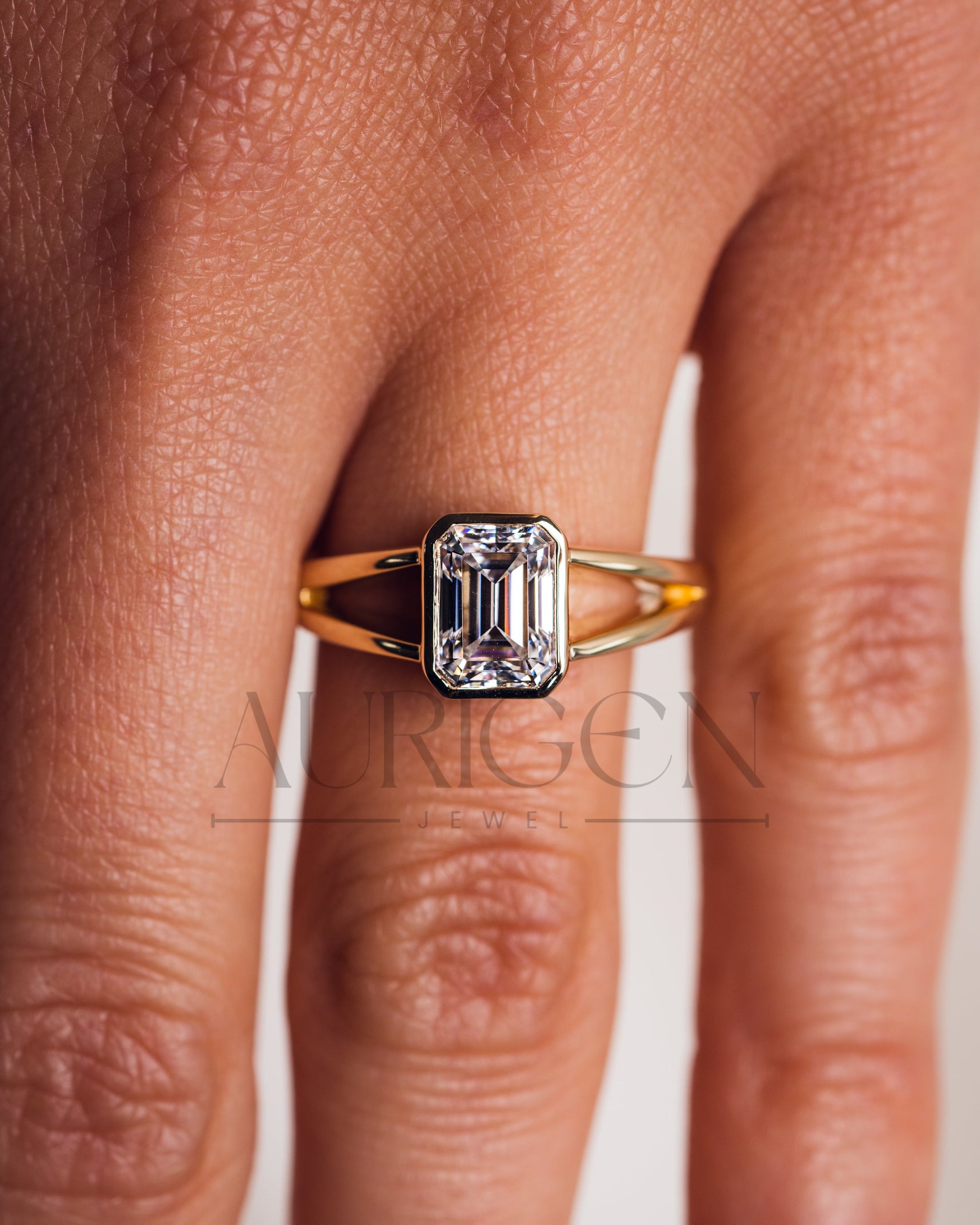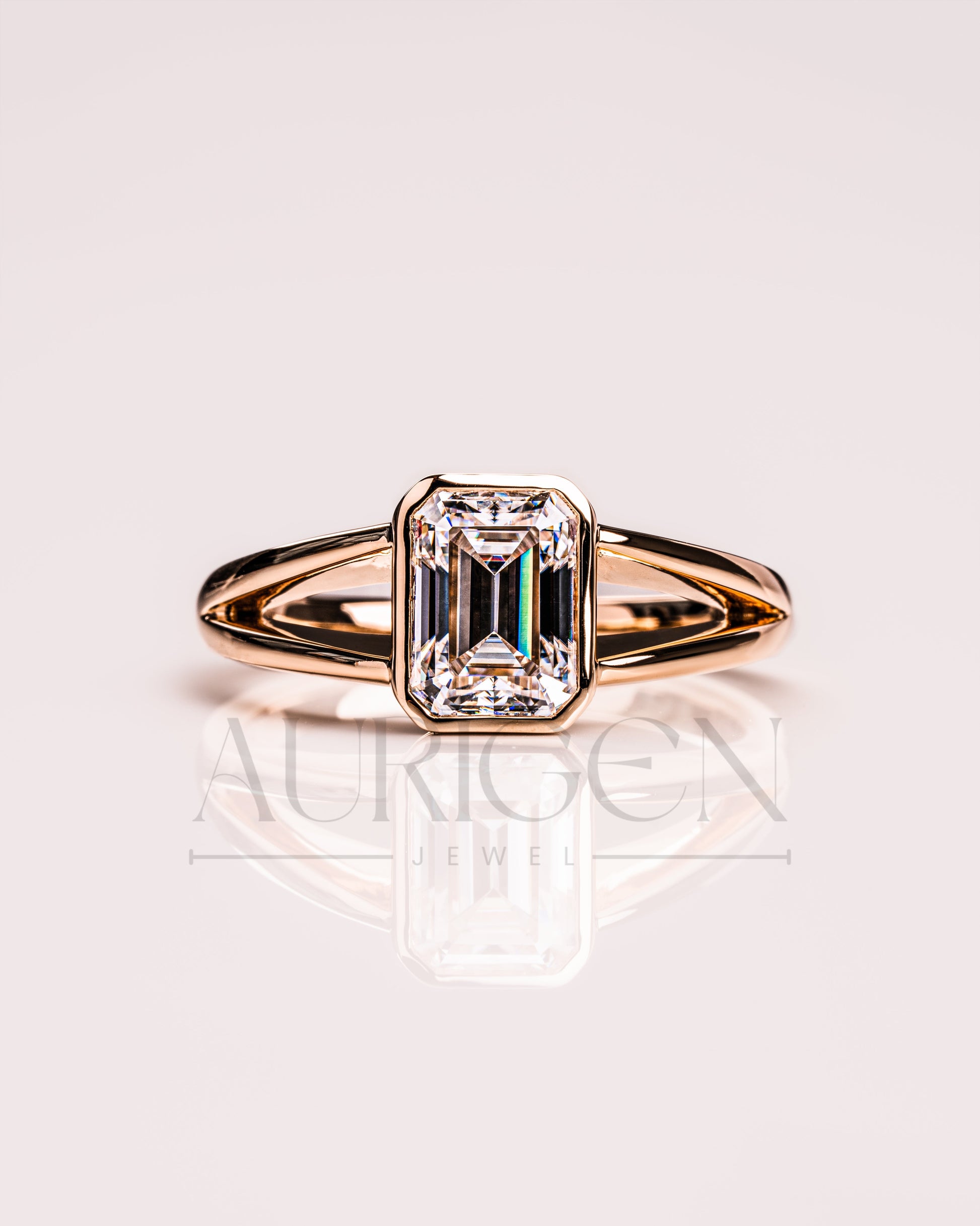 Timeless Emerald Cut Lab Grown and Moissanite Diamond Ring – Bezel Setting 14K Solid Gold