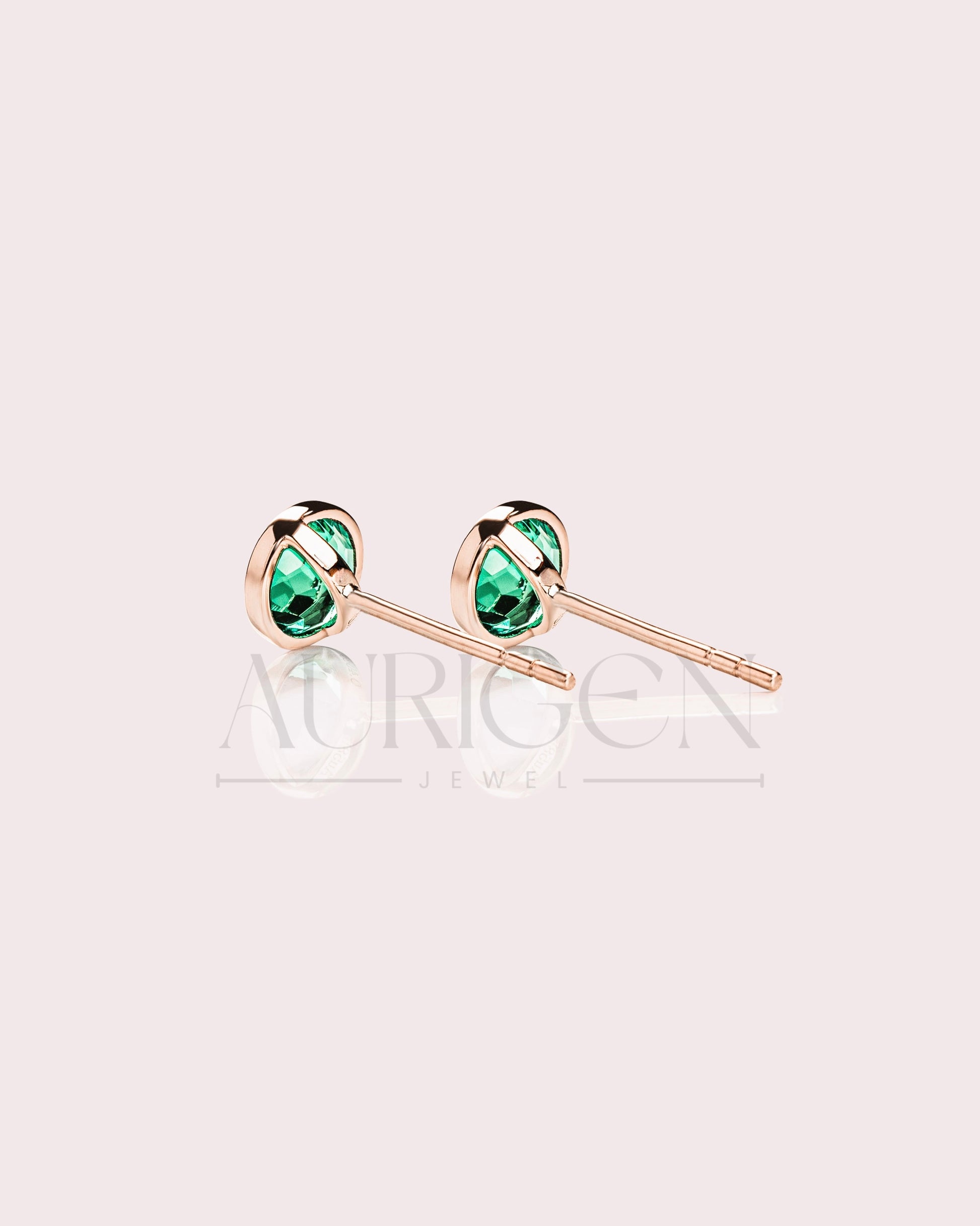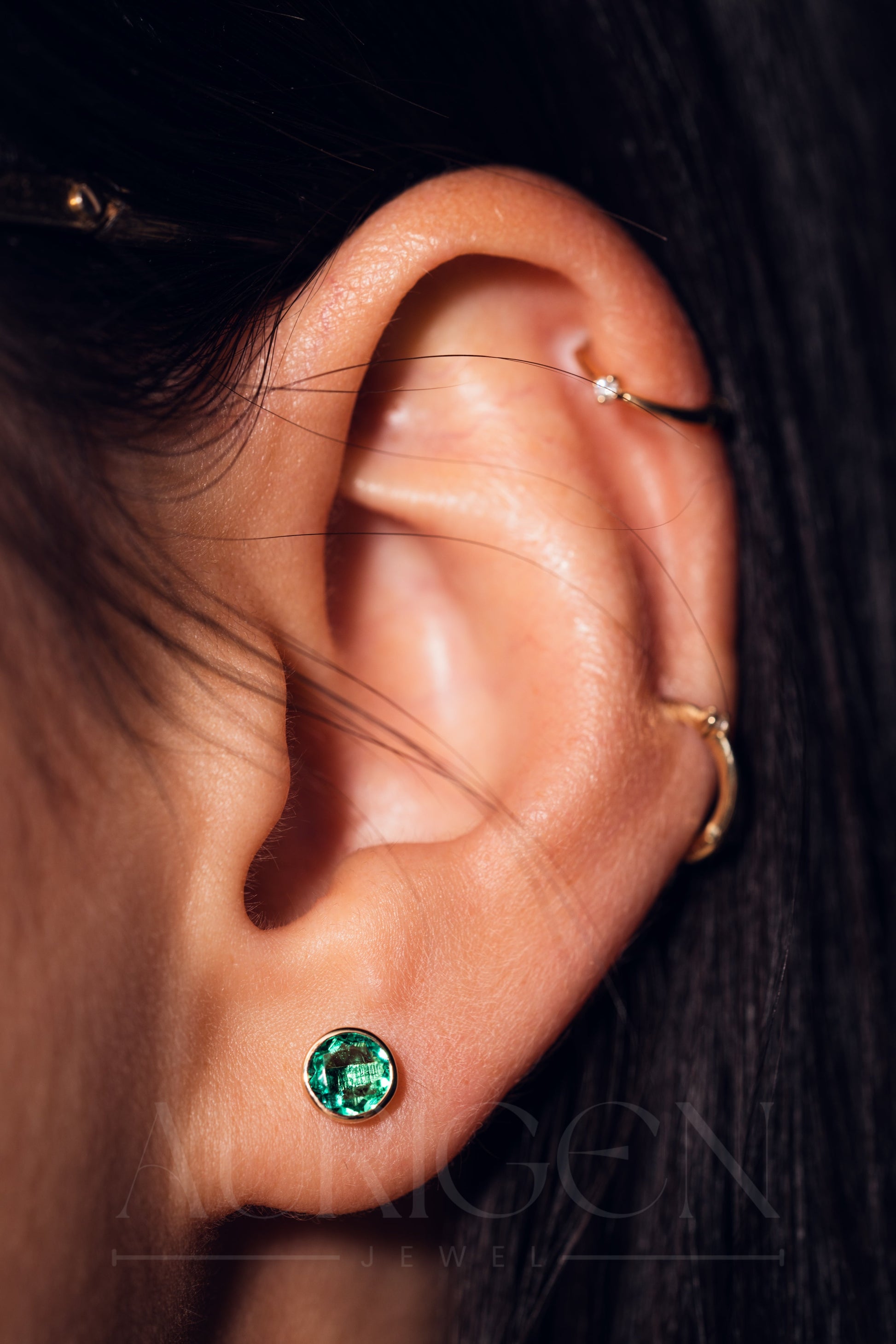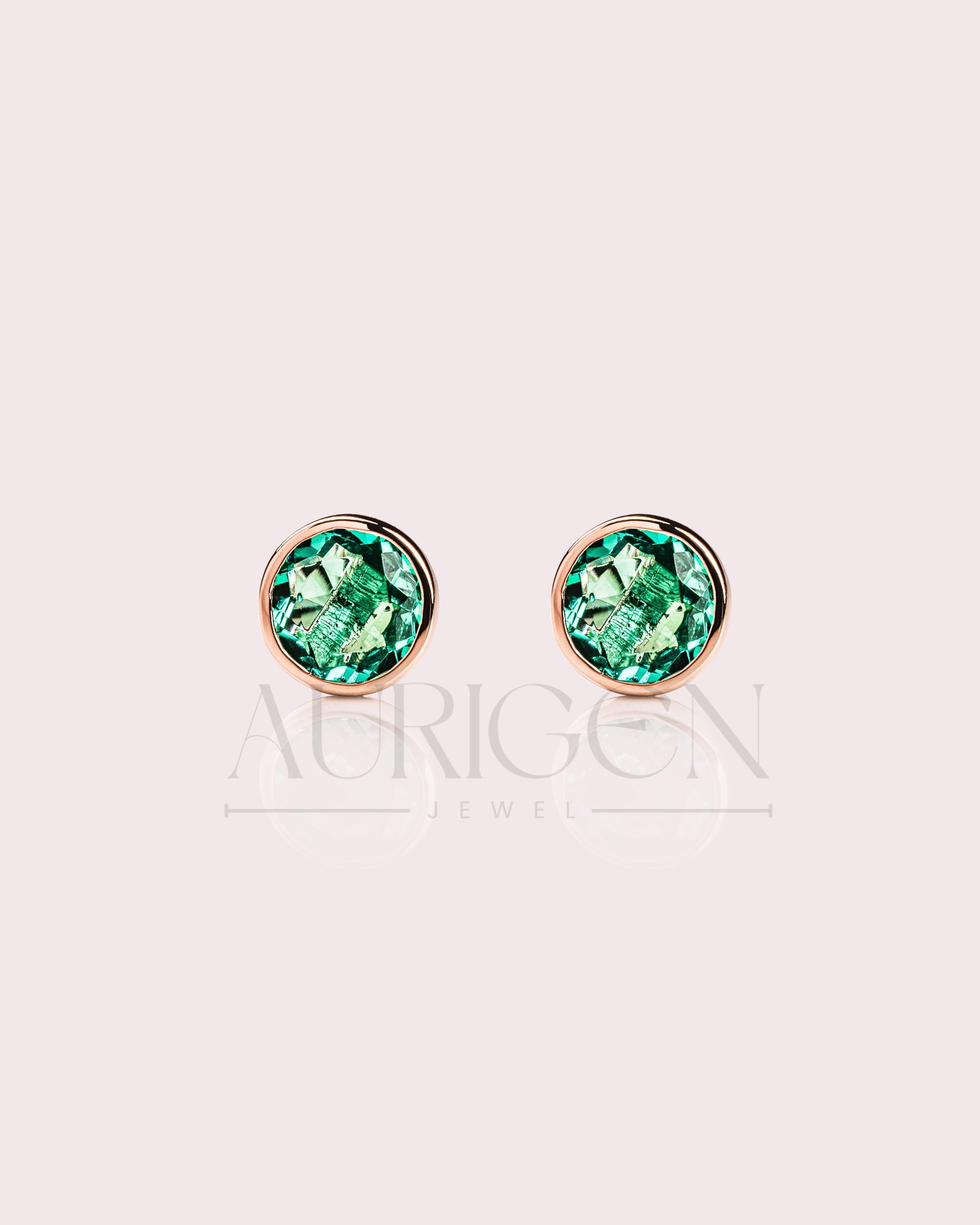 Unique Bezel Setting Stud Earrings - Green Round Cut Moissanite and Lab Grown Diamond