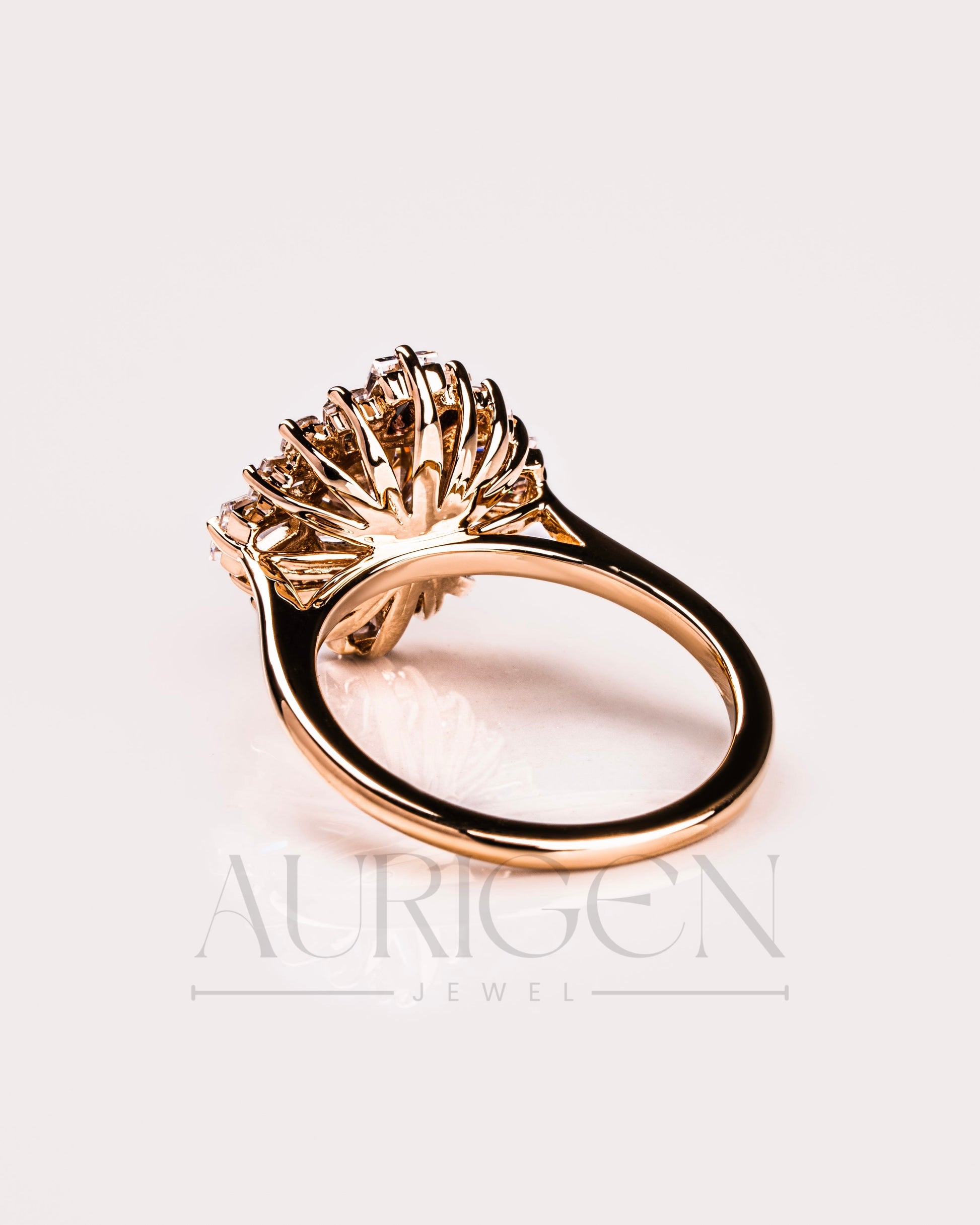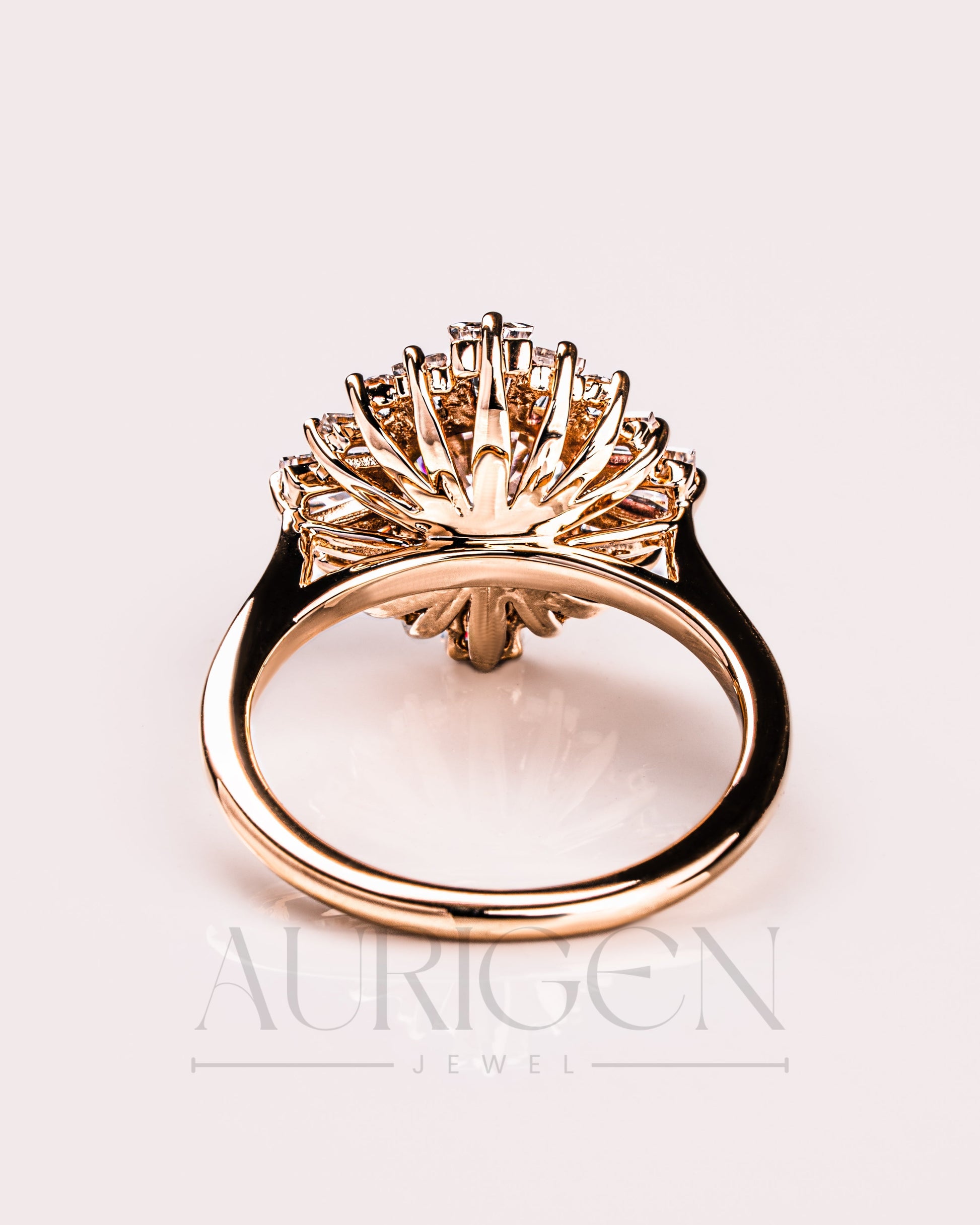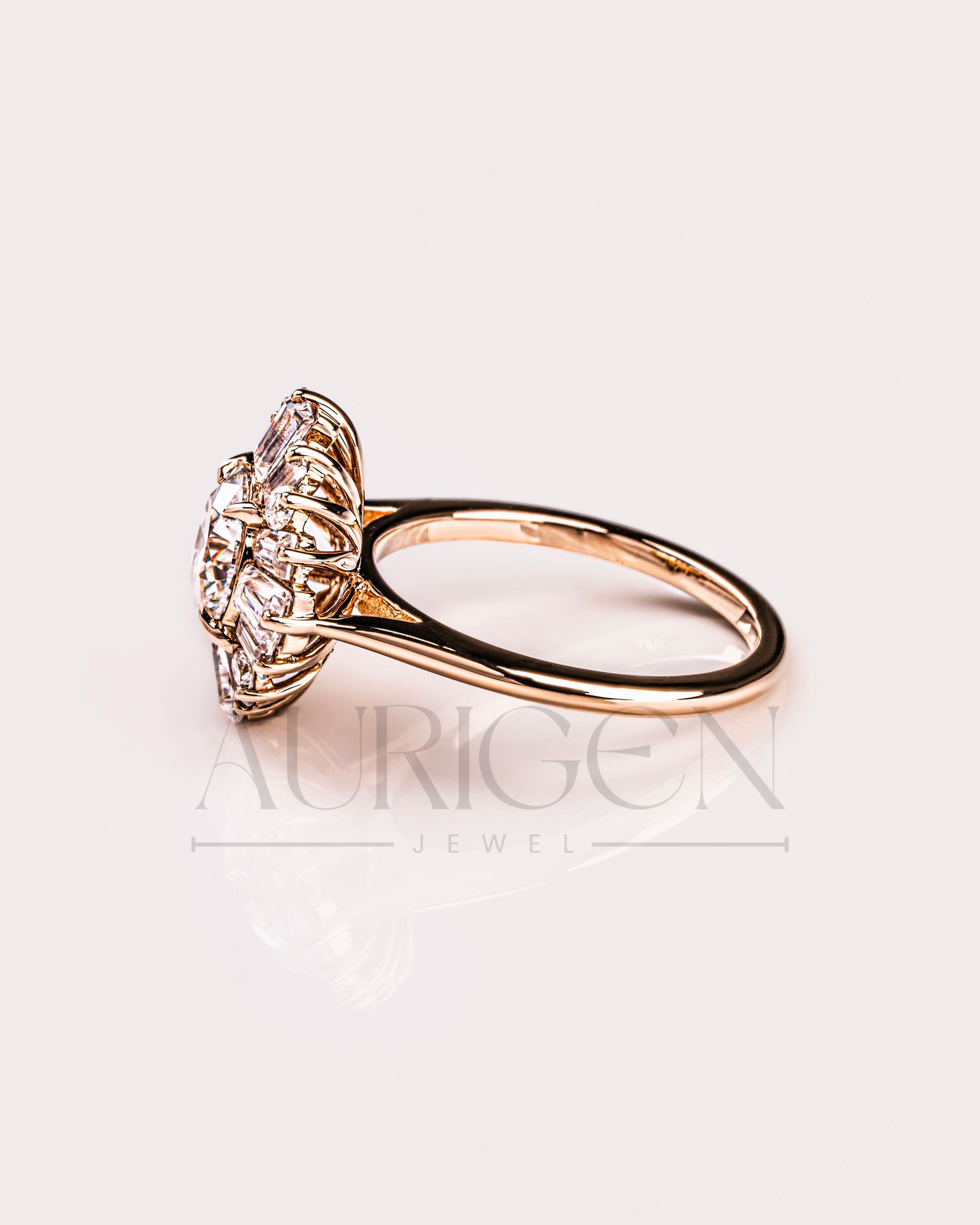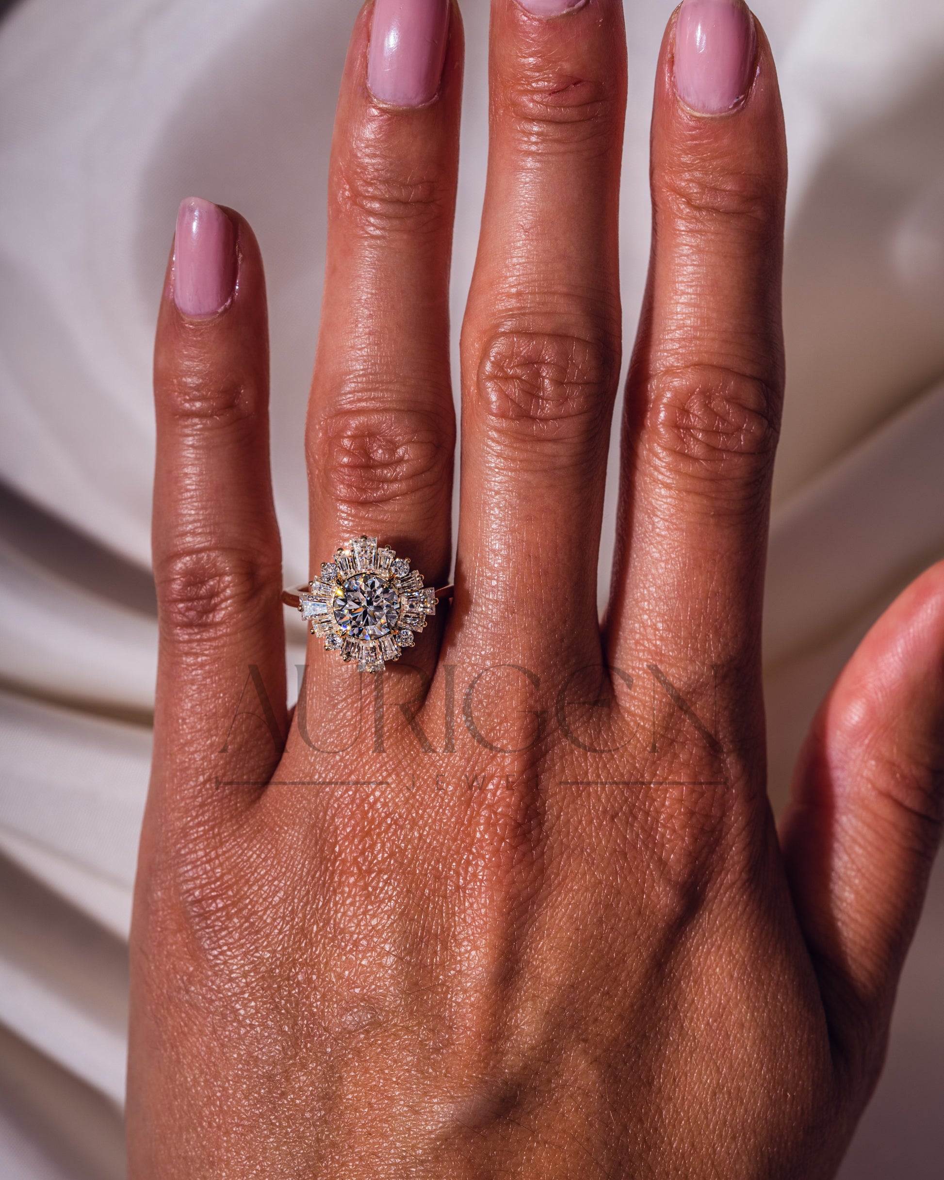 Vintage-Inspired Round Cut Moissanite & Lab Grown Diamond Sunburst Halo Ring