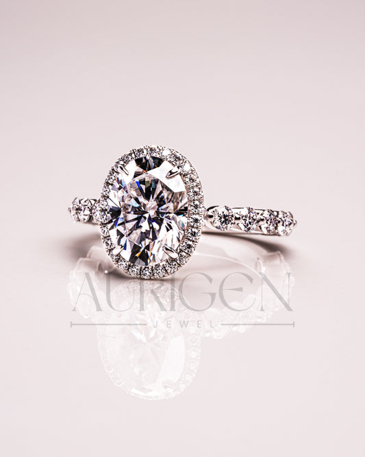 Sparkly 2.00 CT Oval Cut Moissanite Diamond Halo Engagement Ring