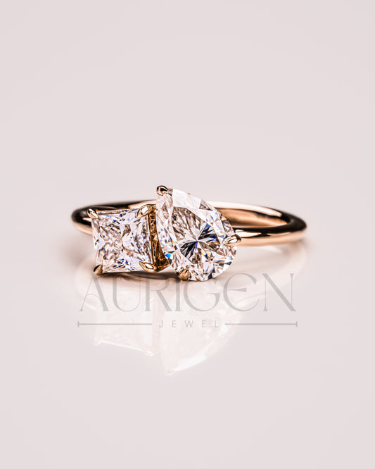 Toi Et Moi Princess and Pear Cut Moissanite & Lab Grown Diamond Engagement Ring