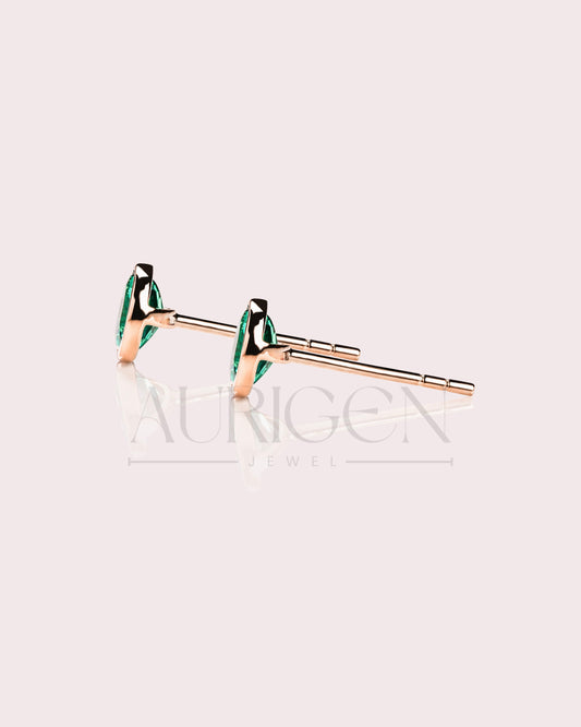 Unique Bezel Setting Stud Earrings - Green Round Cut Moissanite and Lab Grown Diamond