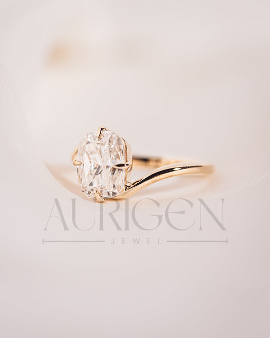 Unique Compass 4 Prong Set Elongated Cushion Cut Moissanite and Lab Grown Diamond Ring