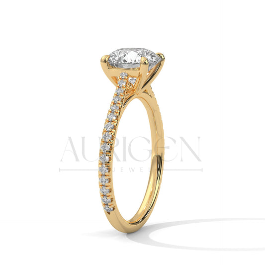 2.00 CT Round Cut Solitaire Diamond Engagement Ring with Pave Band 14K Solid Gold