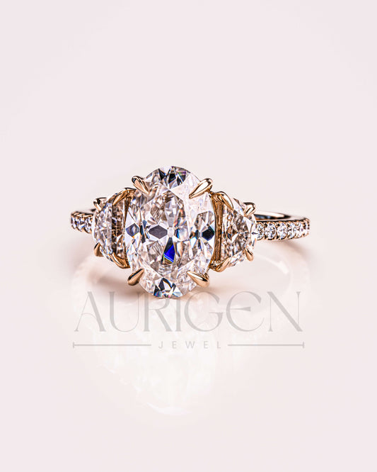 Best 14K Solid Gold Oval Cut Moissanite and Lab Grown Diamond Ring