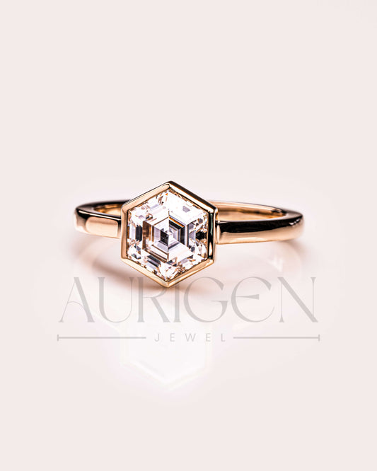 Bezel Setting Hexagon Cut Lab Grown and Moissanite Diamond Ring