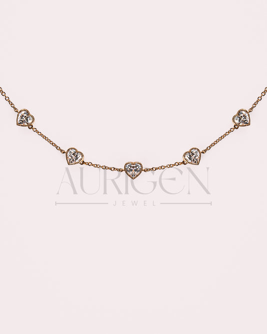 Classic Heart Cut Moissanite and Lab Grown Diamond Bracelet With Milgrain Bezel Setting