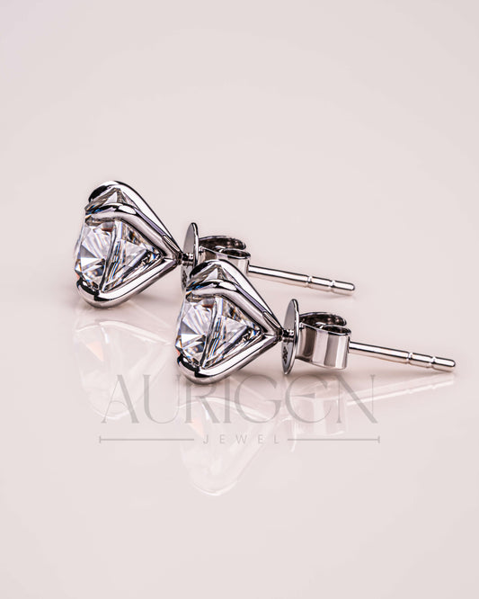 Cushion Cut Moissanite and Lab Grown Diamond Stud Earrings - 14k White Gold