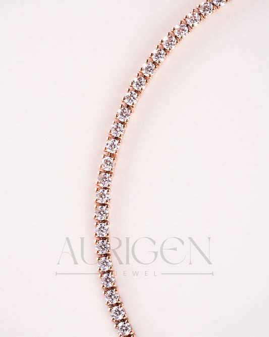 Dainty 14K Rose Gold Tennis Necklace - Round Cut Lab Grown and Moissanite Diamond