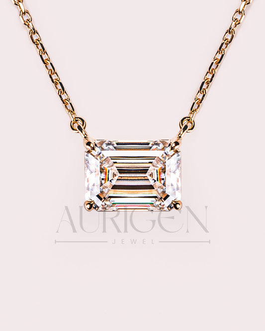 East-West Emerald Cut Moissanite and Lab Grown Diamond Necklace