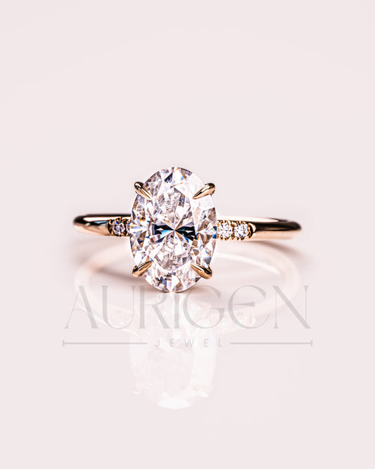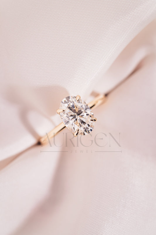 Oval Brilliant Diamond Solitaire Ring in 14k Solid Gold Moissanite and Leb Diamond Ring