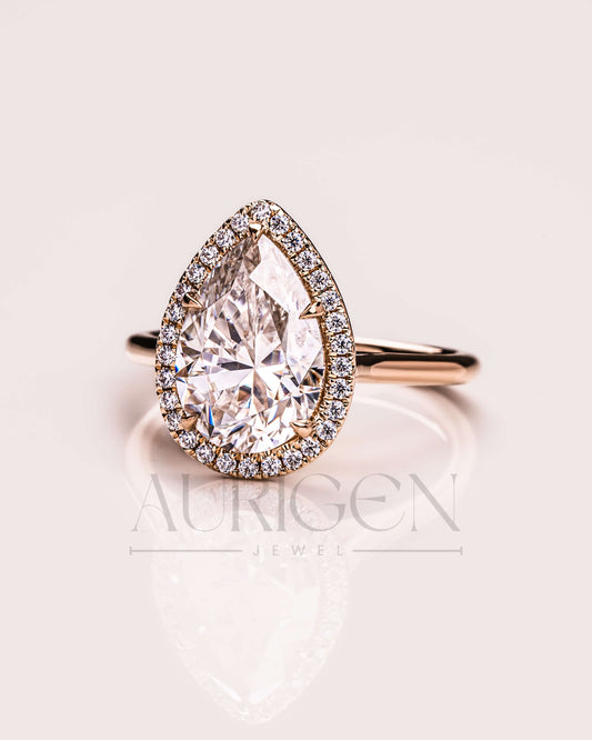 Ice Crushed Pear Cut Moissanite and Lab Grown Halo Ring-14K Solid Gold