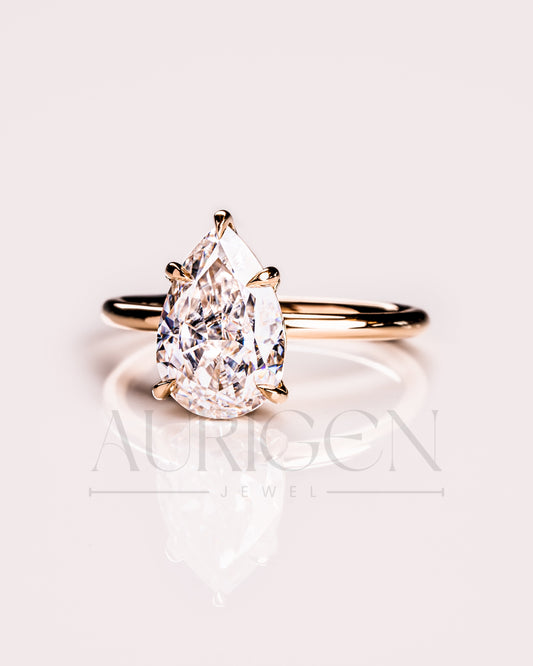 Crushed Ice Pear Moissanite and Lab Grown Diamond Solitaire Engagement Ring