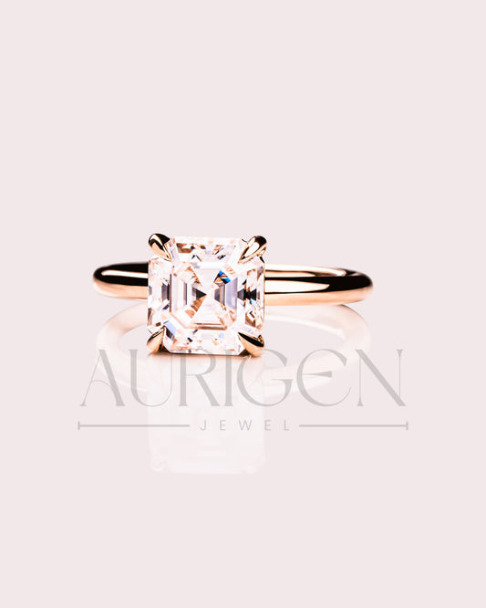 Classic 14K Solid Gold Asscher Cut Moissanite and Lab Grown 4-Prong Solitaire Ring