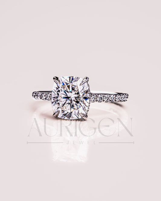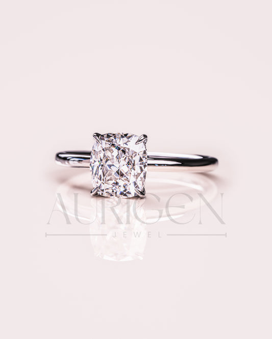 Cushion Cut Moissanite and Lab Grown Diamond Ring- Solitaire Ring in Solid Gold