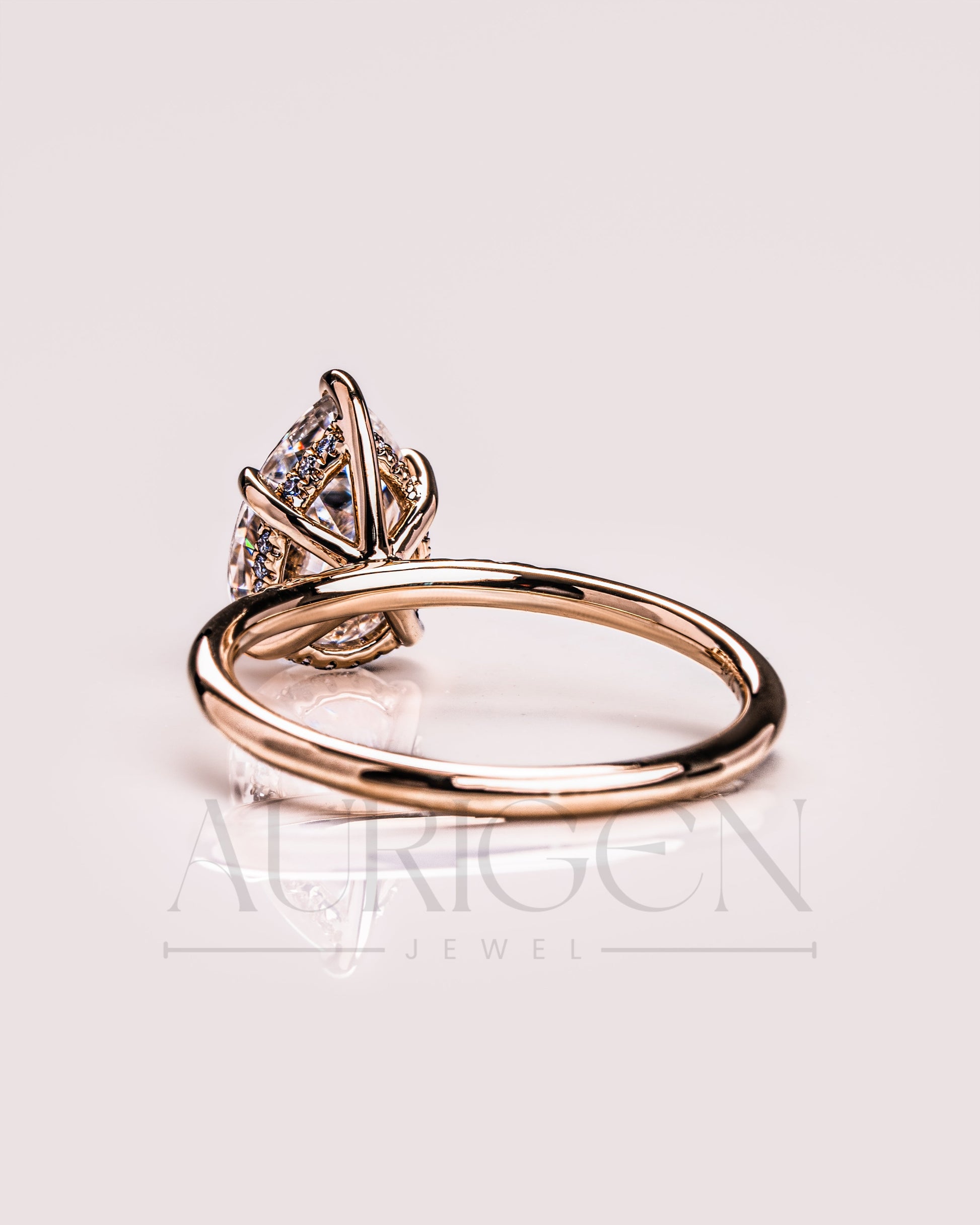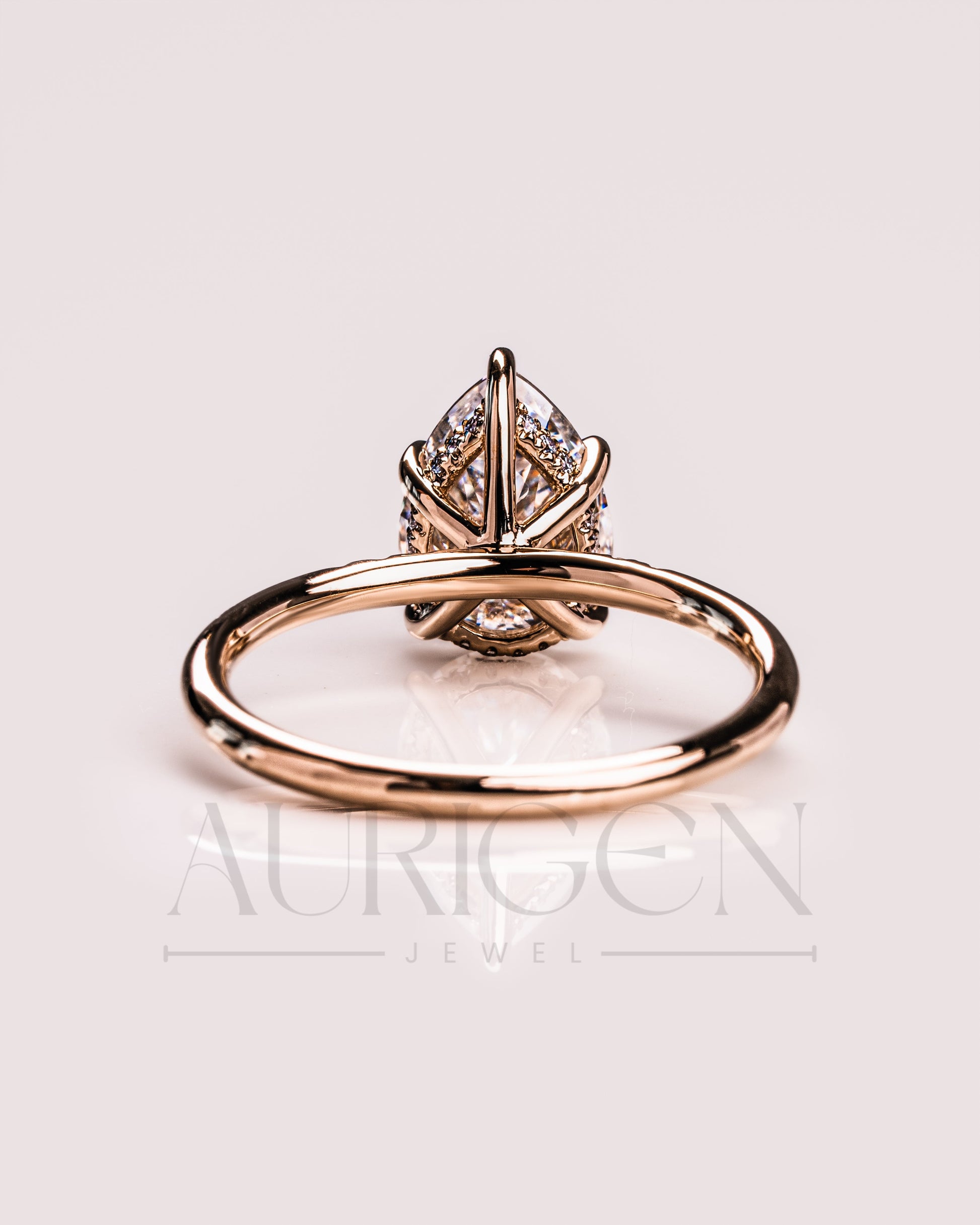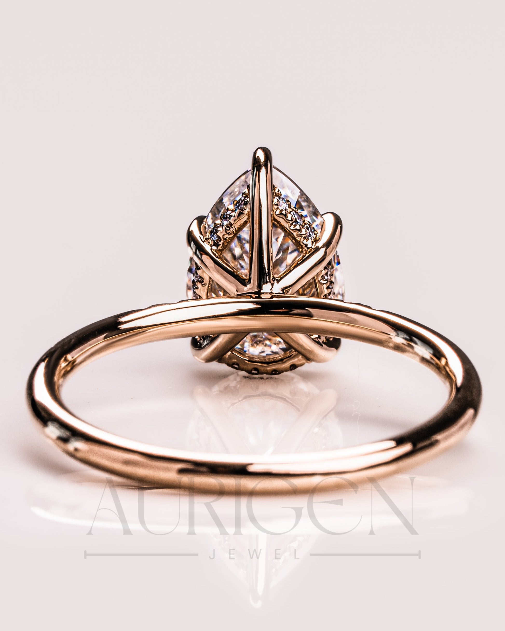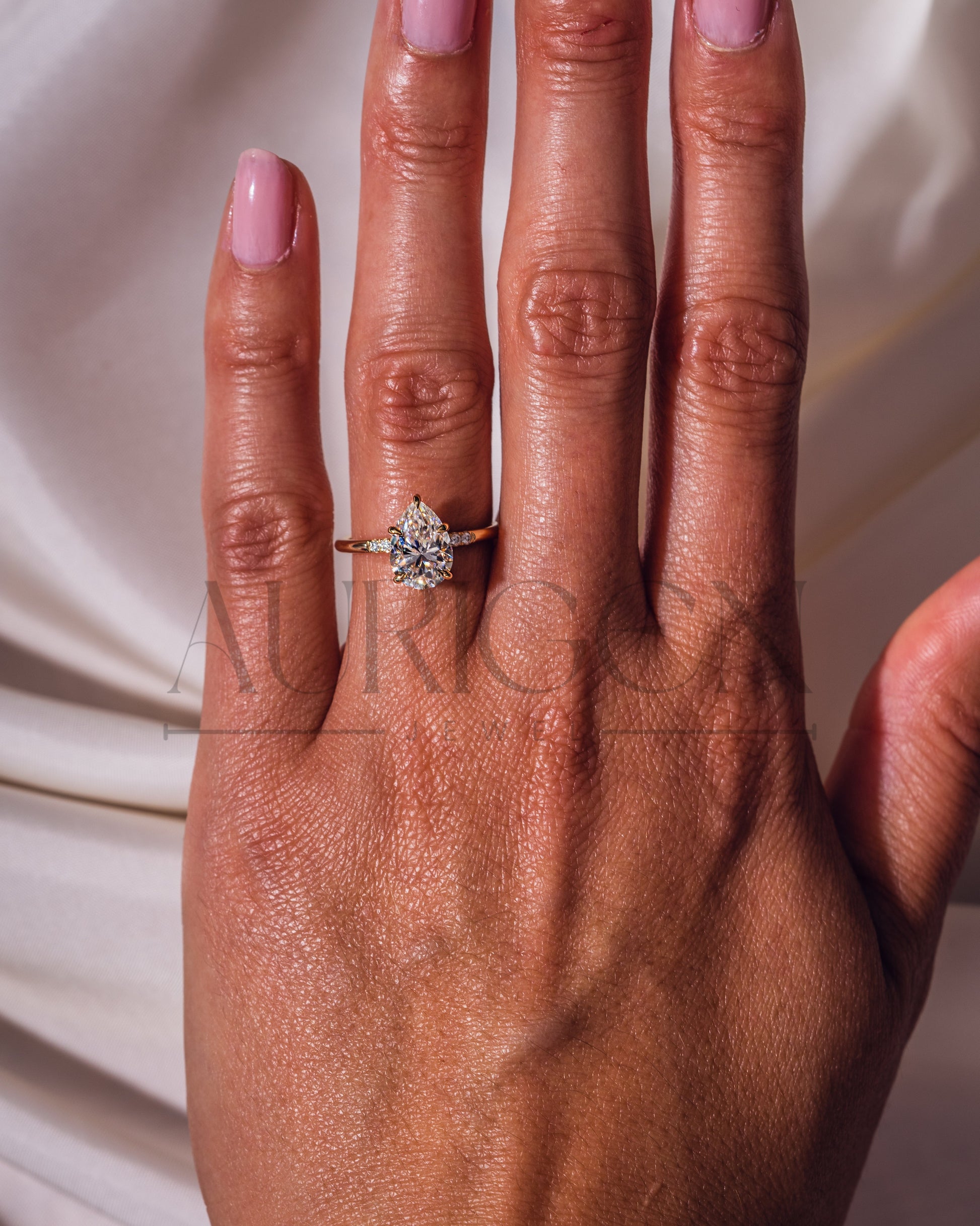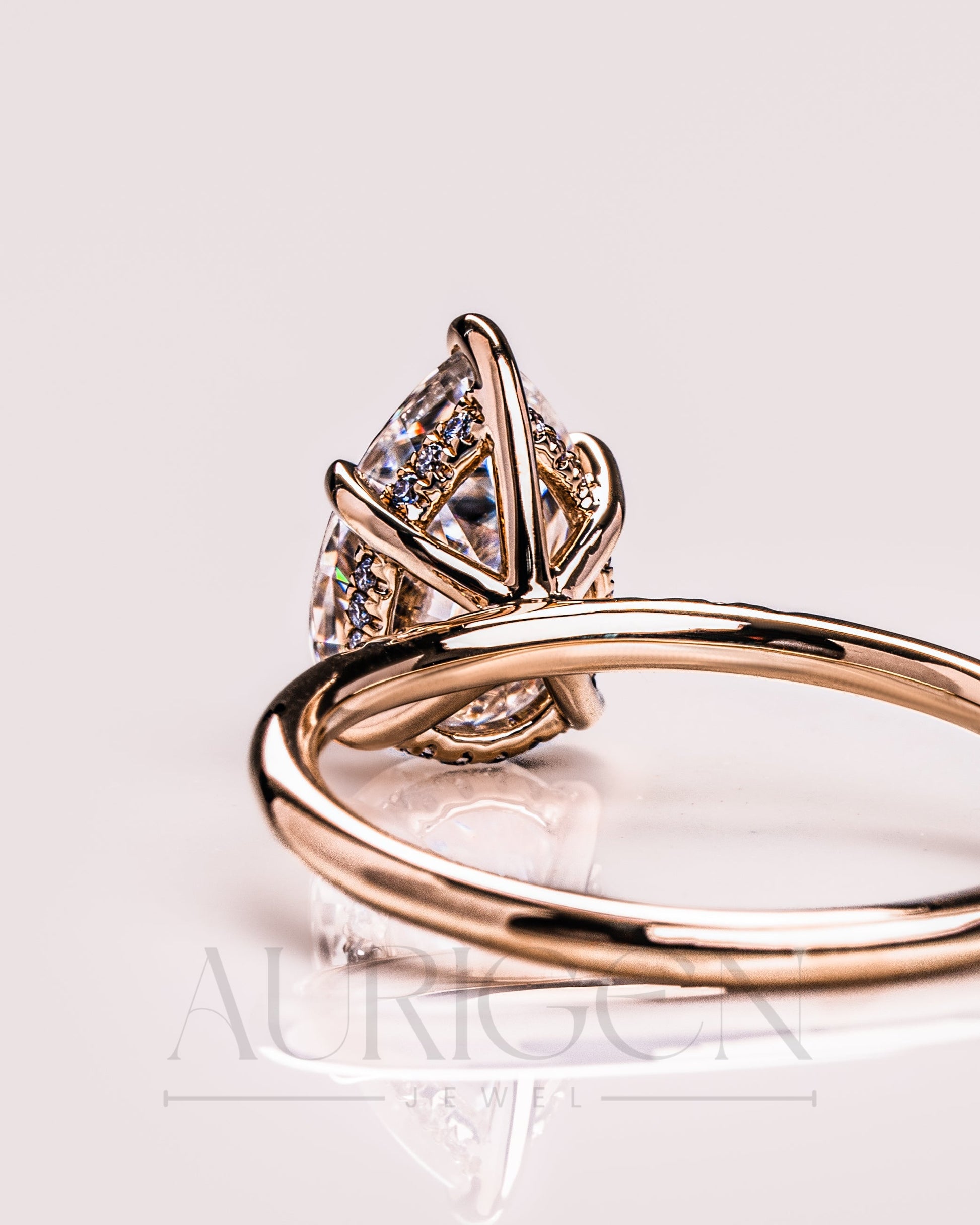 2.5 Ct Pear 5-Prong Moissanite and Leb Diamond Ring Hidden Halo With Side Diamond Ring