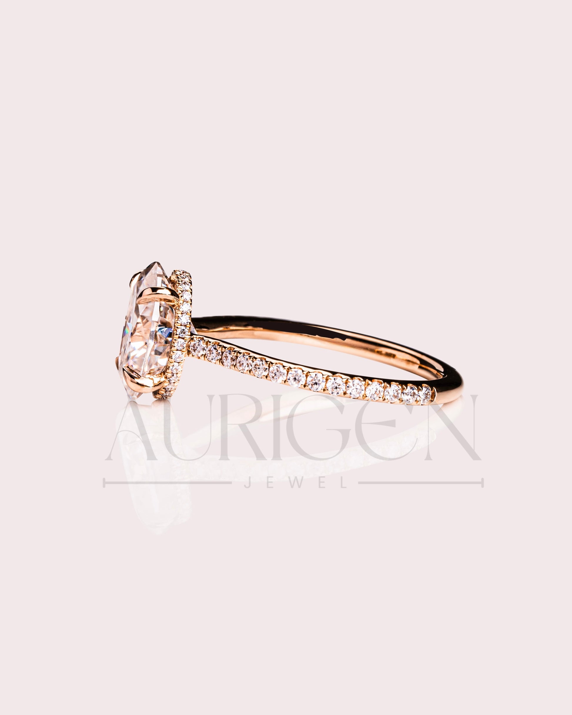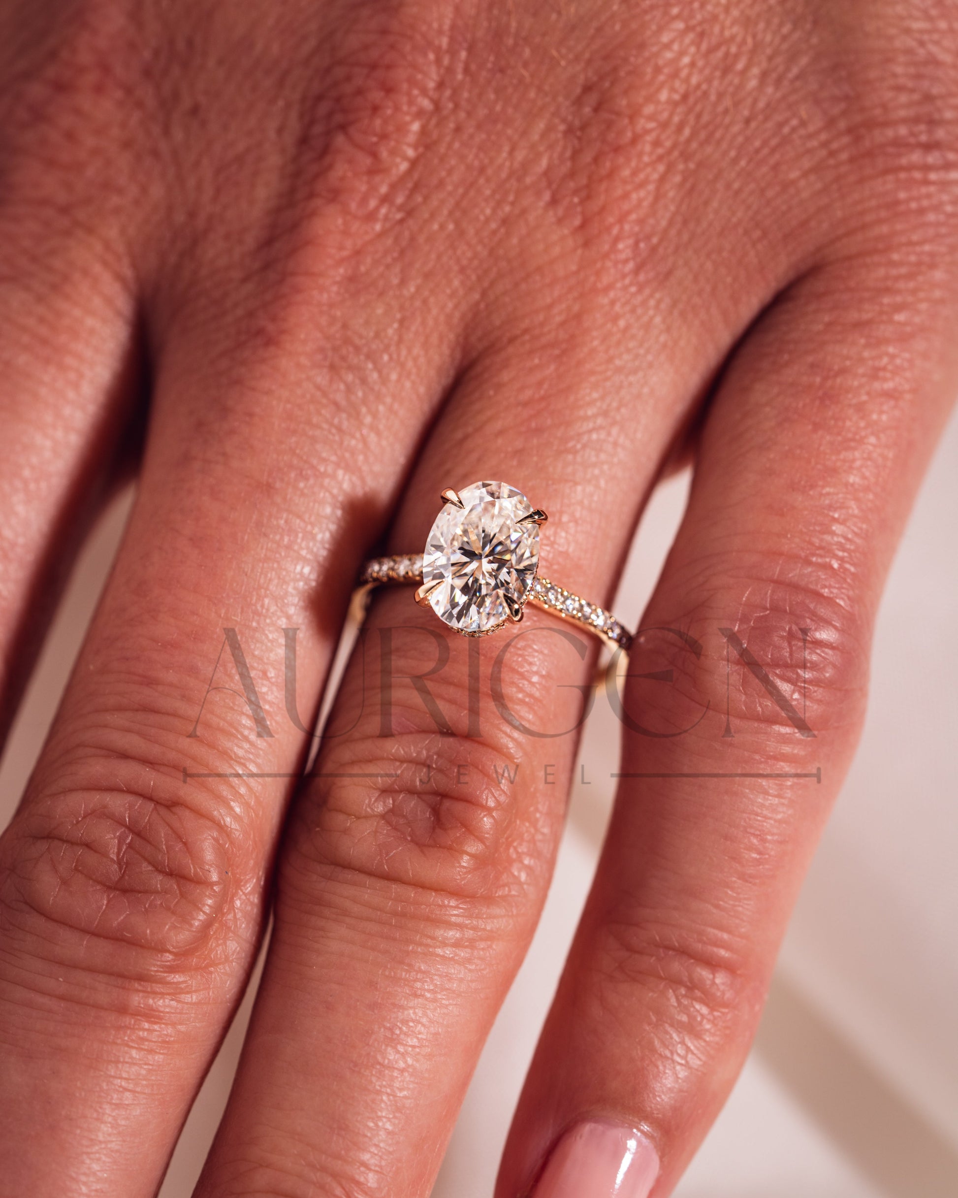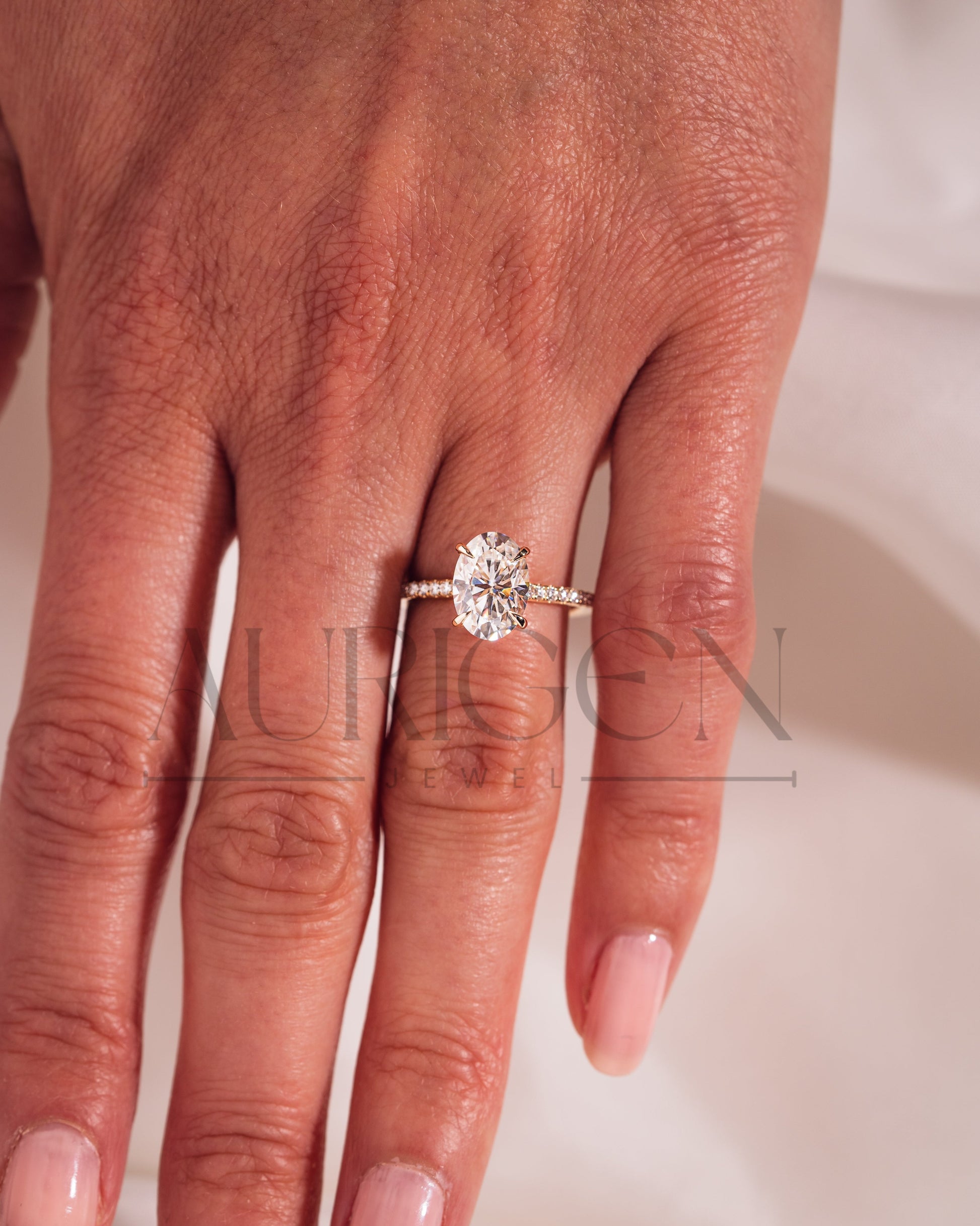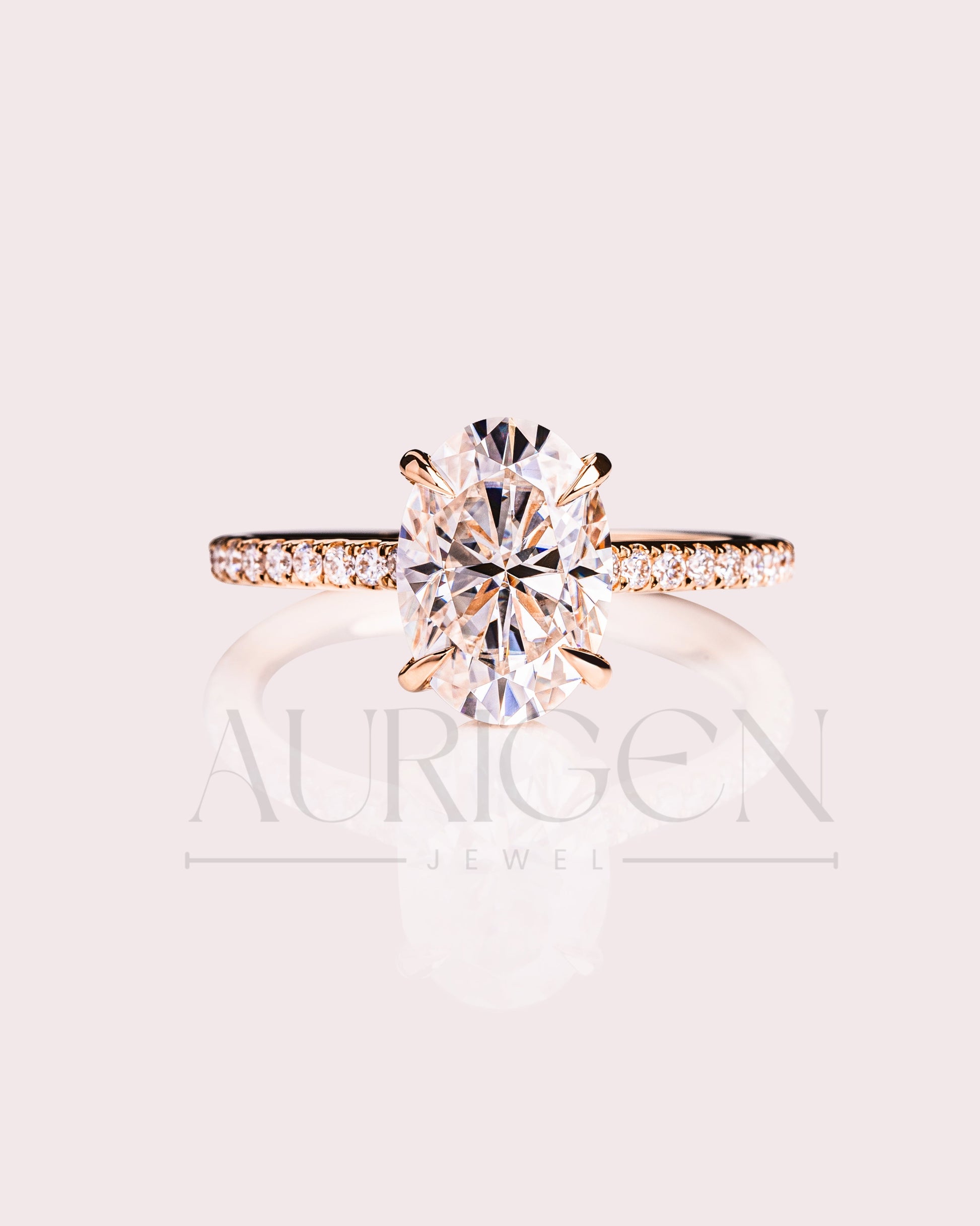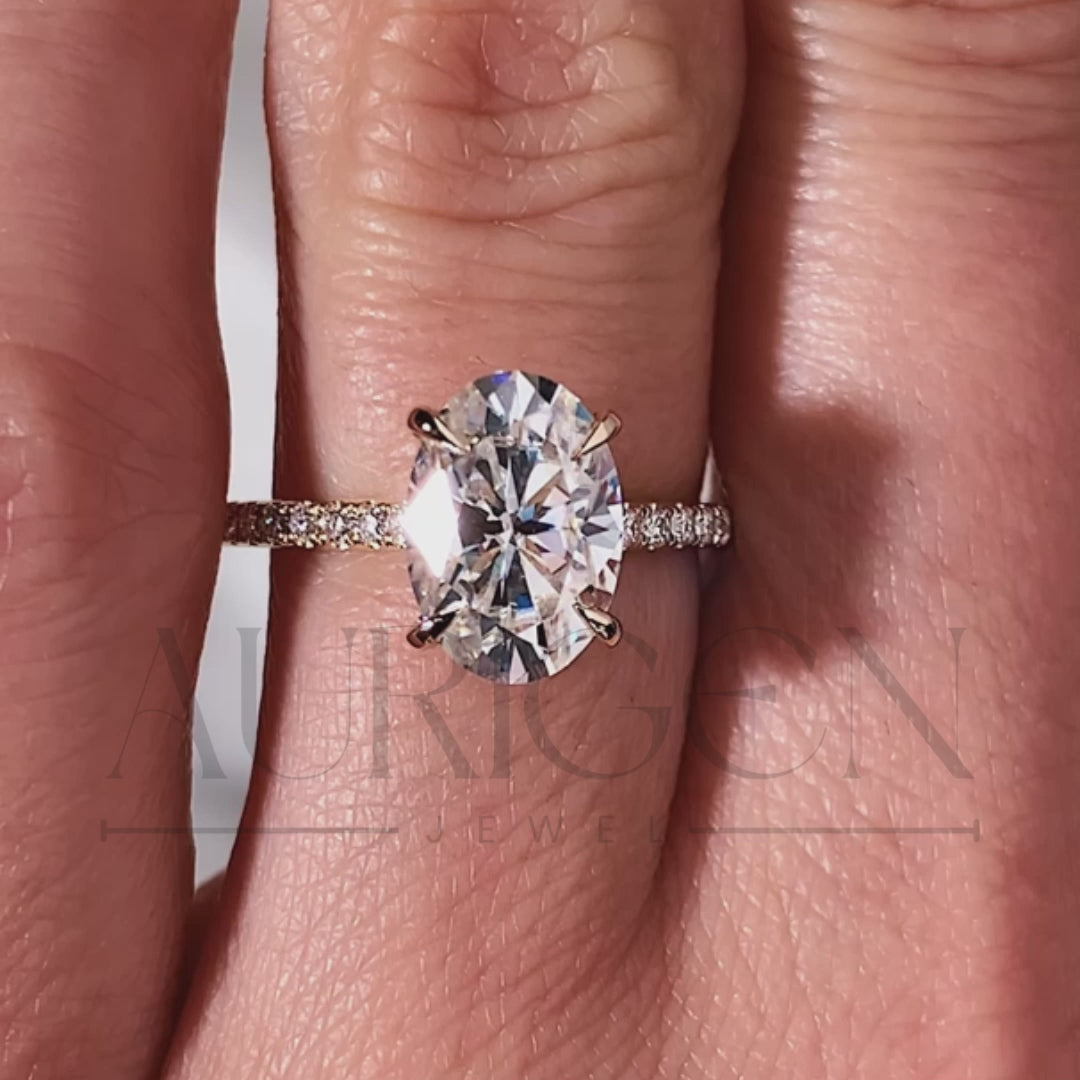 2 Ct Brilliant Oval Moissanite Engagement Ring with Pave Setting Diamond 14K Solid Gold Ring