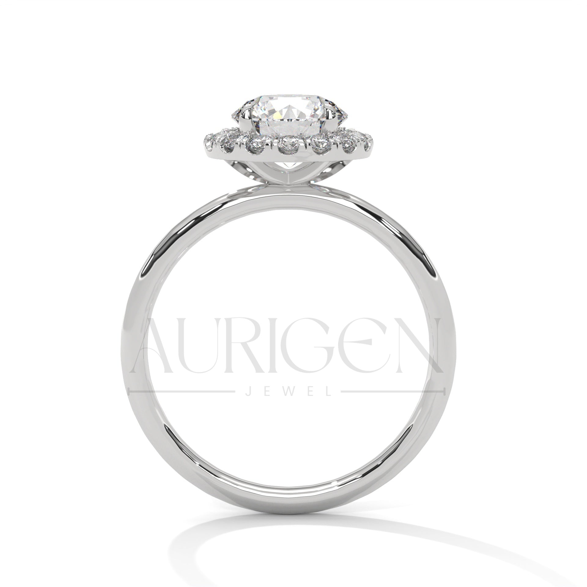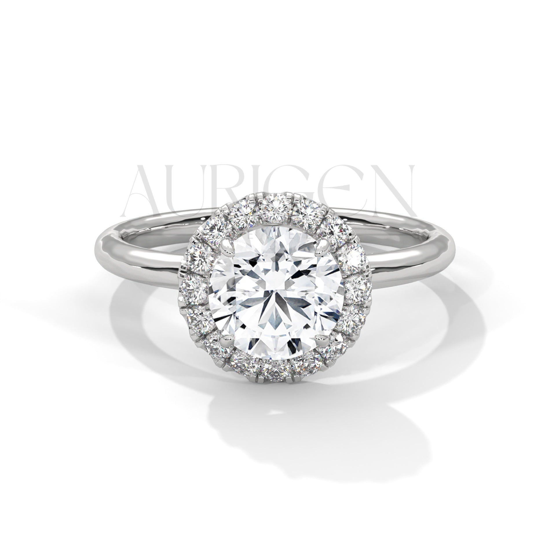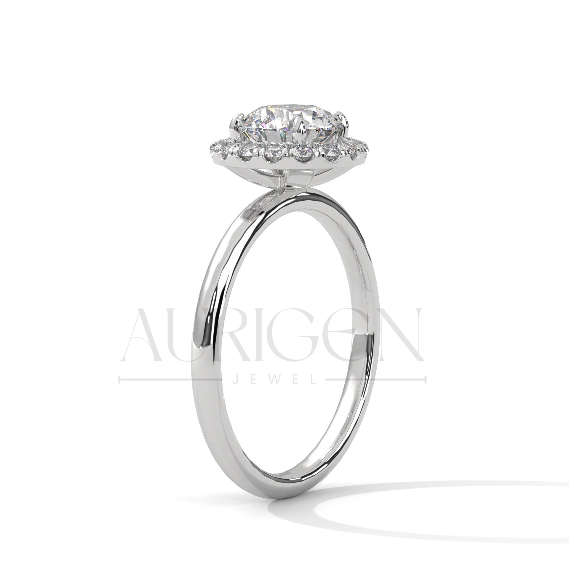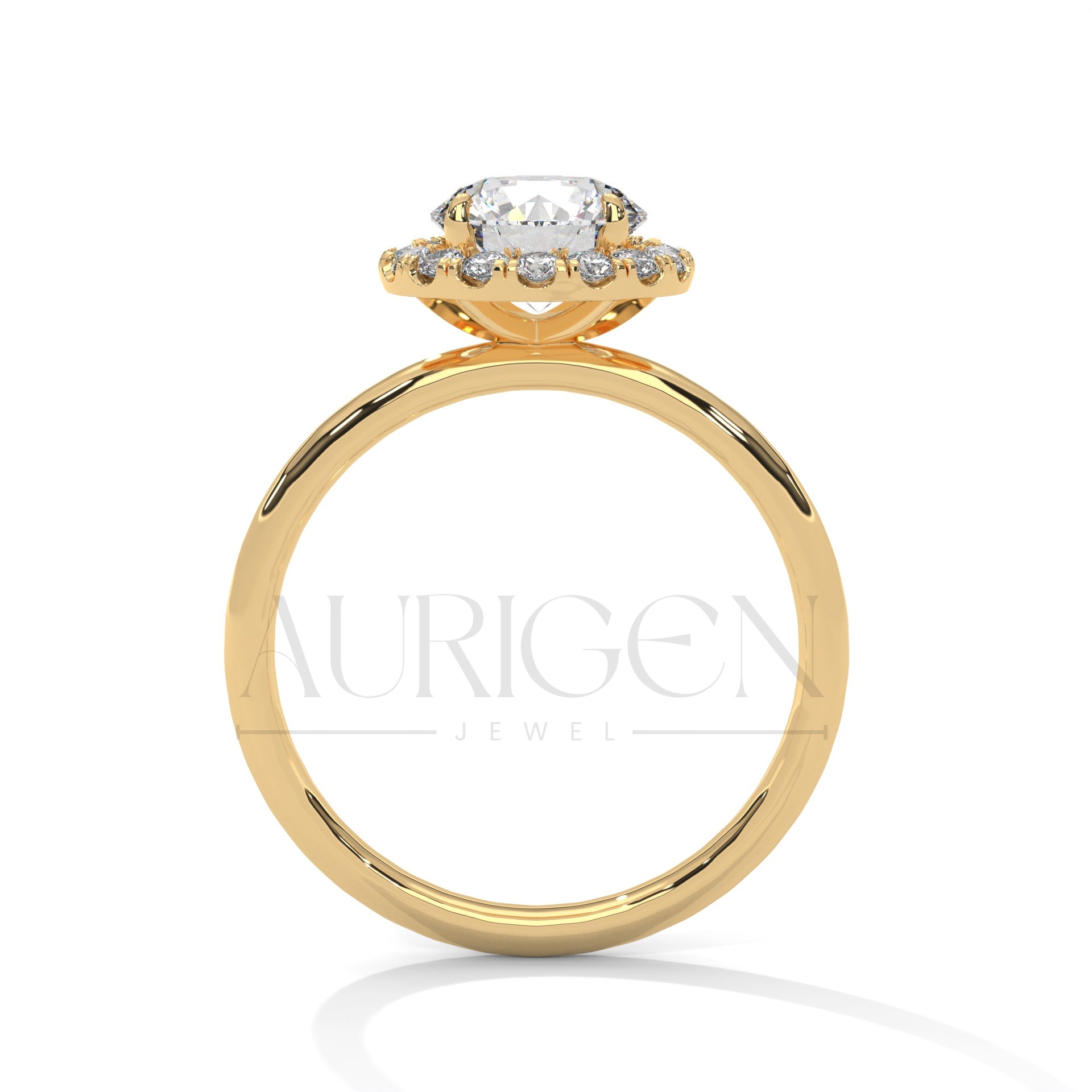 A Beautiful 14K Solid Gold Round Moissanite Diamond Ring Featuring a Unique Halo