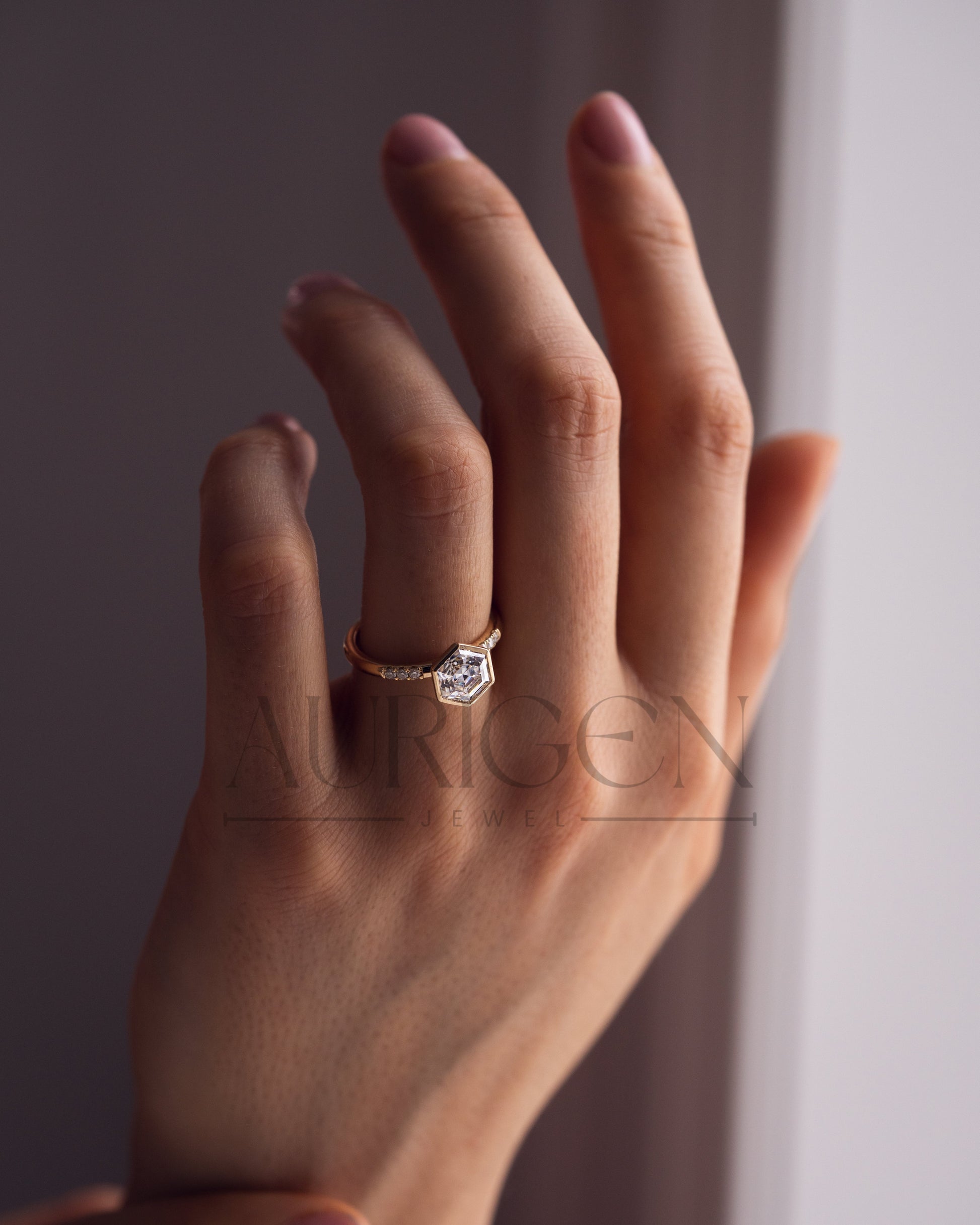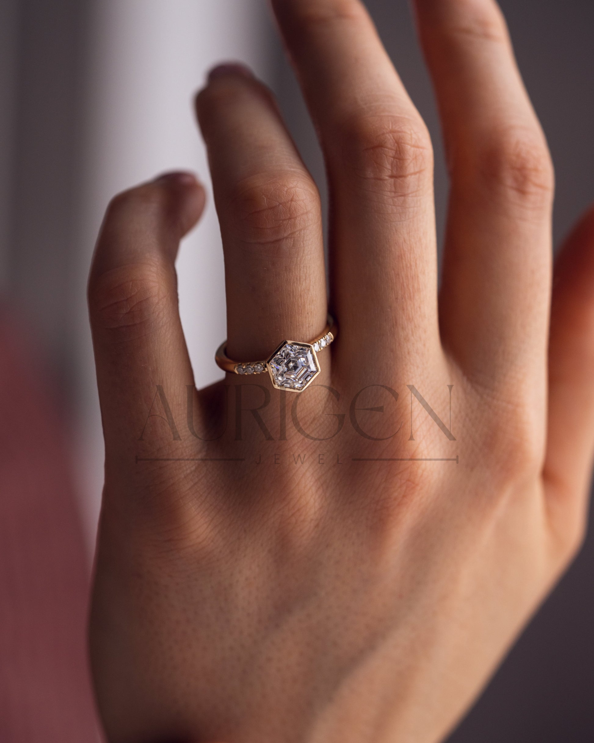 ✦ The Ring Shown in the Picture Holds a Beautiful Hexagon Cut Diamond Ring.