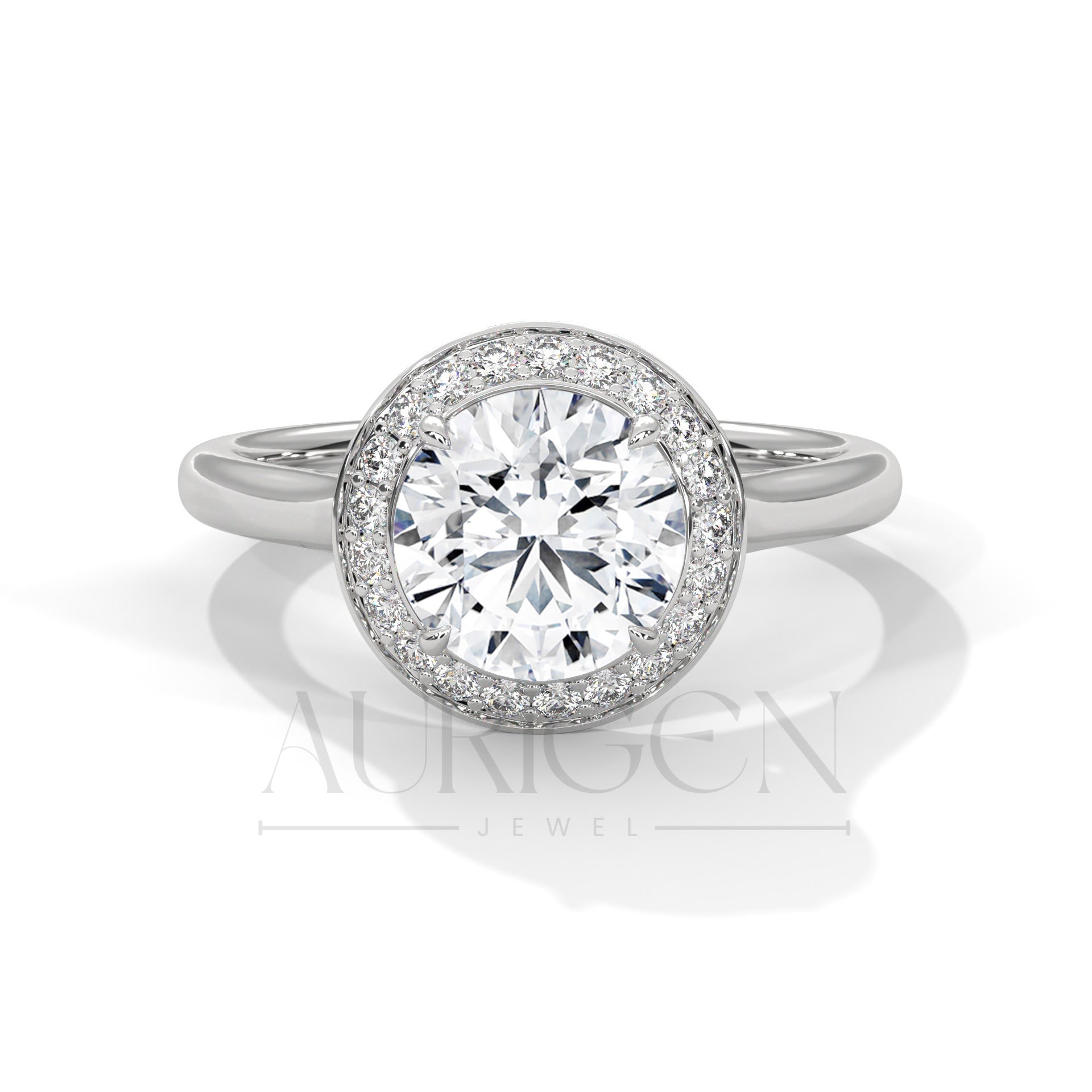 Dazzling 2.0 CT Round Cut Halo Diamond Engagement Ring in 14K Solid Gold
