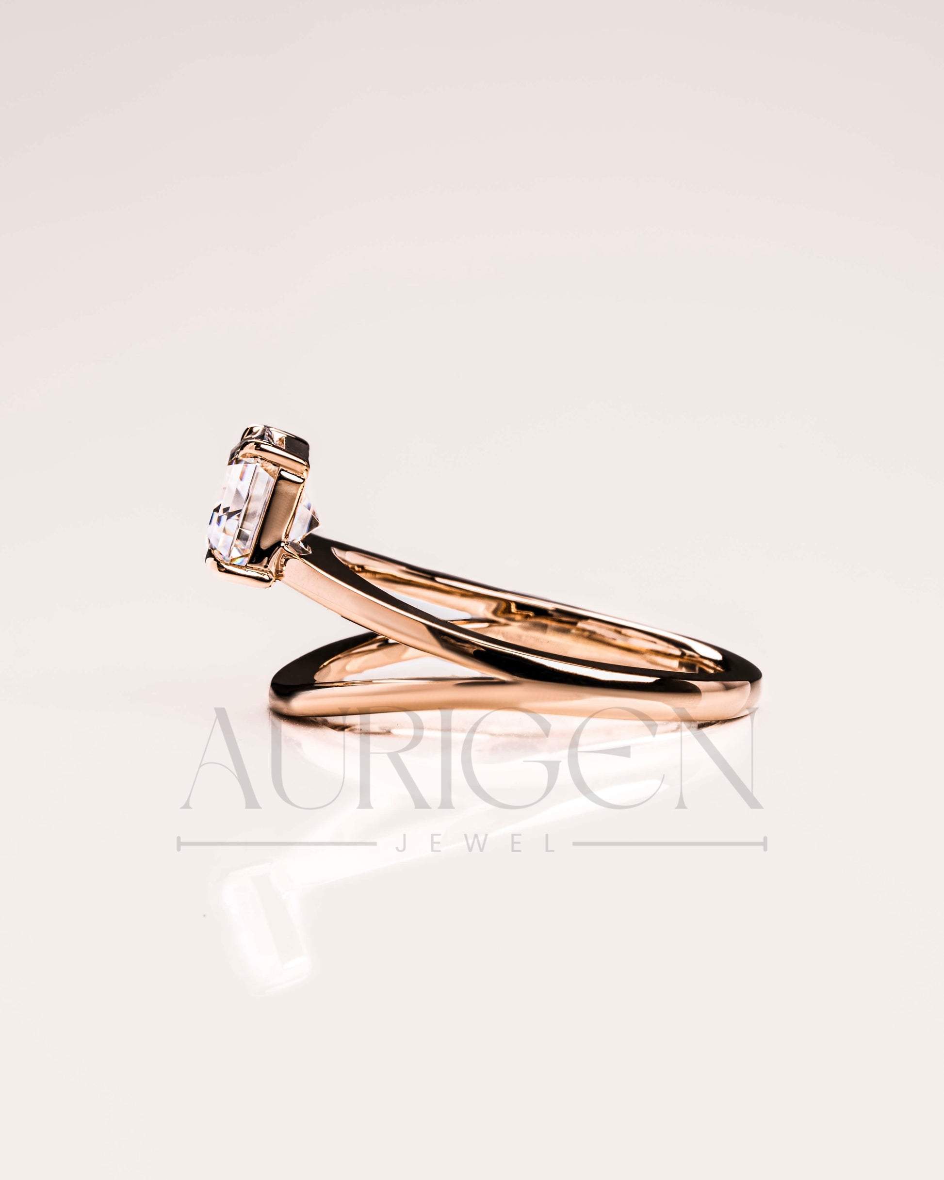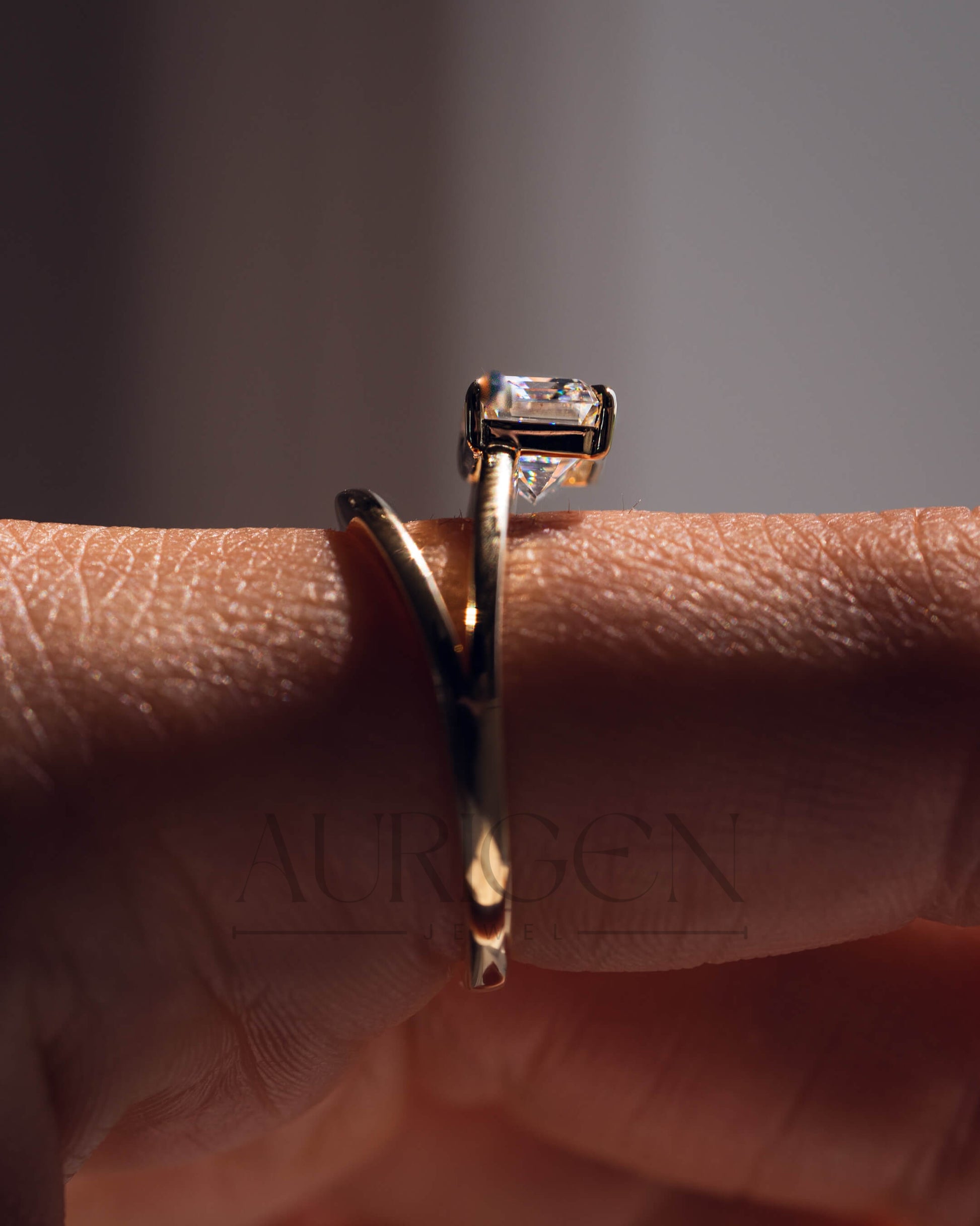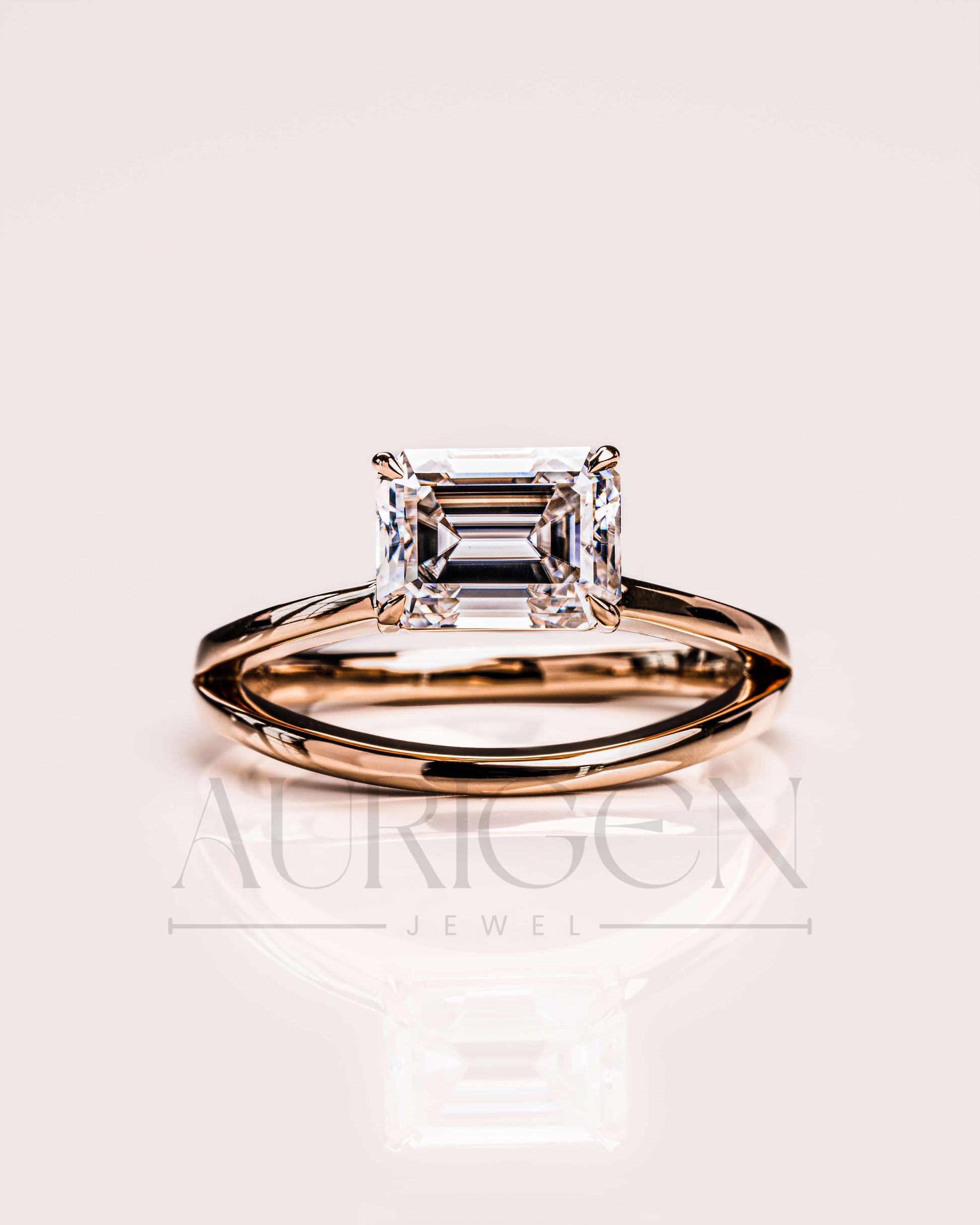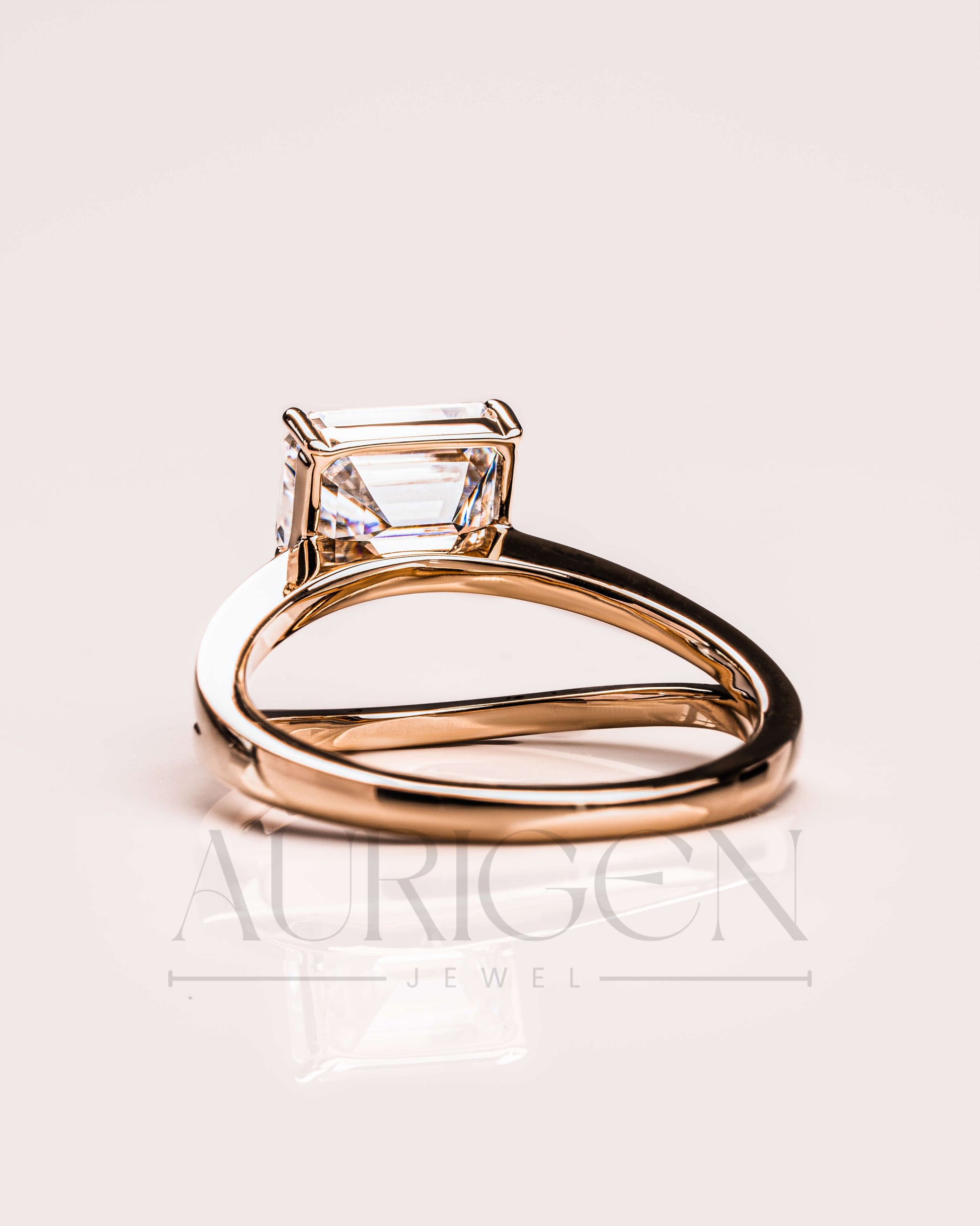 East-West Emerald Cut Solitaire Ring in Solid Gold Ring-Moissanite and Lab Grown Diamond