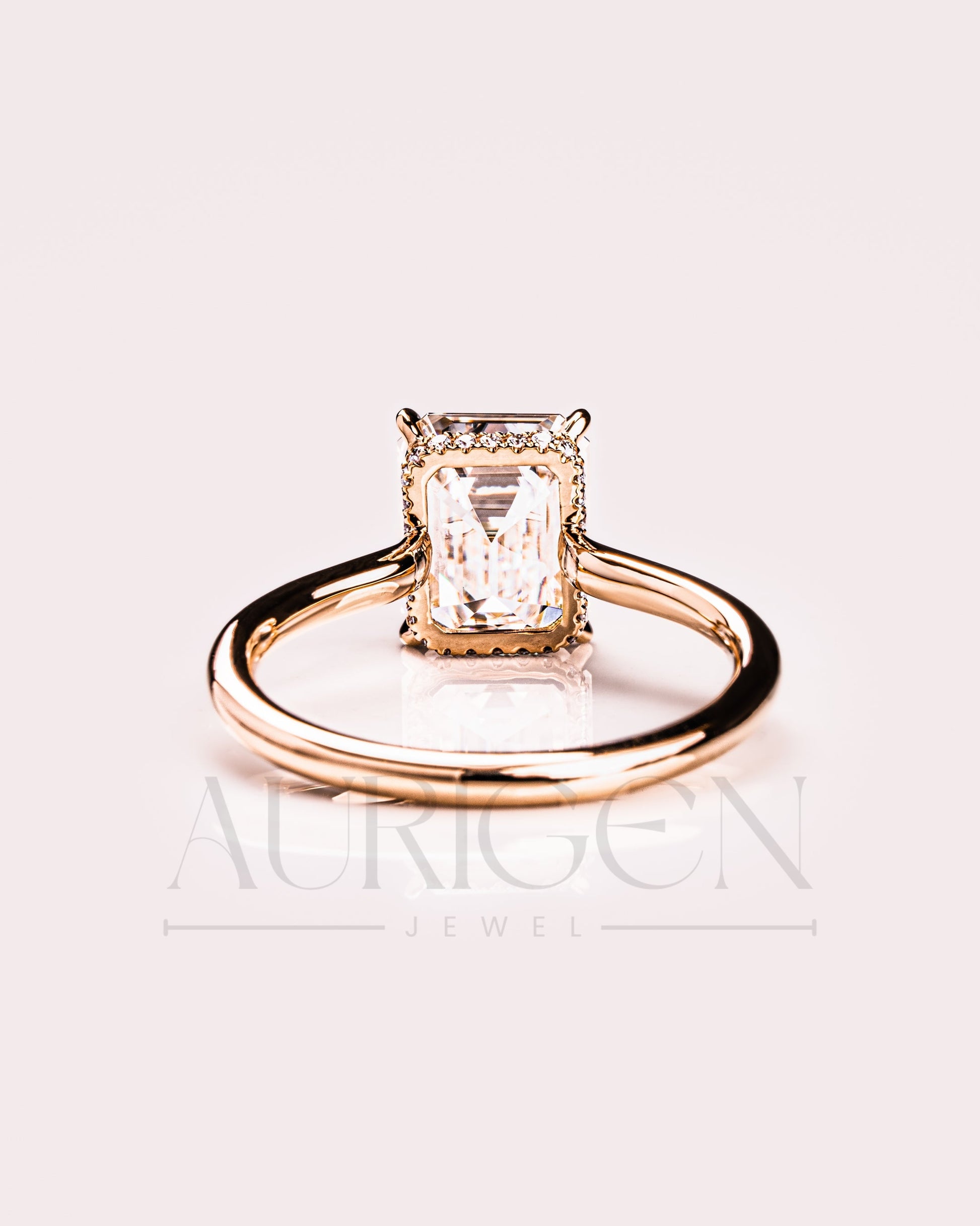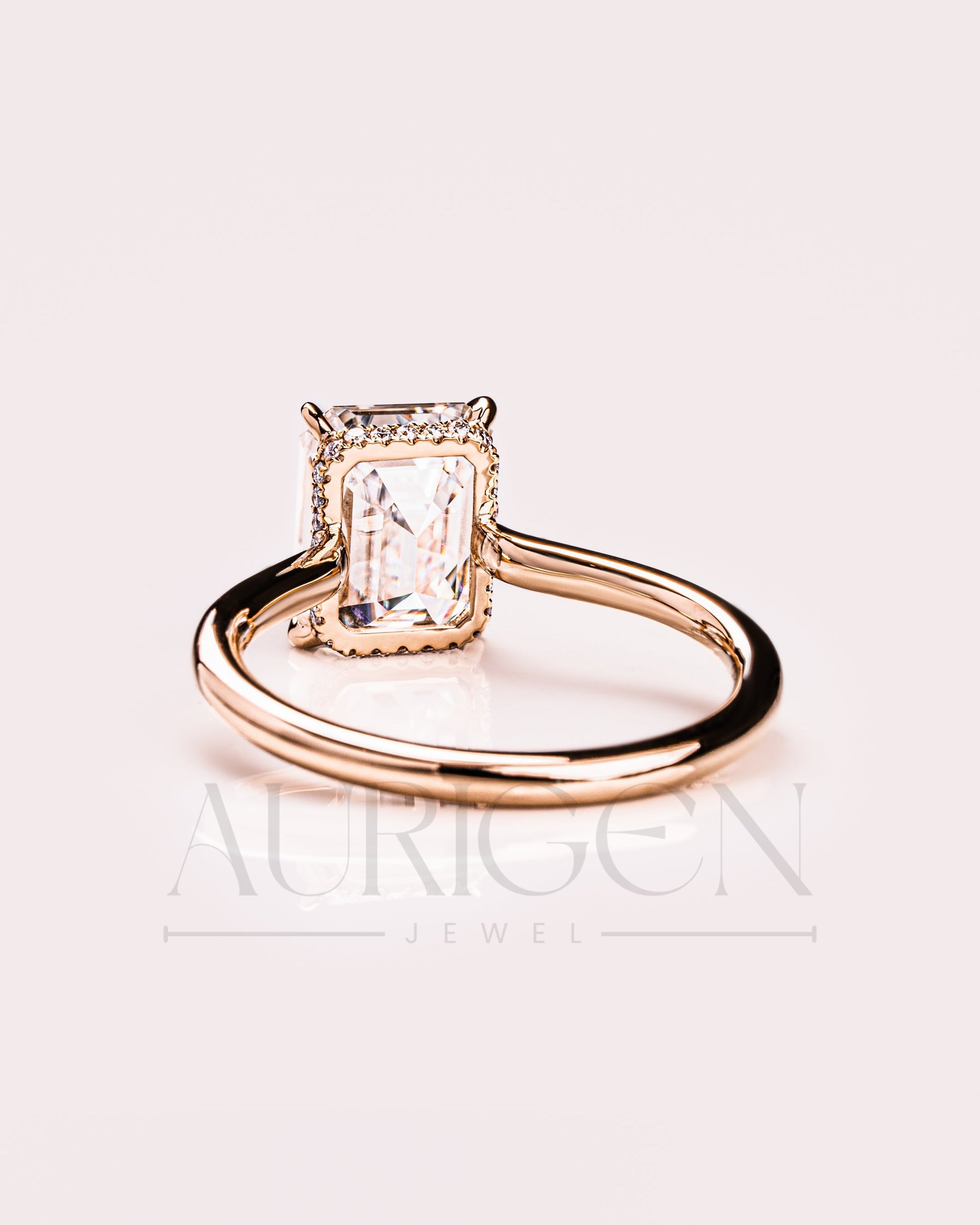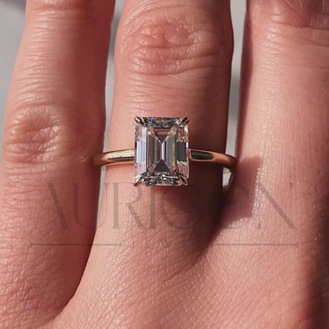 ✦ The Ring Shown in the Picture Holds a Beautiful Emerald Cut Moissanite.