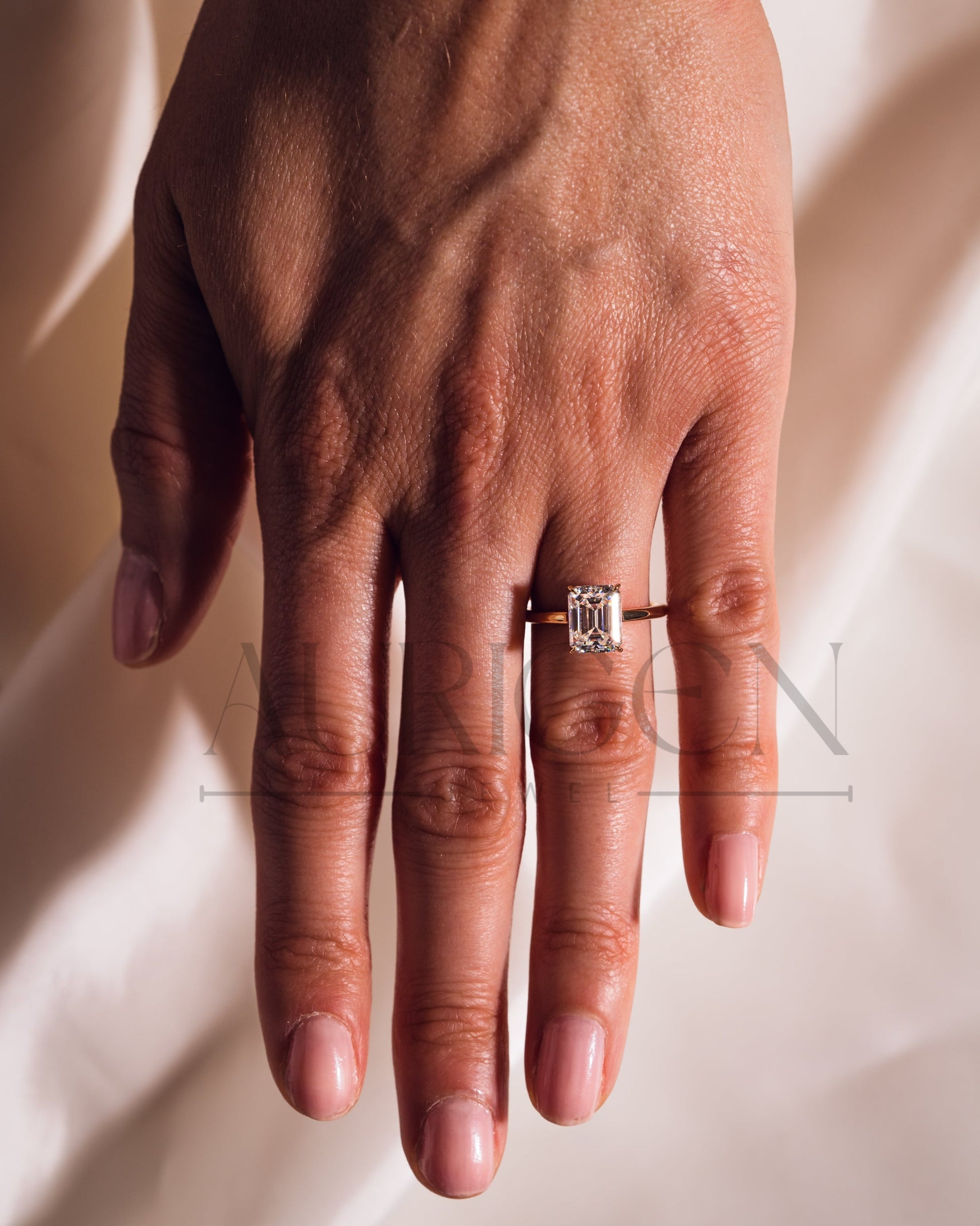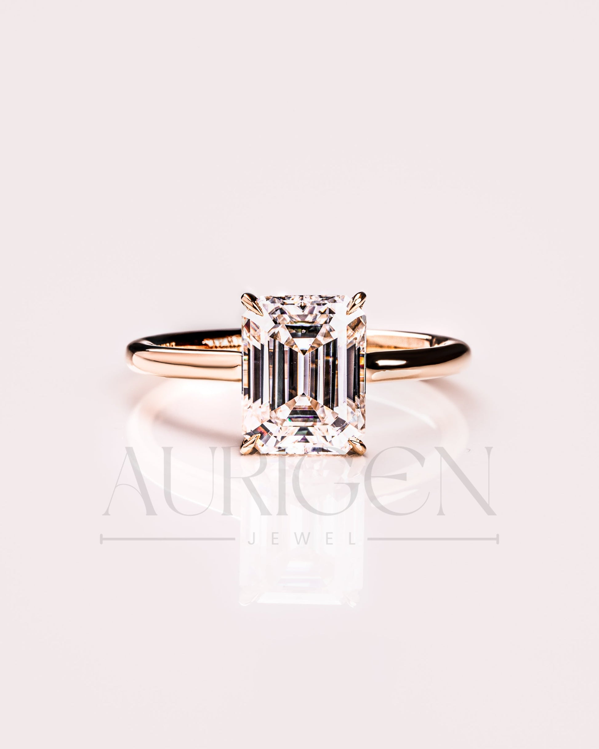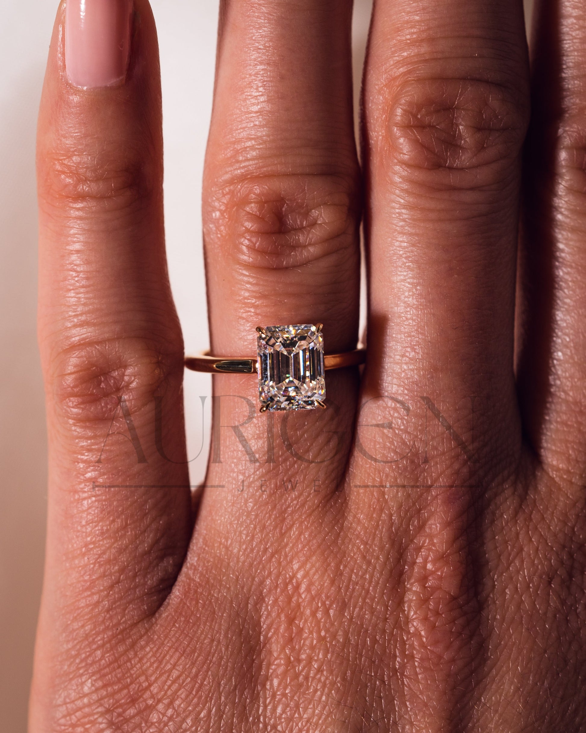 ✦ The Ring Shown in the Picture Holds a Beautiful Emerald Cut Moissanite.