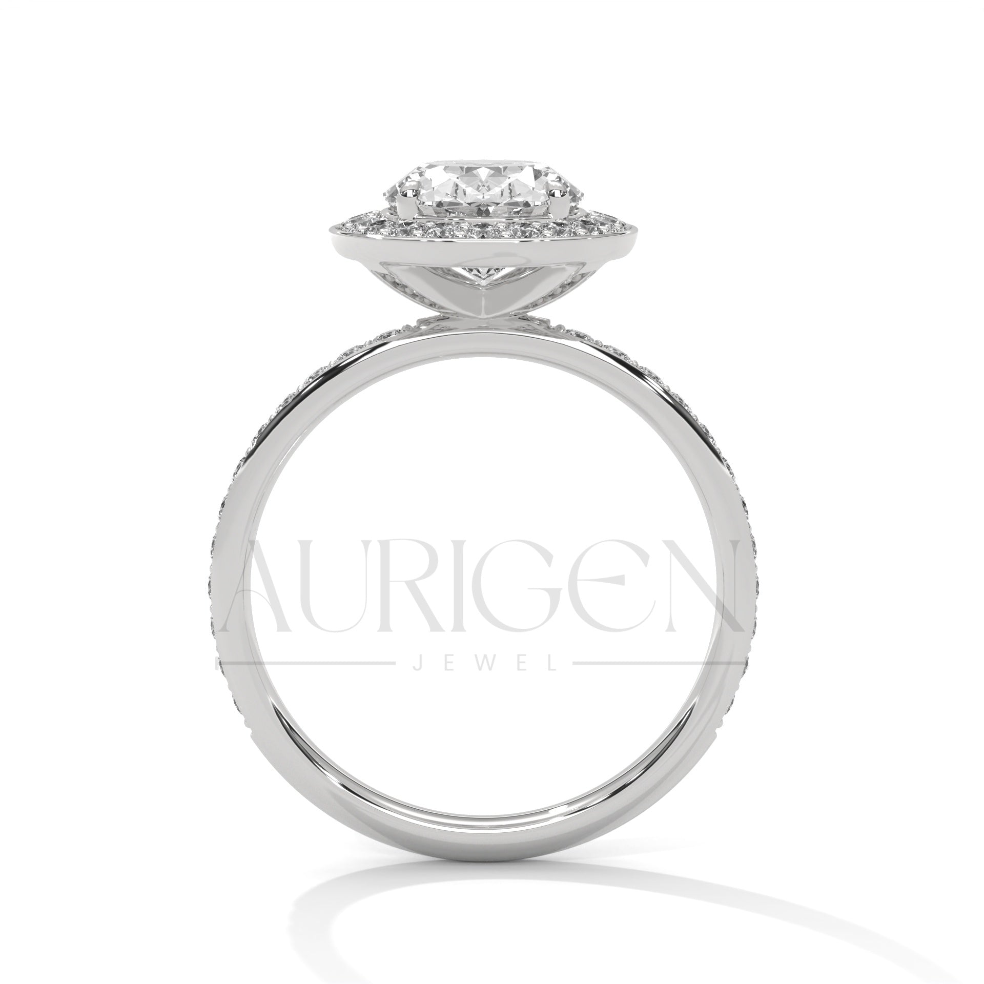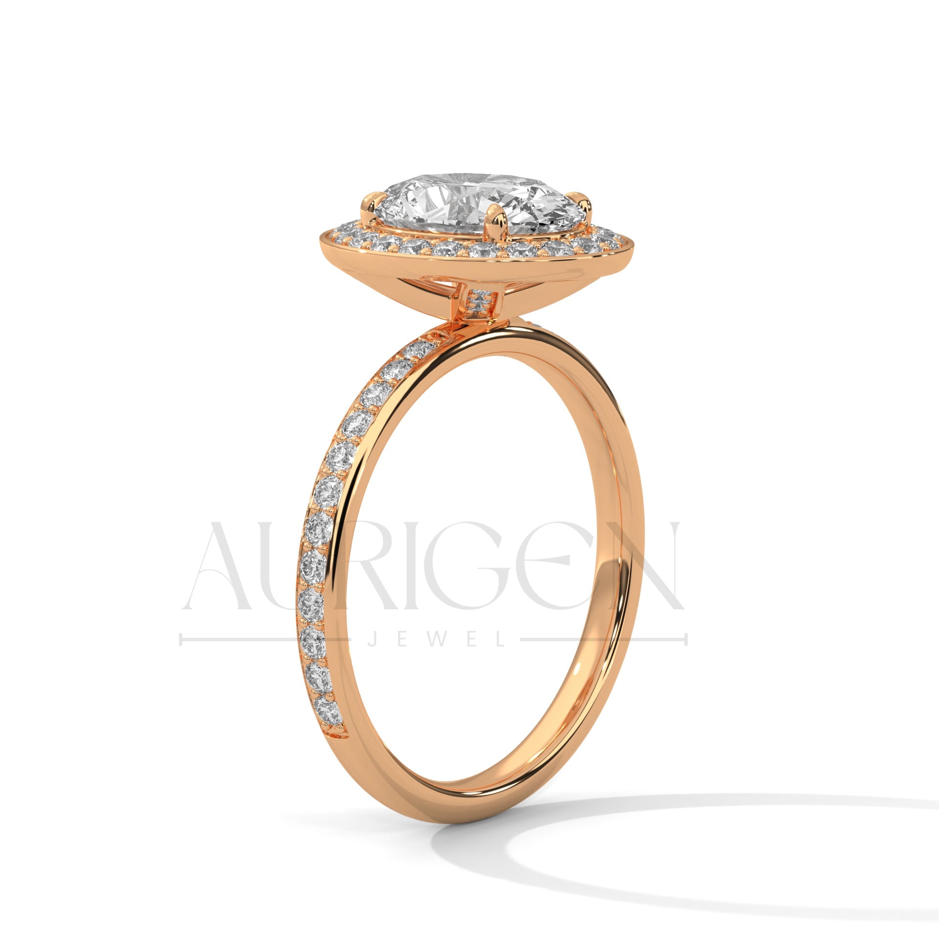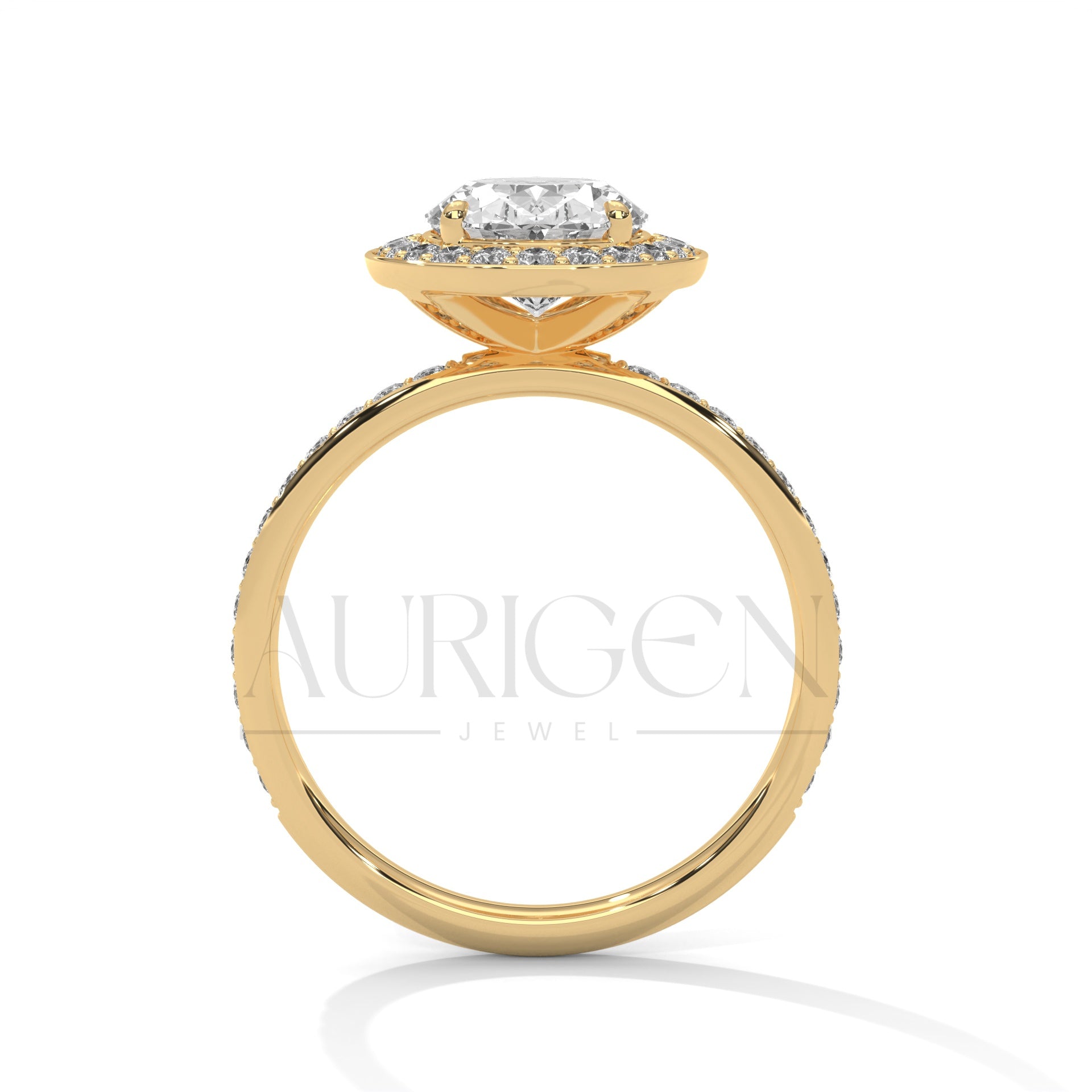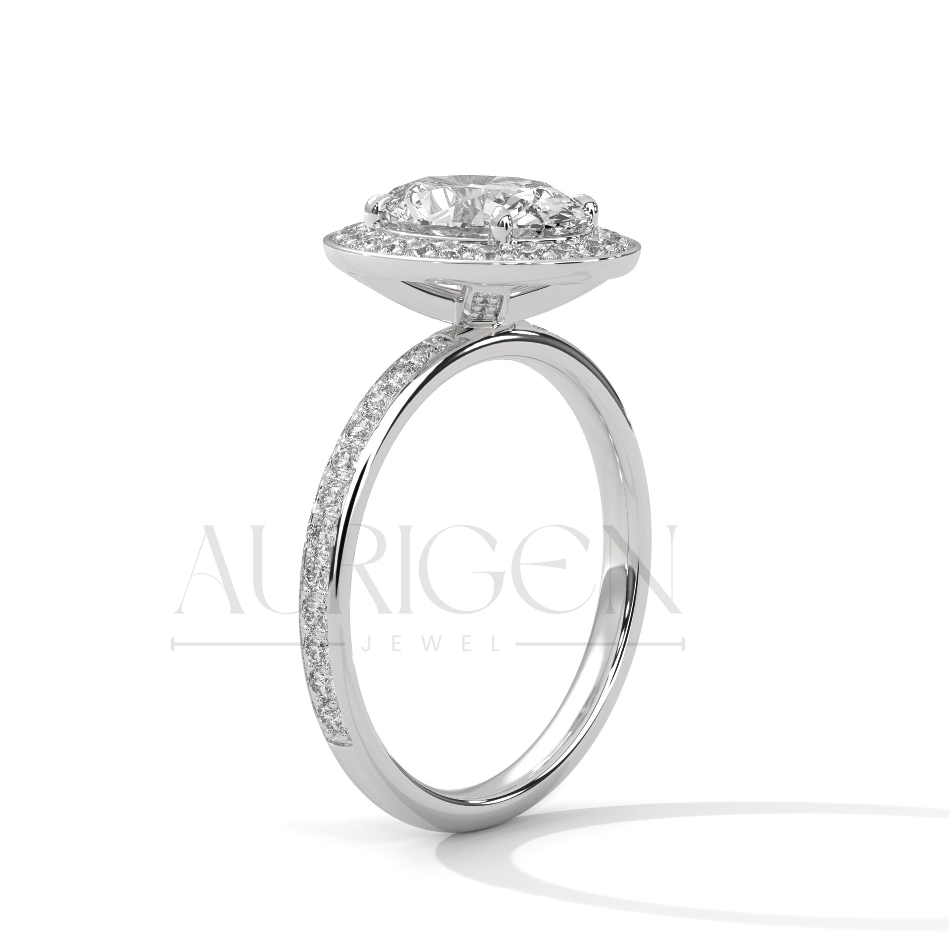 Oval Cut Diamond Halo Engagement Ring with Pave Band in 14K Solid Gold