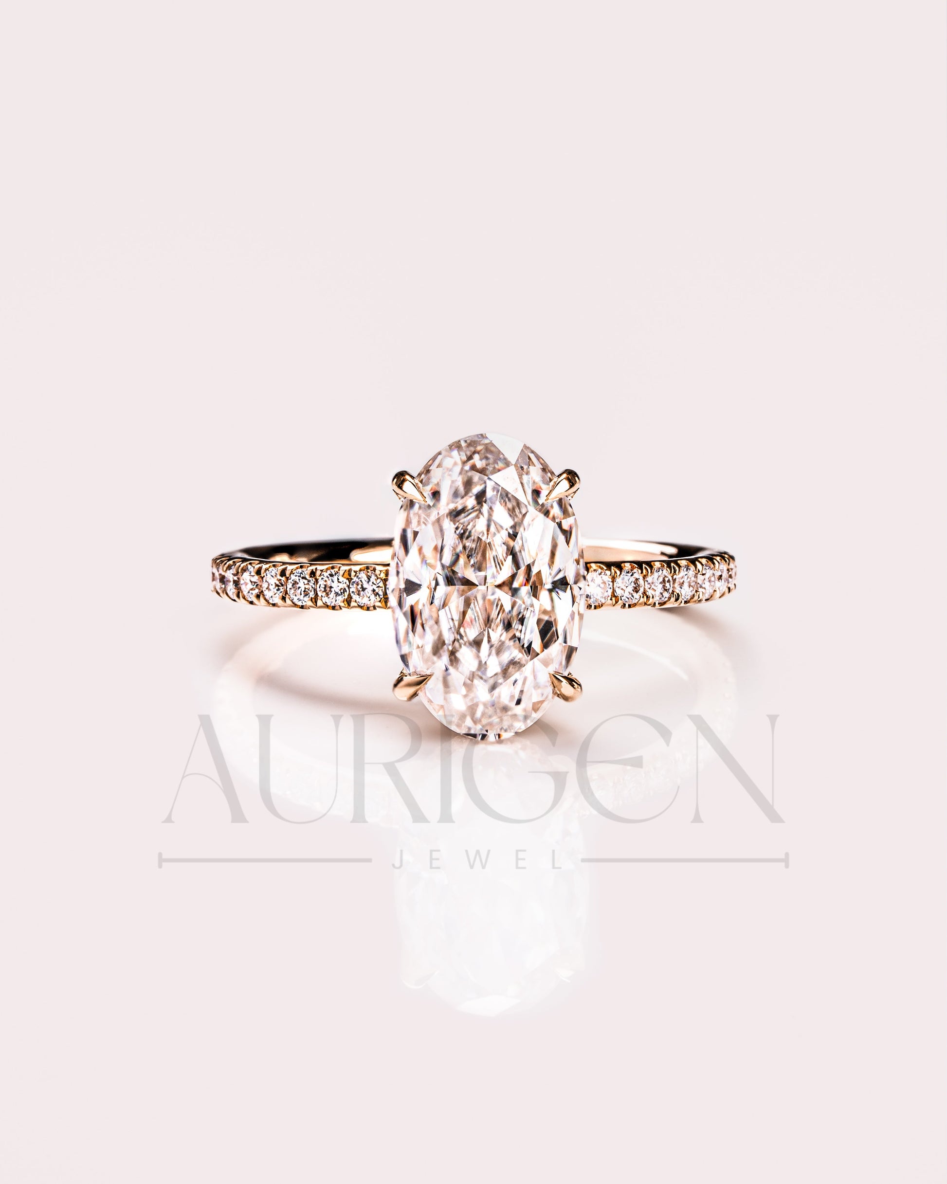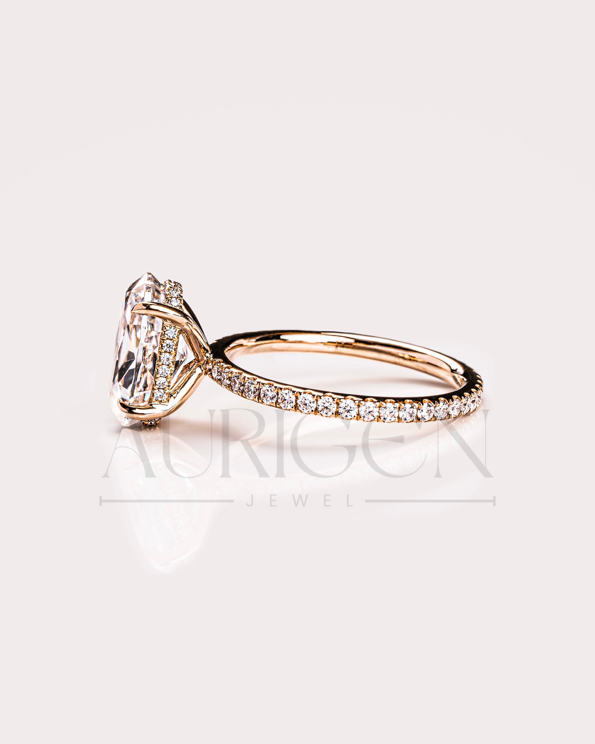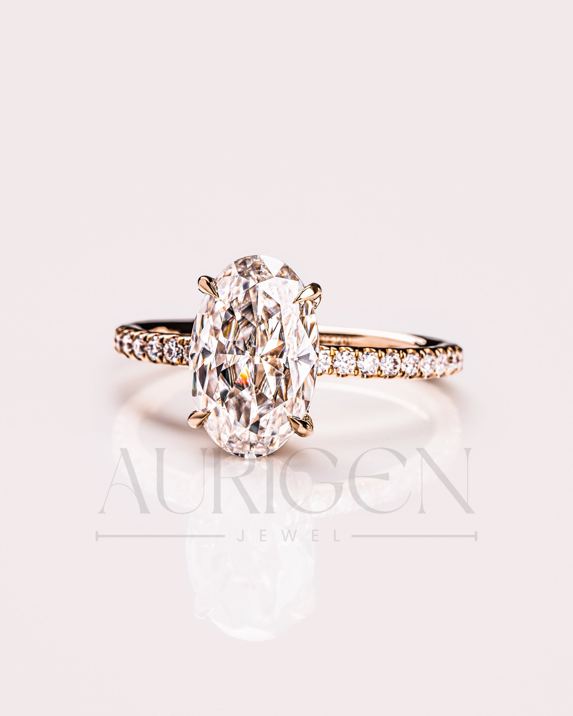 Oval Moissanite & Leb Diamond Ring Sparkling Full Pave Band & Hidden Halo Diamond Ring
