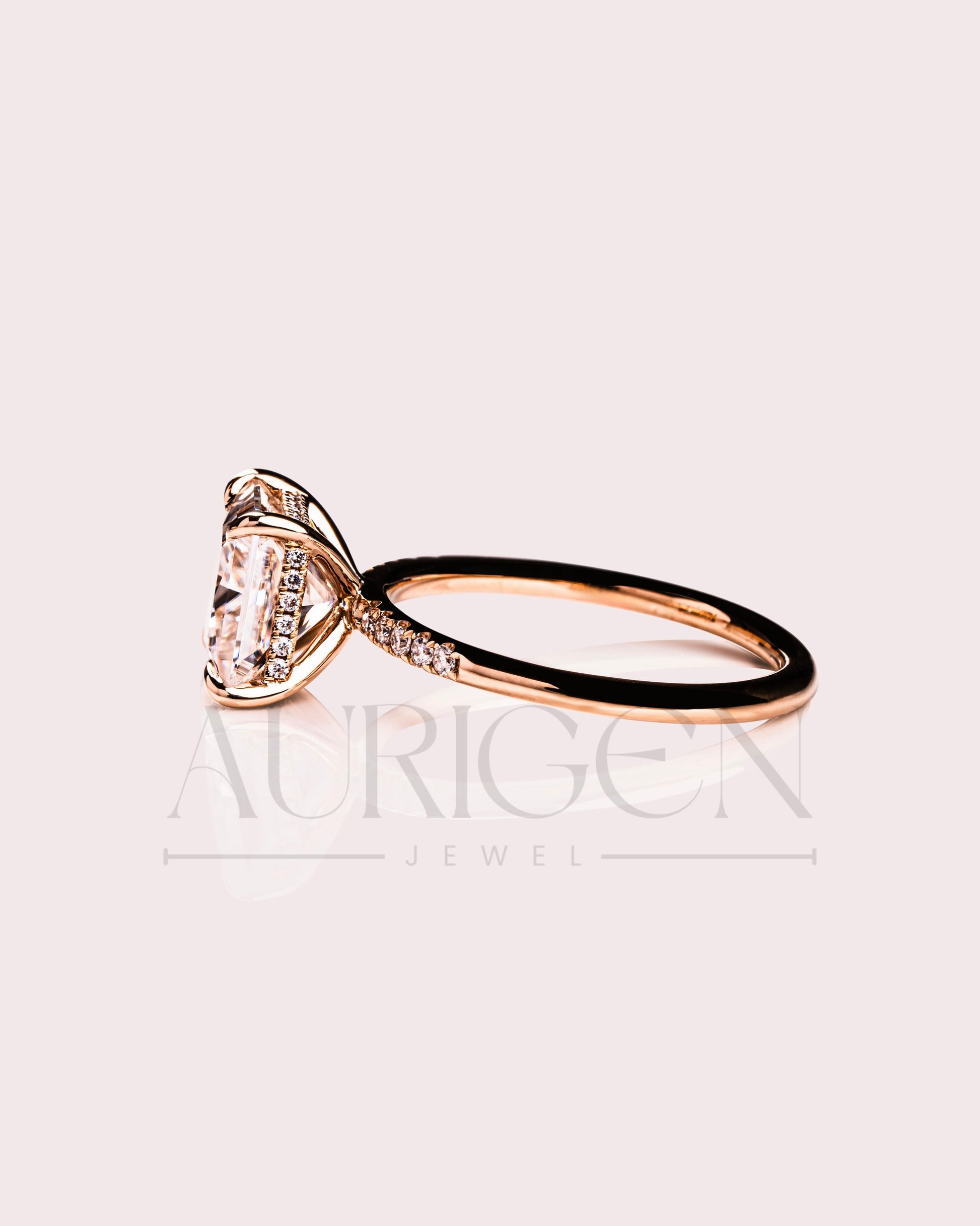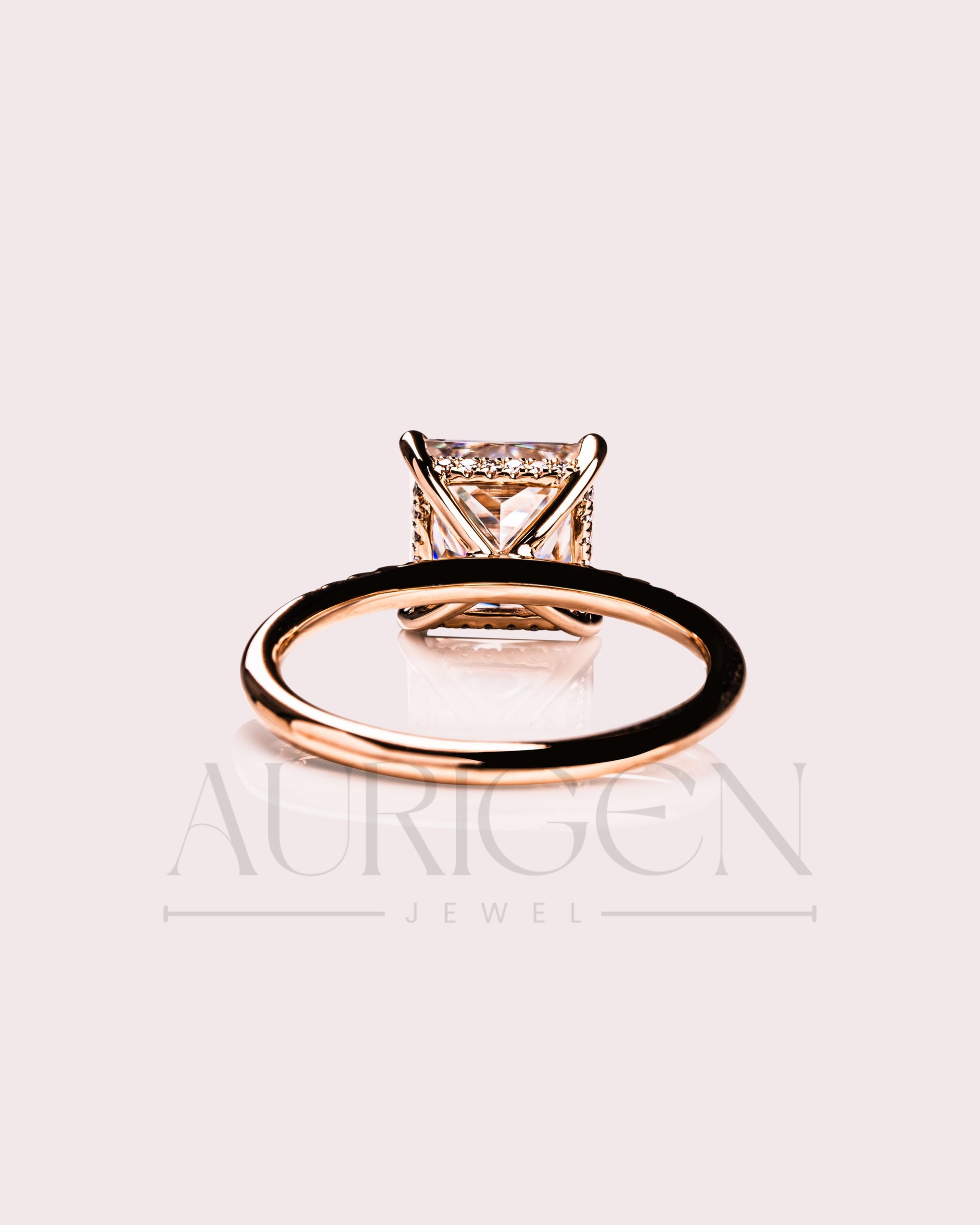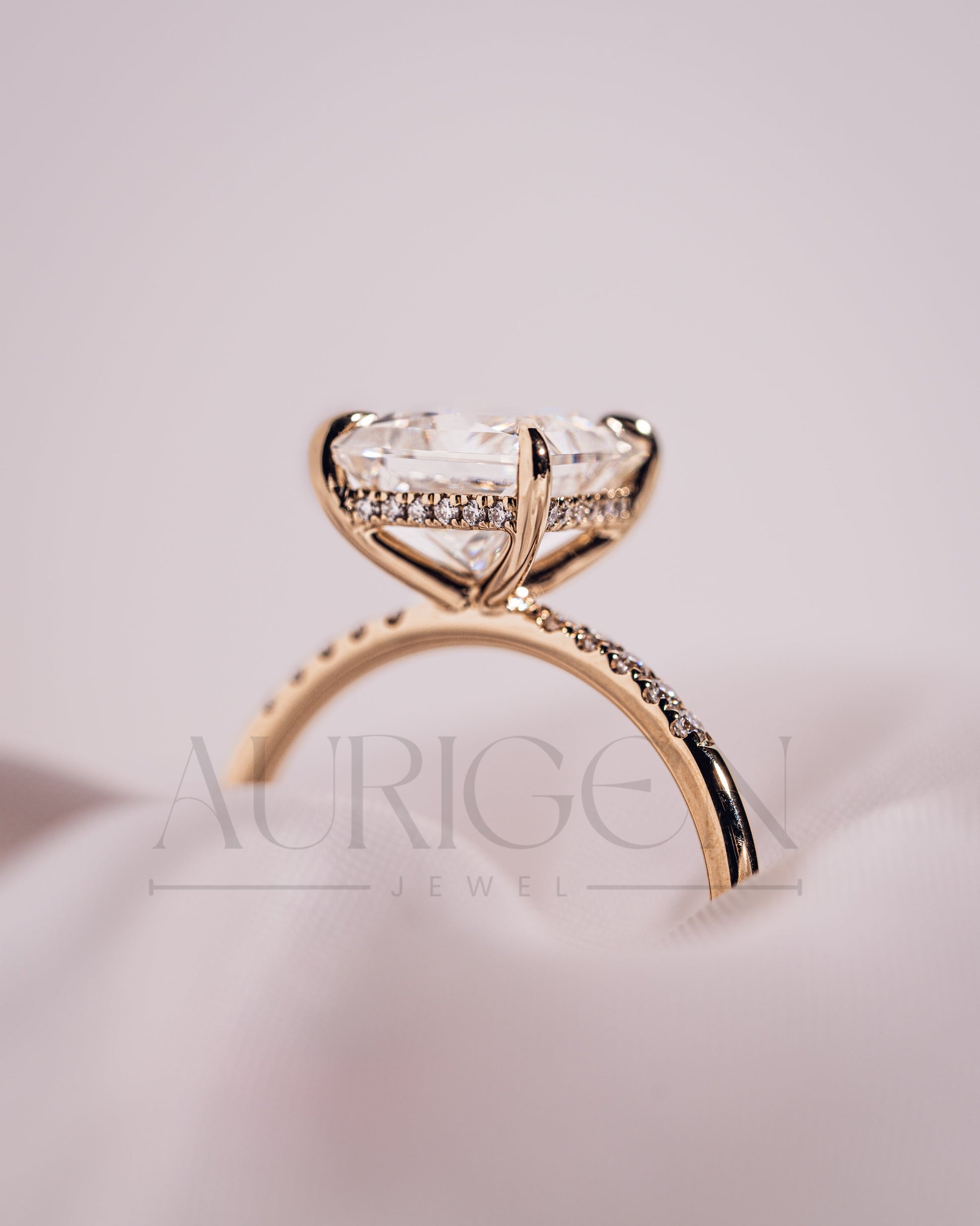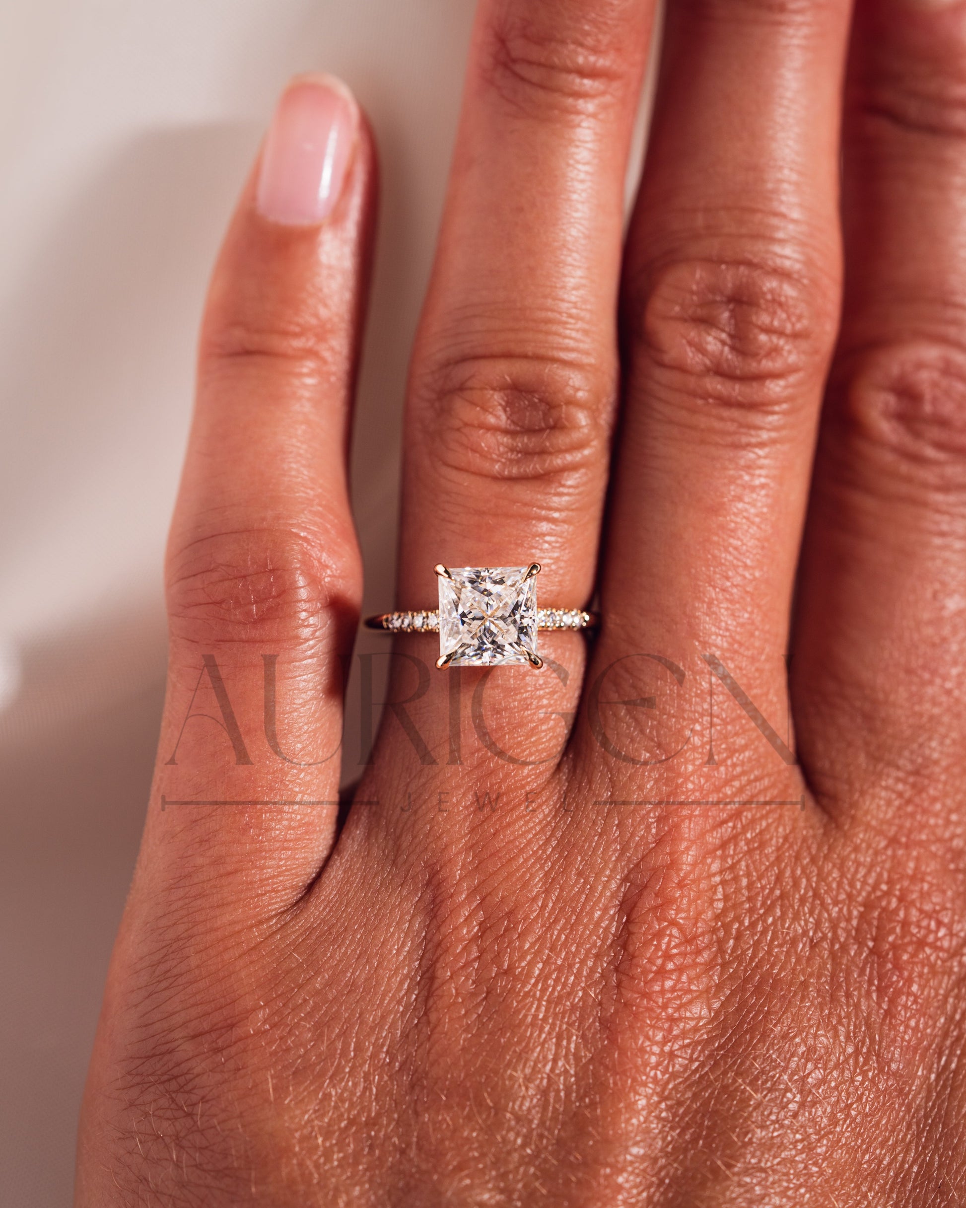 Princess Cut Moissanite & Leb Grown Engagement Ring with Hidden Halo and Side Diamond Ring