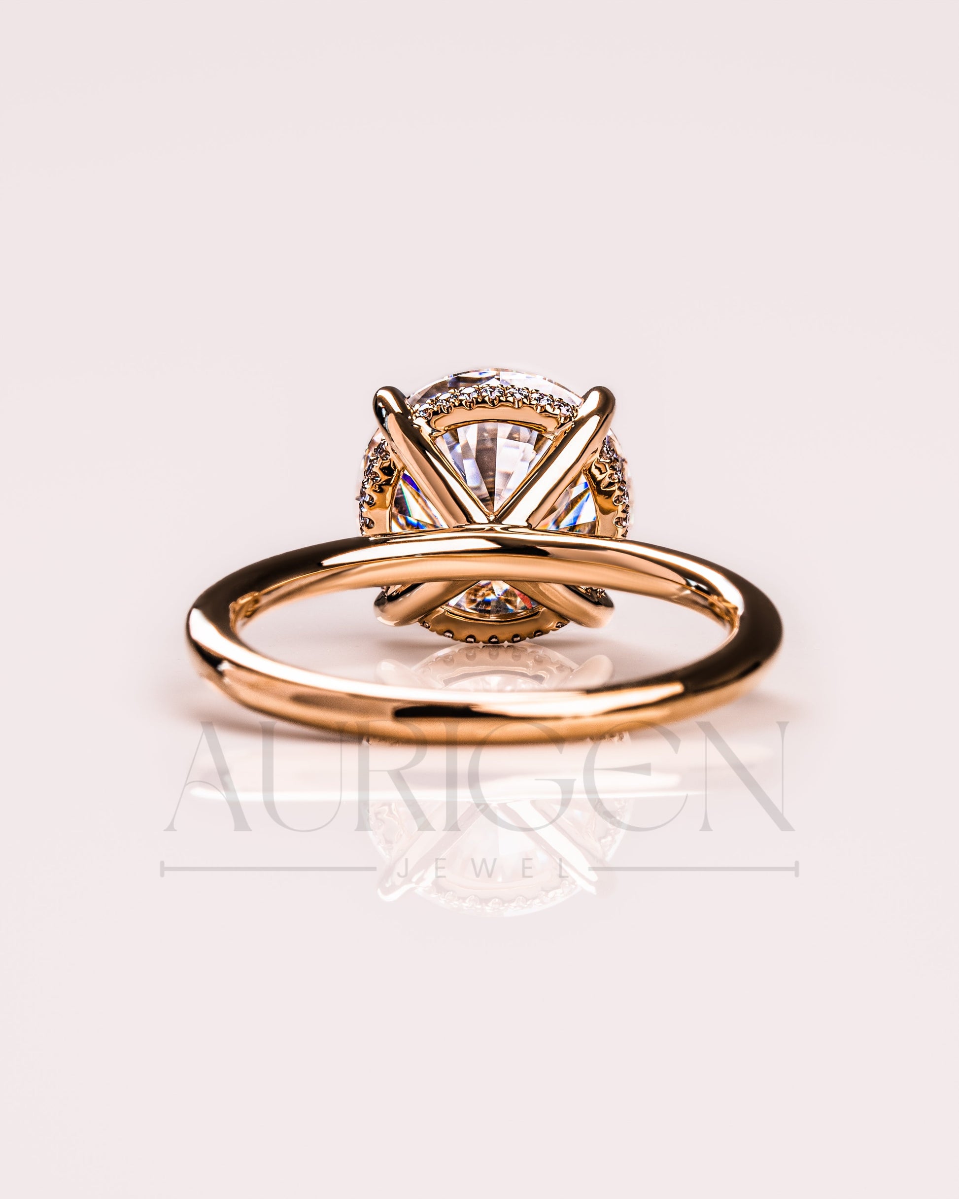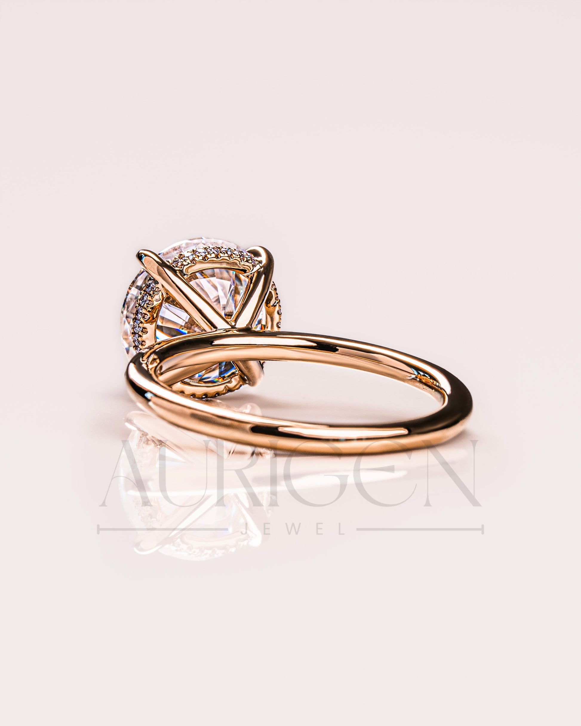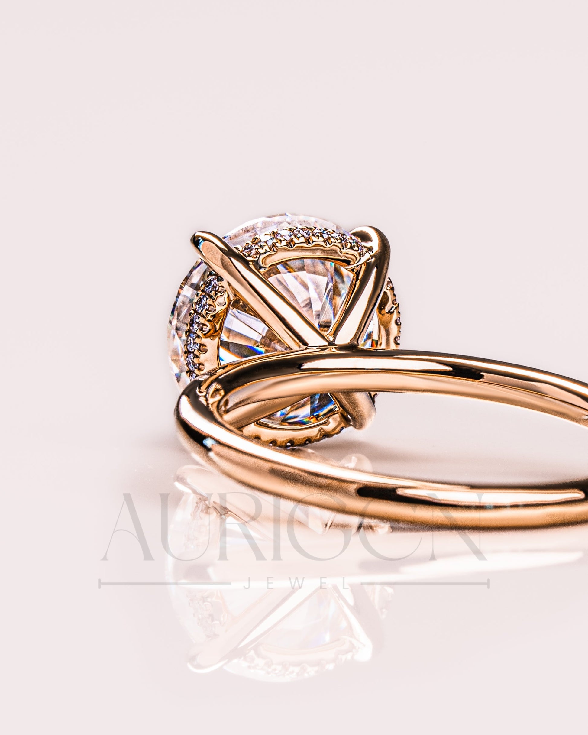 Round Brilliant Cut Moissanite Engagement Ring 4-Prong Set With Hidden Halo Diamond Ring