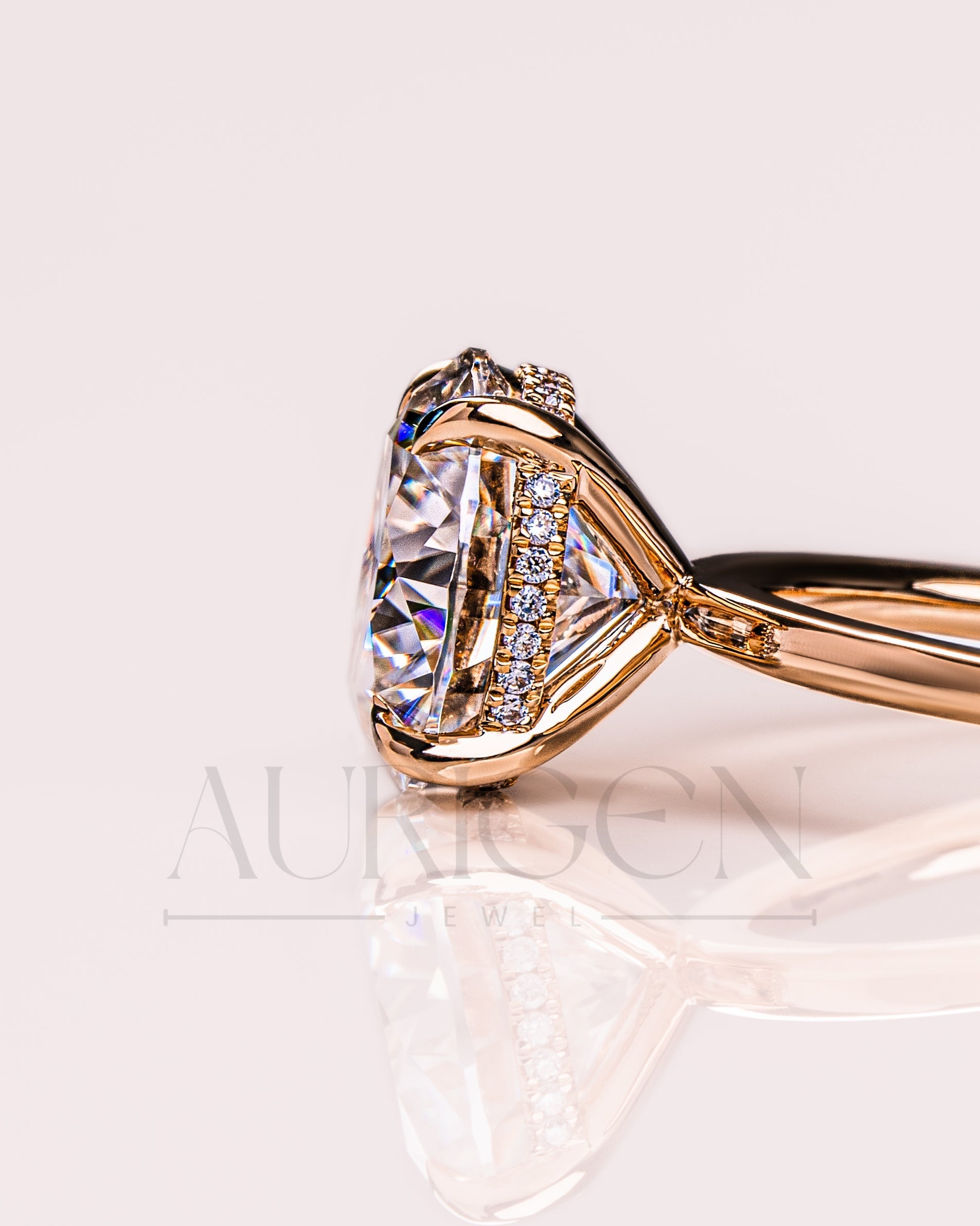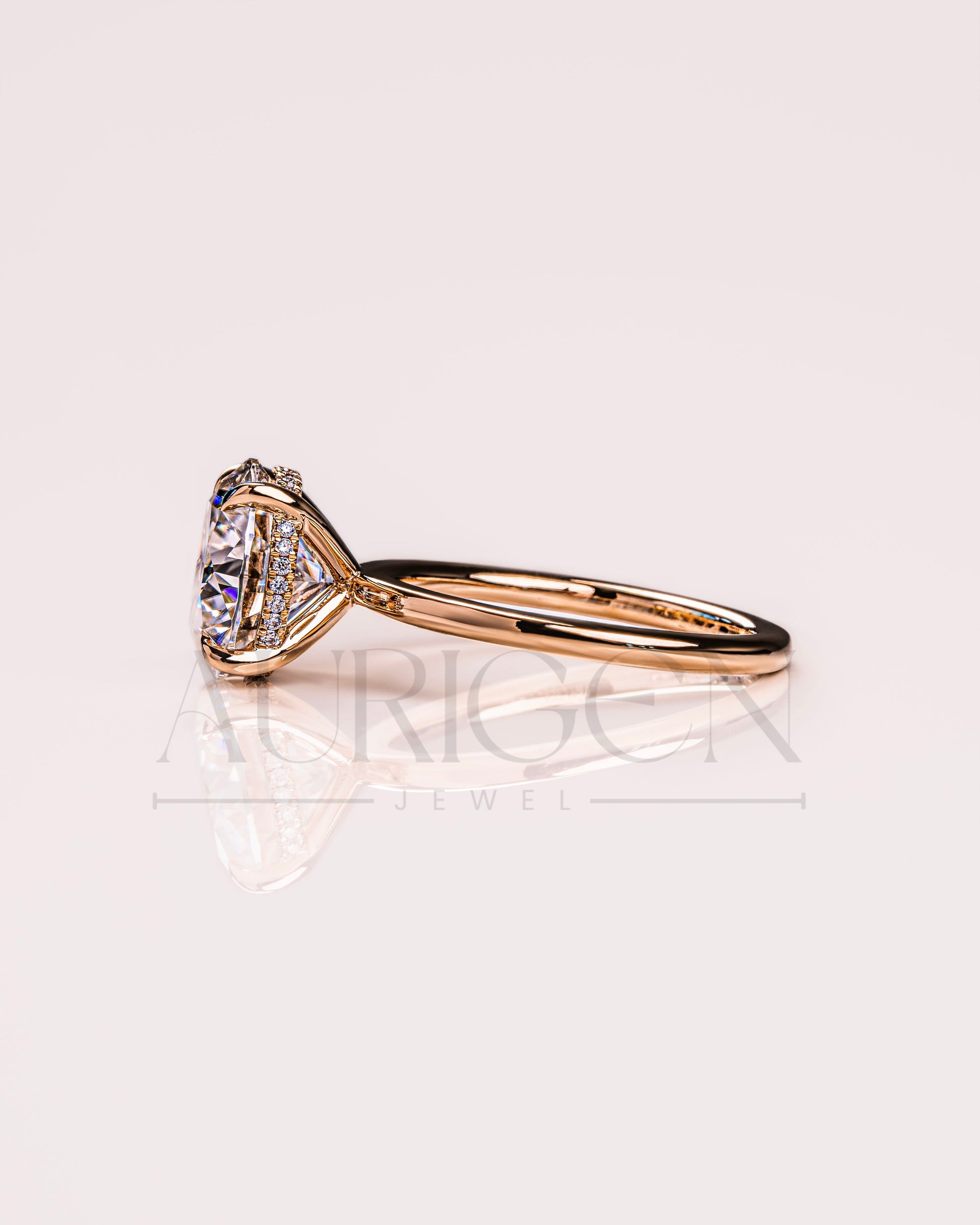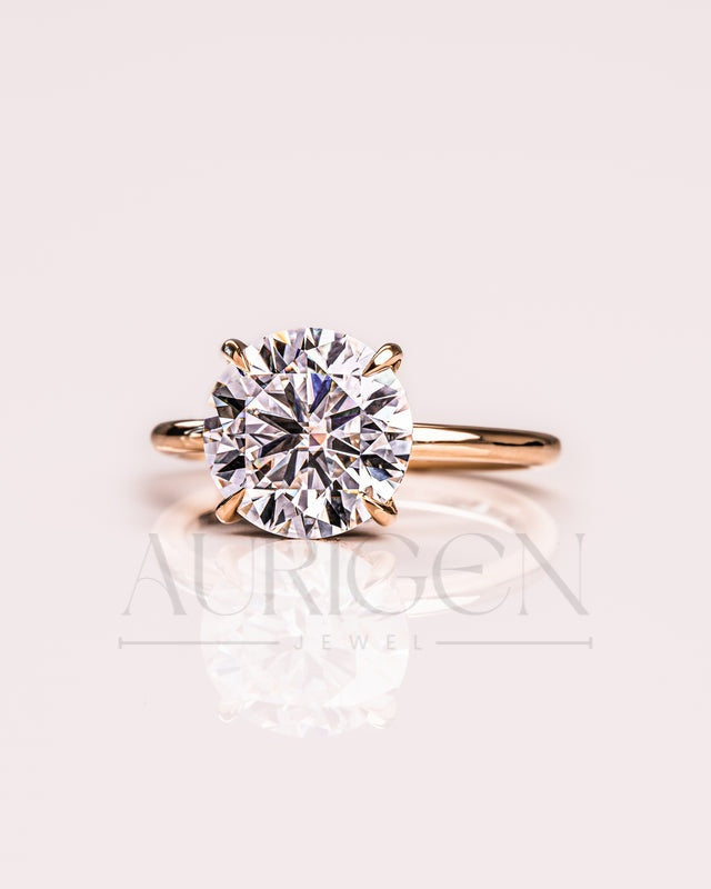 Round Brilliant Cut Moissanite Engagement Ring 4-Prong Set With Hidden Halo Diamond Ring
