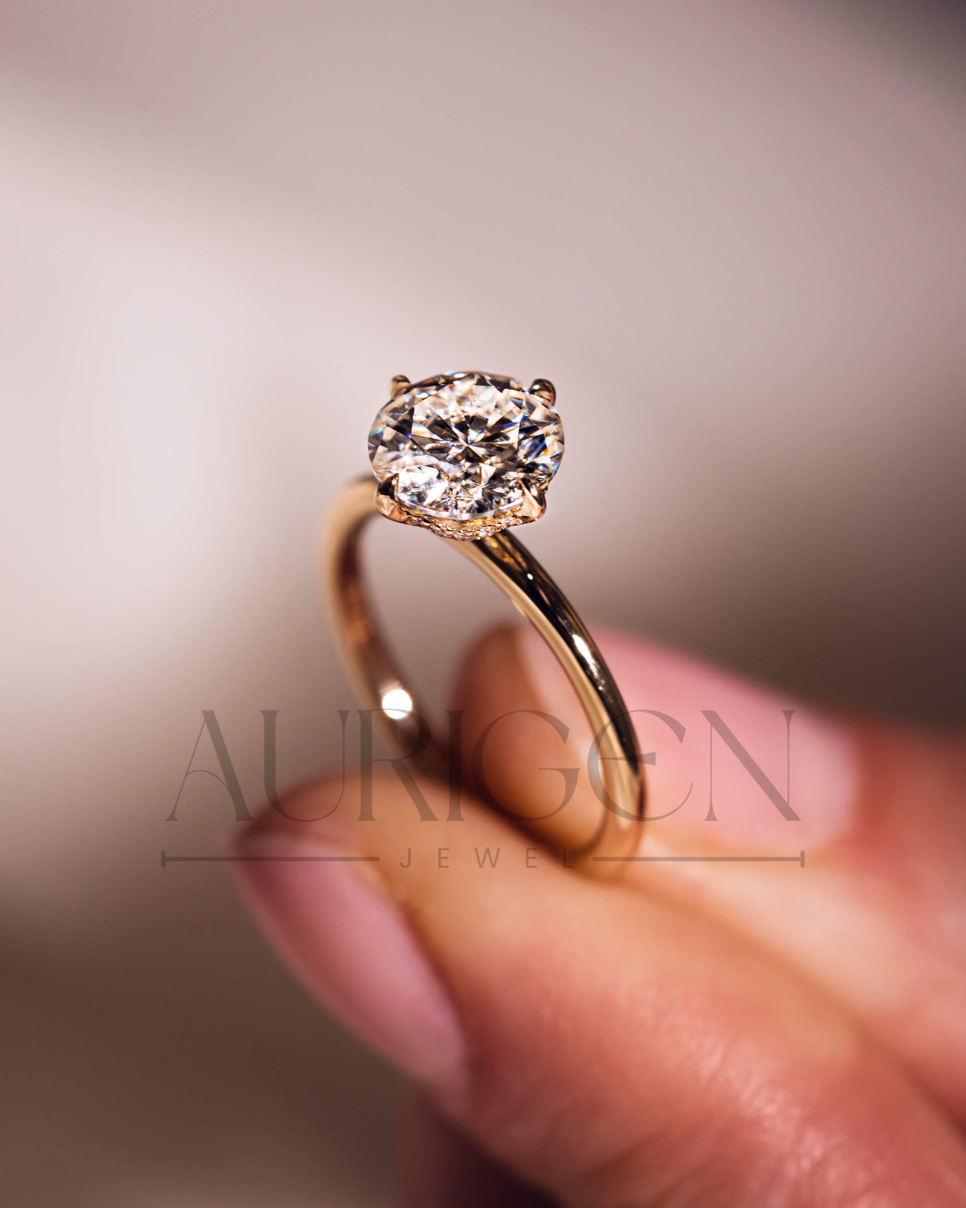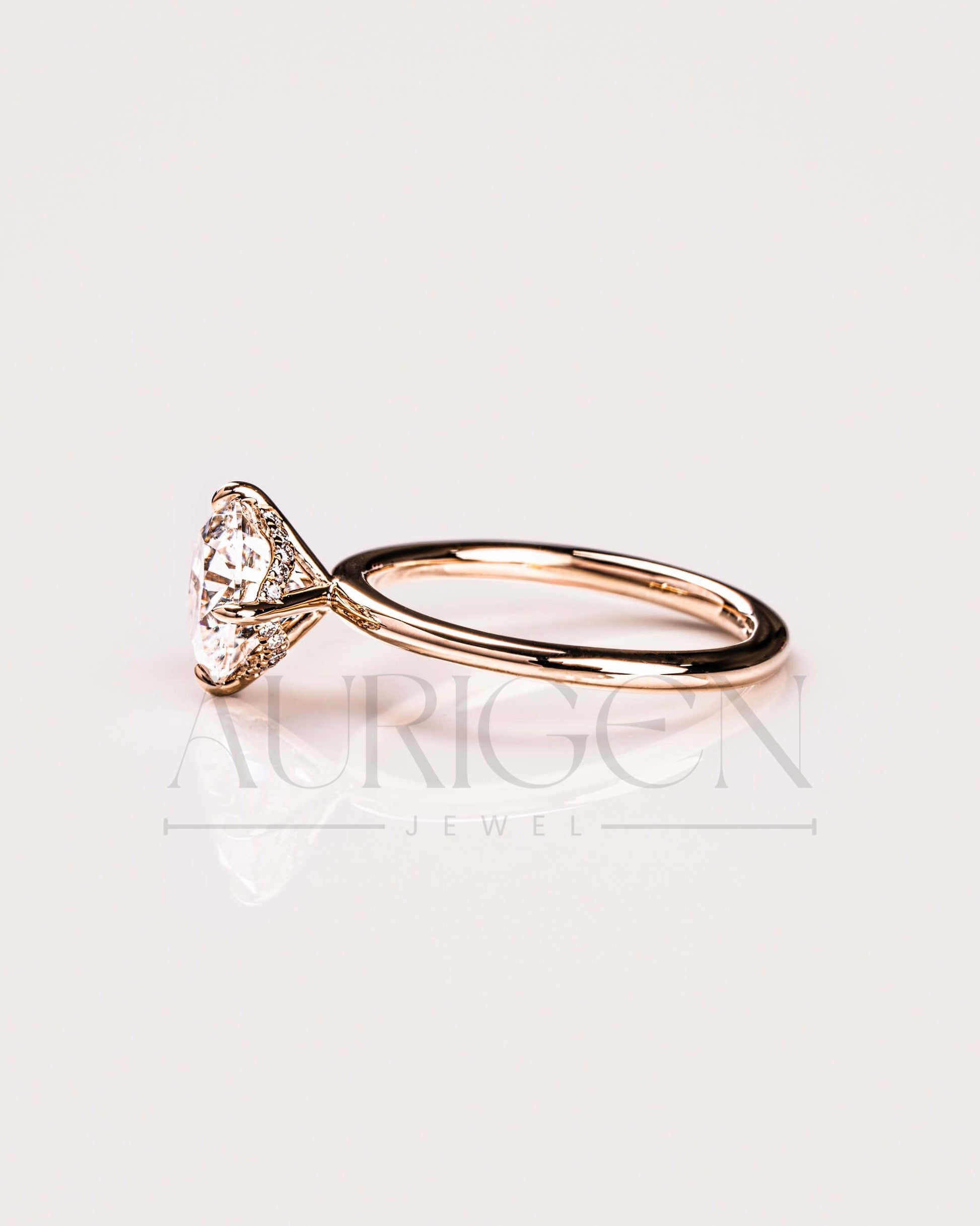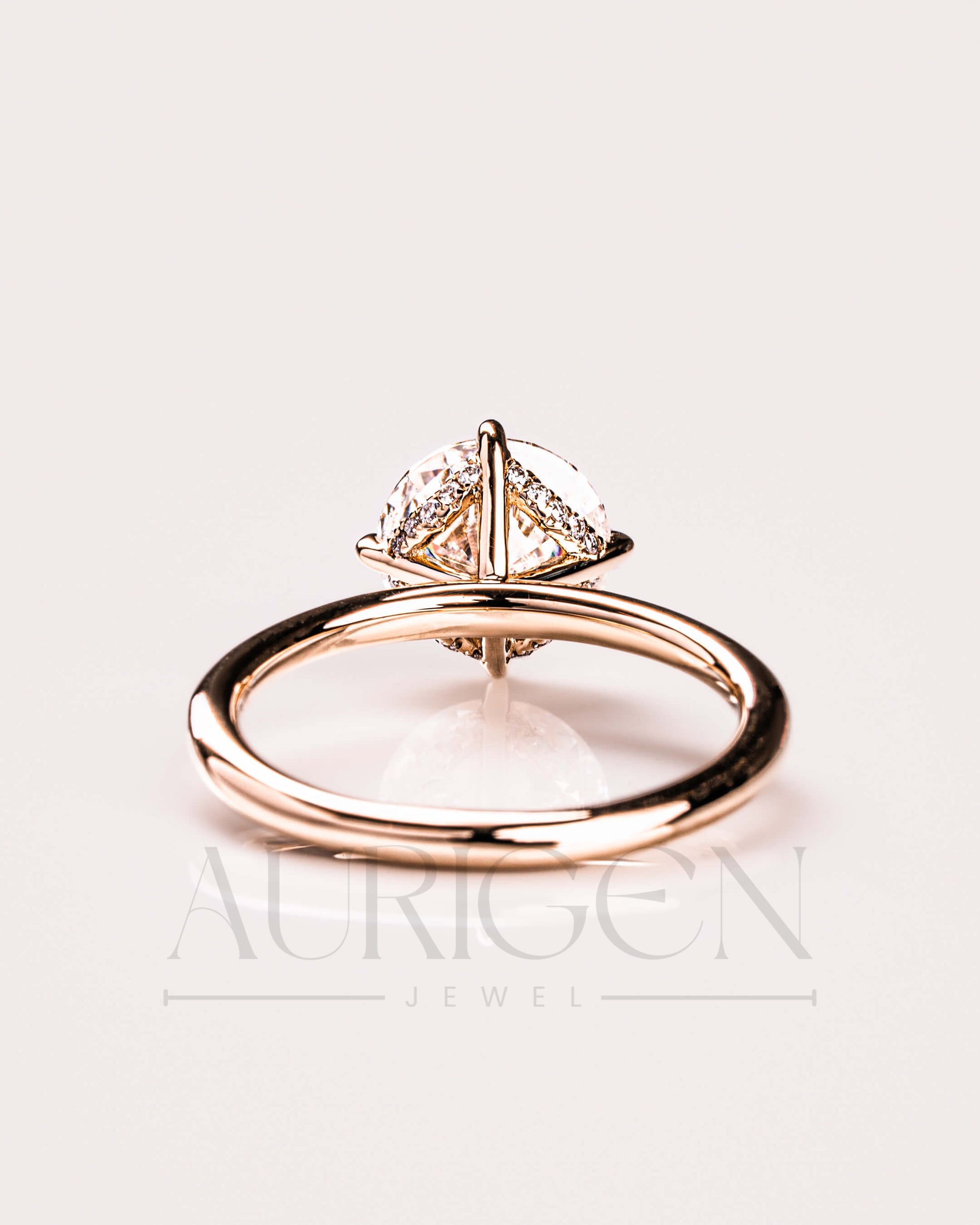 Round Brilliant Moissanite and Leb Grown Diamond Engagement Ring with Hidden Halo in 14K Rose Gold