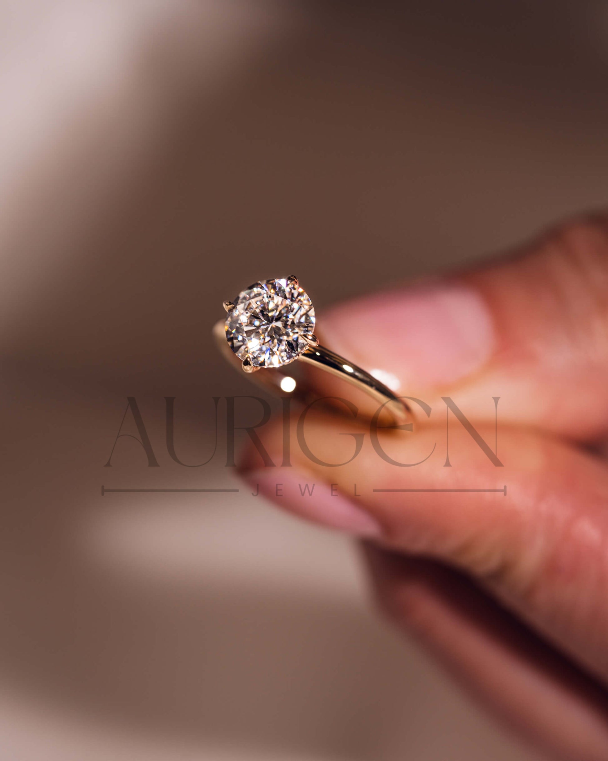 ✦ The Ring Shown in the Picture Holds a Beautiful Round Cut Diamond Ring.
