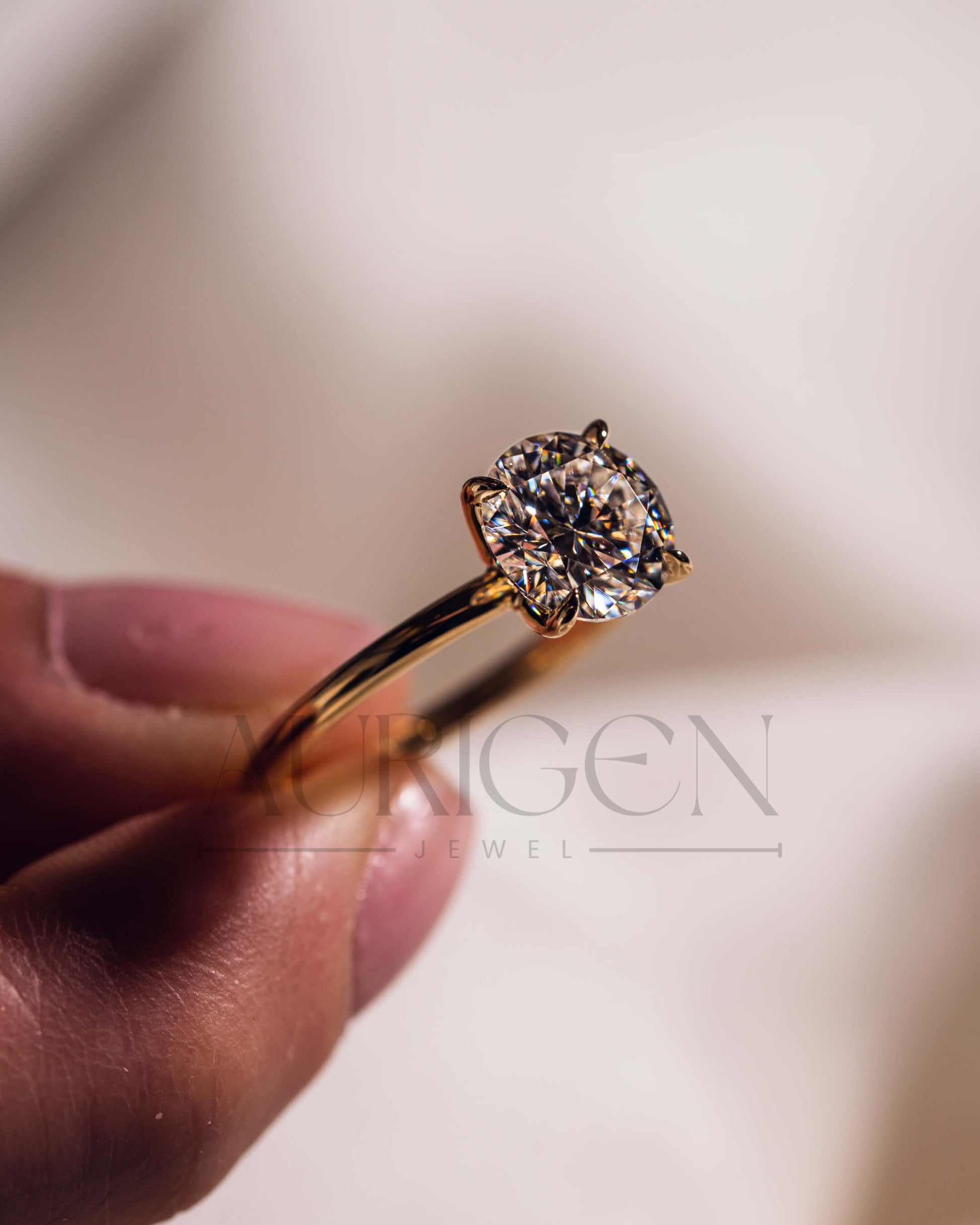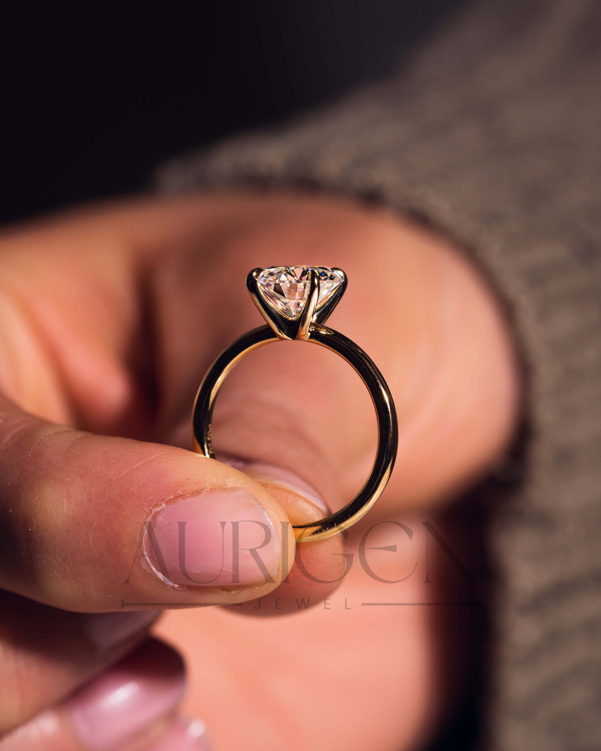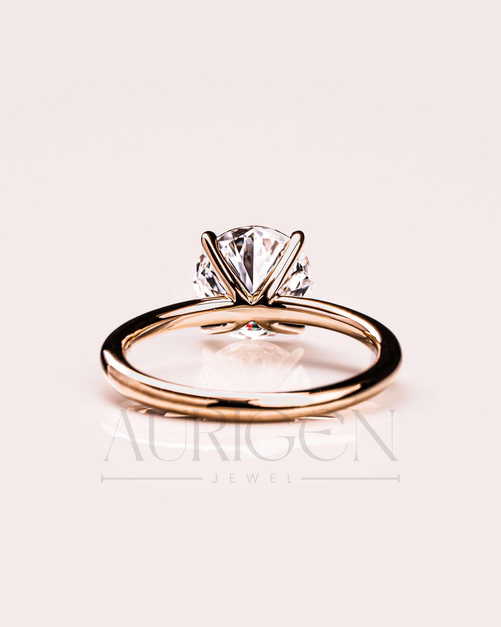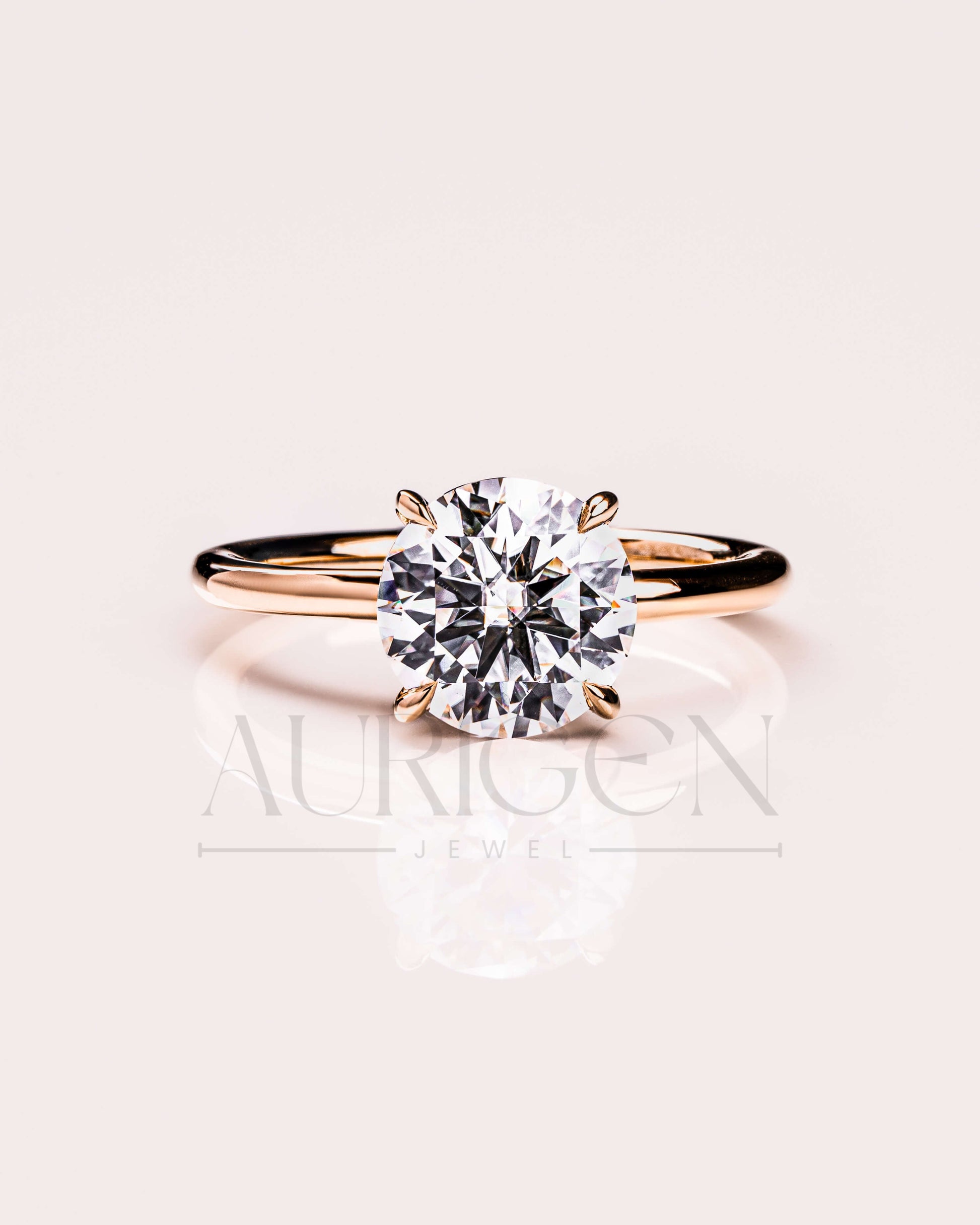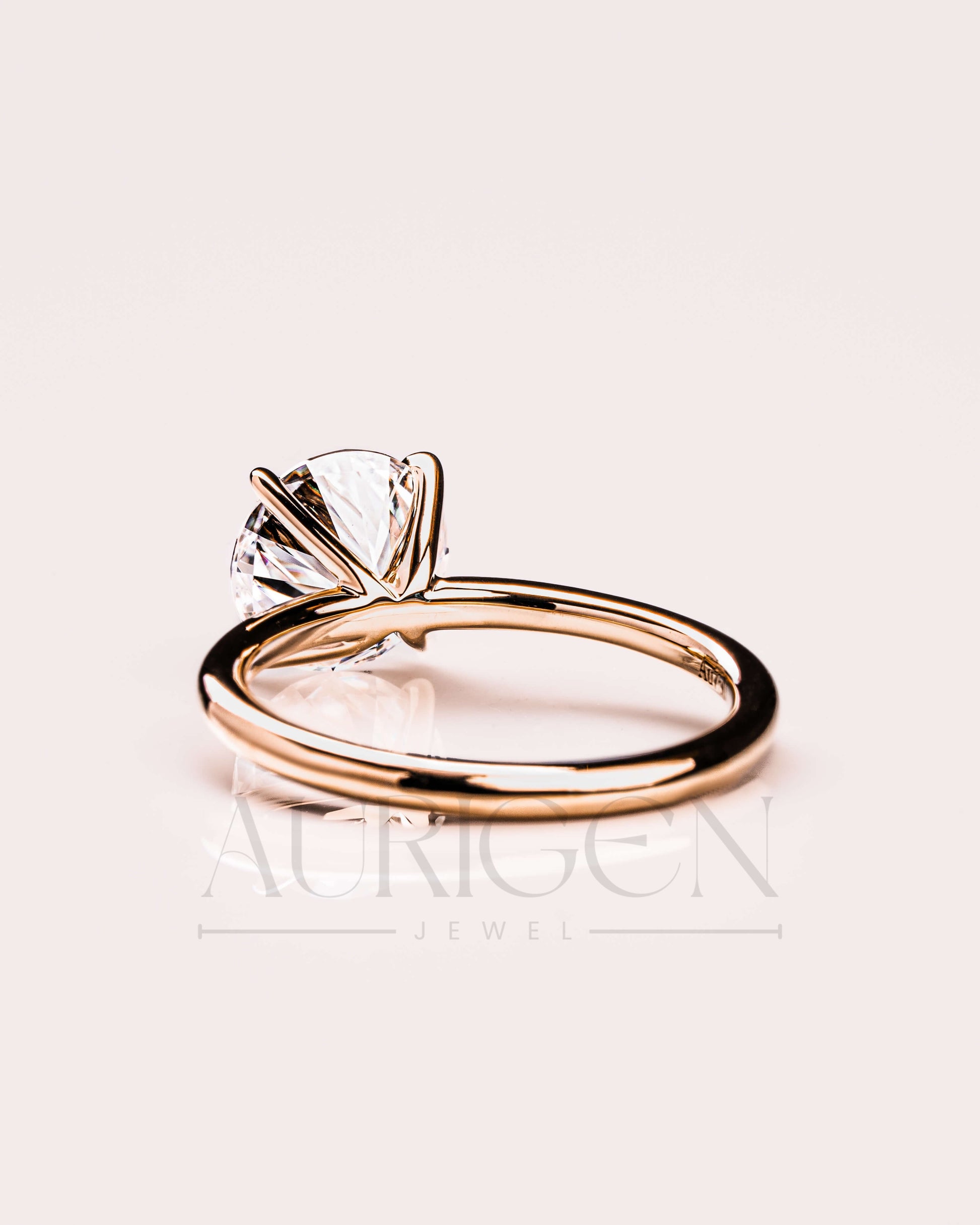 Round Moissanite and Leb Grown Solitaire Engagement Ring in 18k Rose Gold